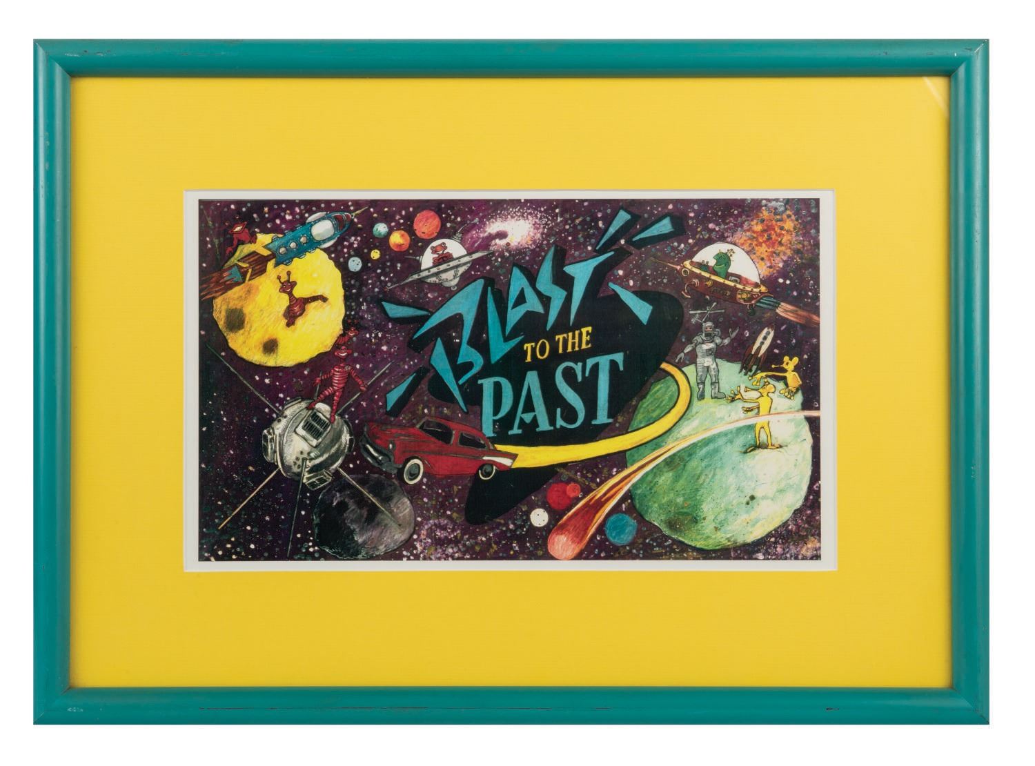 (Disneyland, c.1988) A commemorative print produced for the Cast and Crew of the Blast to the Past event at Disneyland. The artwork has an image size of 14"x8" and has been matted within a 21.5"x15.5" frame. The piece is in fine condition, with minor scuffs and light wear to the frame.