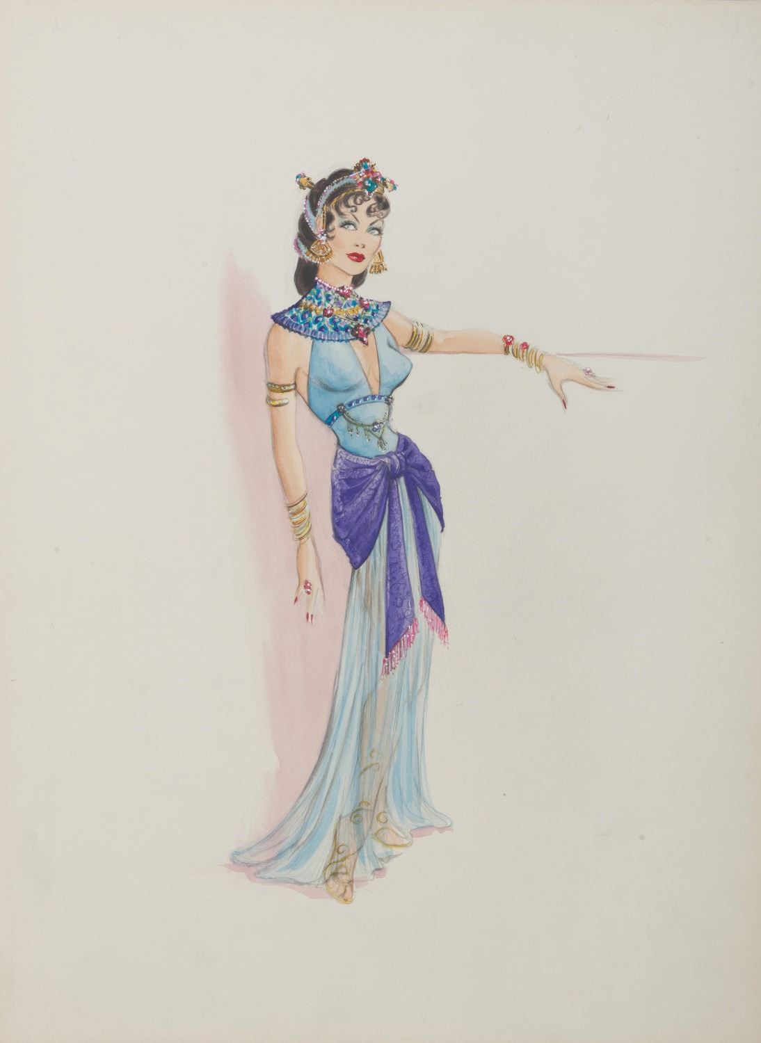 (1950s-1960s) A costume concept for a period piece film. Accomplished in gouache and pencil on artboard, the concept measures 15"x20" and is in very good production-used condition with light wear from age and handling.