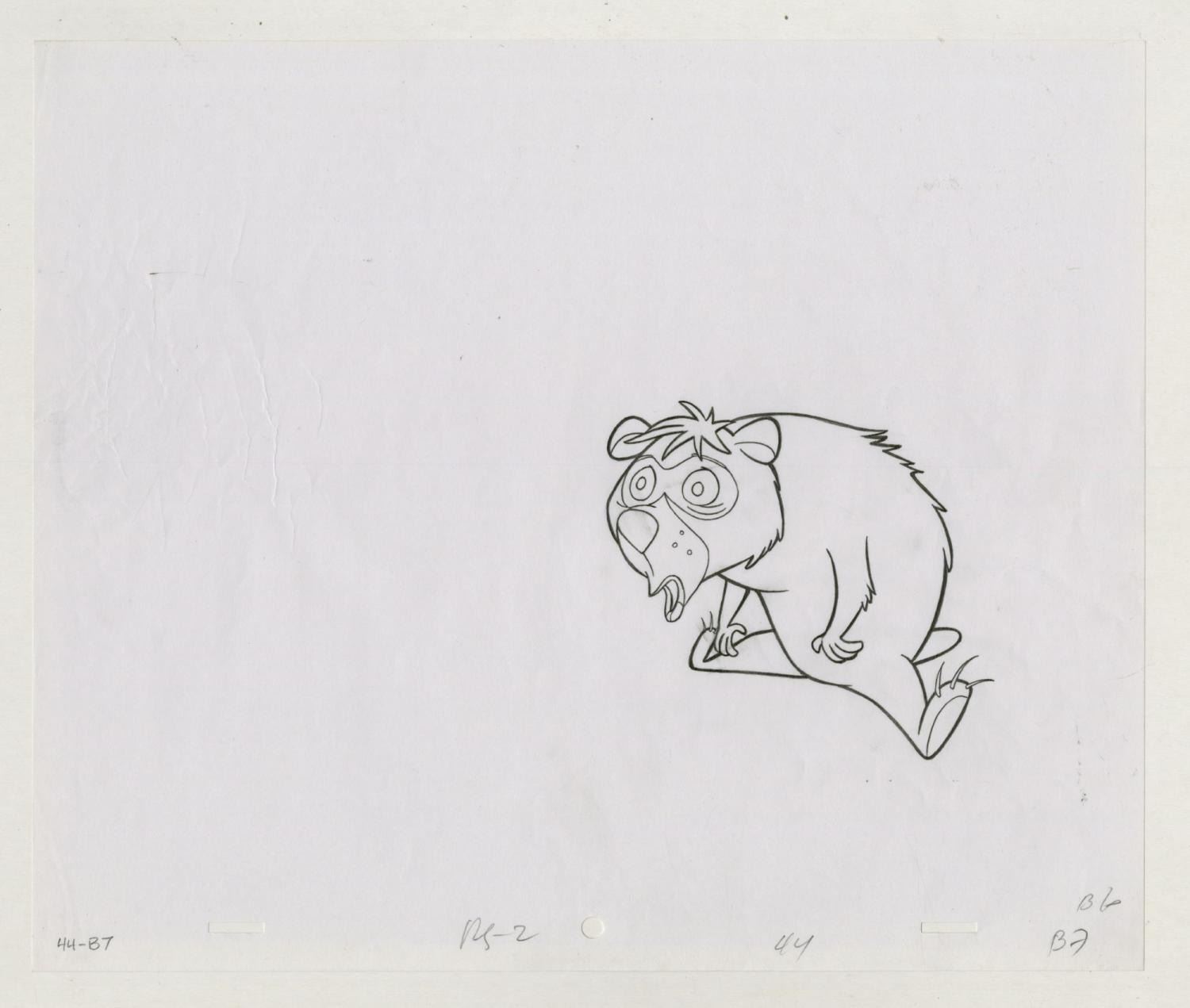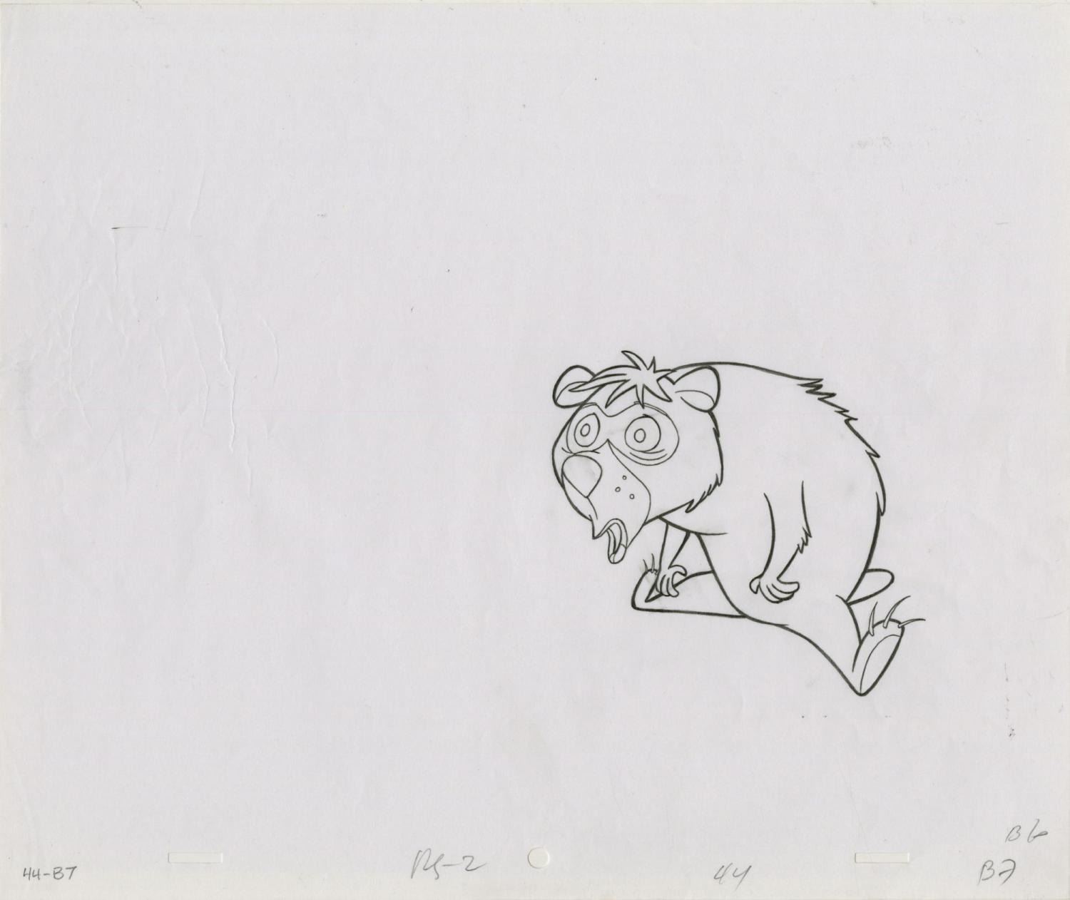 (Cartoon Network, 1999) An original production drawing of Boo Boo from the SPUMCO Studios Yogi Bear parody short "Boo Boo Runs Wild.” Boo Boo has an image size of 4” x 4.5” on 10.5” x 12.5” animation paper. The graphite drawing is in very good condition with some light wrinkling on the left side.