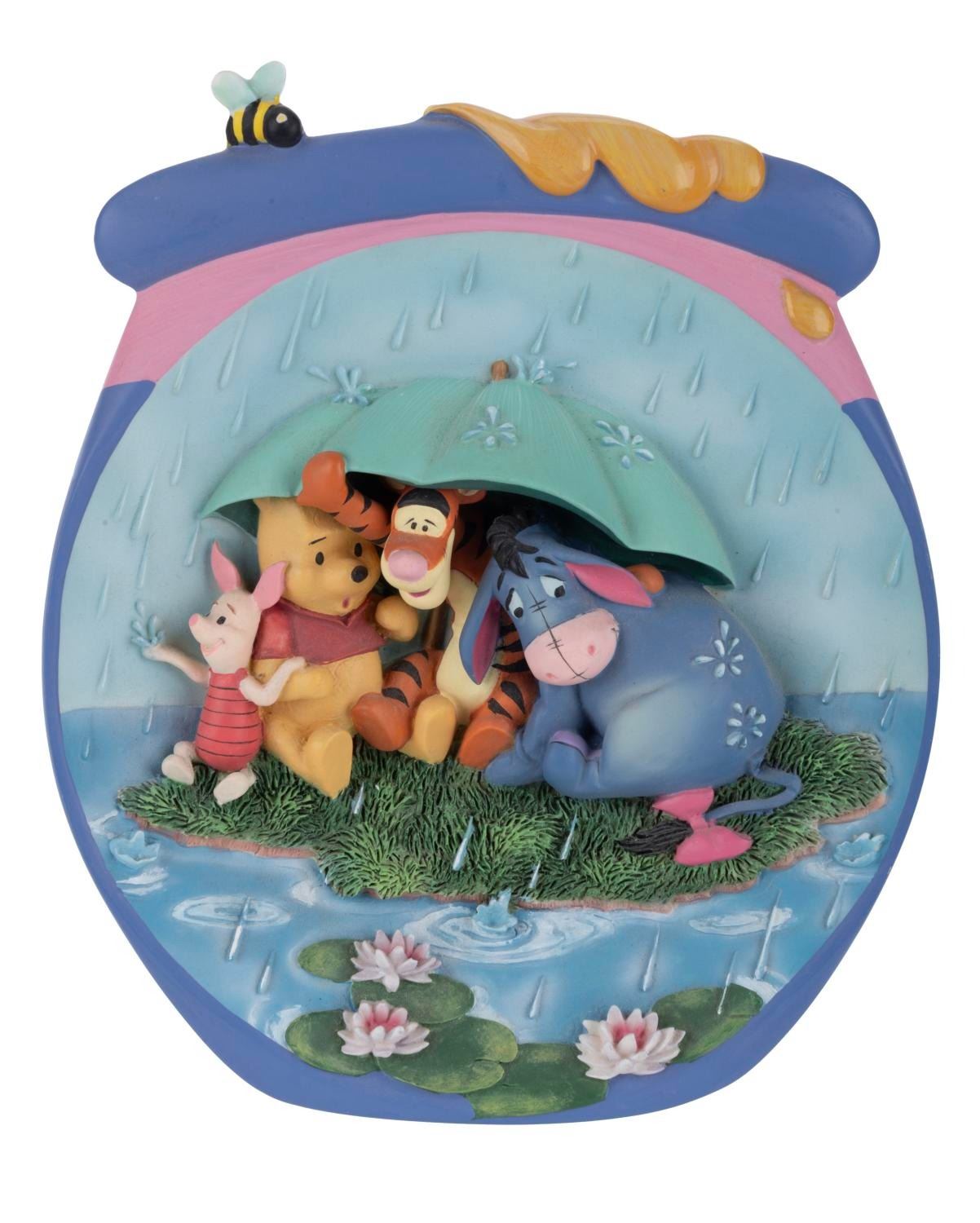 (Bradford Exchange, 1999) An "It's Just a Small Piece of Weather" plate released through the "Pooh's Hunnypot Adventures" Bradford Exchange Plate Collection. This limited edition plate features a relief of Winnie the Pooh, Piglet, Eeyore, and Tigger under an umbrella and is hand-numbered "Z3686" on its back. Measuring 5.75"x7"x1.5", this decorative wall-mountable plate is in fine condition.