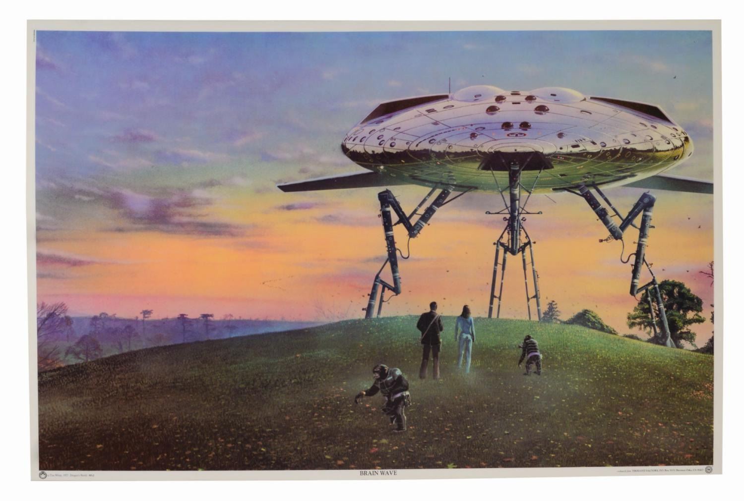 (Thought Factory, 1977) A science fiction merchandise poster sample. The painting titled "Brain Wave" was used on the cover of the Poul Anderson paperback of the same title. Measuring 23.25" x 35.25", the laminated poster displays in very good condition with light handling wear.