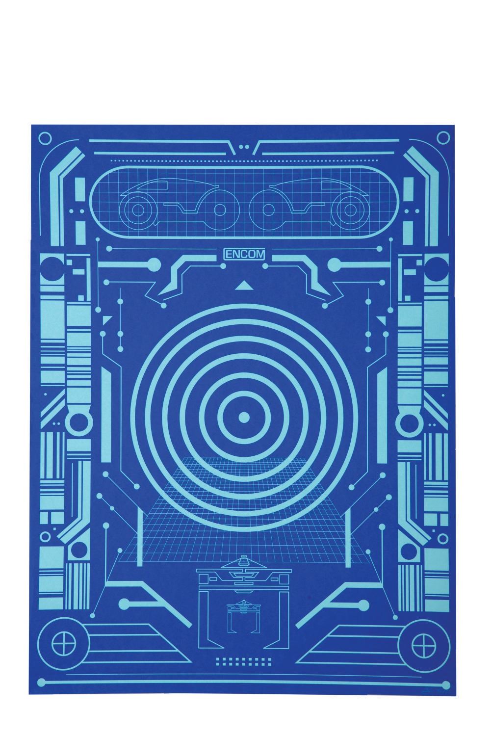 (Mondo, 2011) A Tron ENCOM art print. The screen print was designed by artist Brandon Schaefer and released by Mondo Gallery for Gallery 1988's "Multiplayer" show, numbered 36 of 50 and initialed by the artist. Measuring 18"x24", the print is in fine condition.