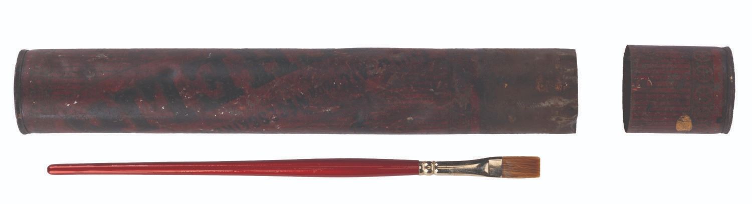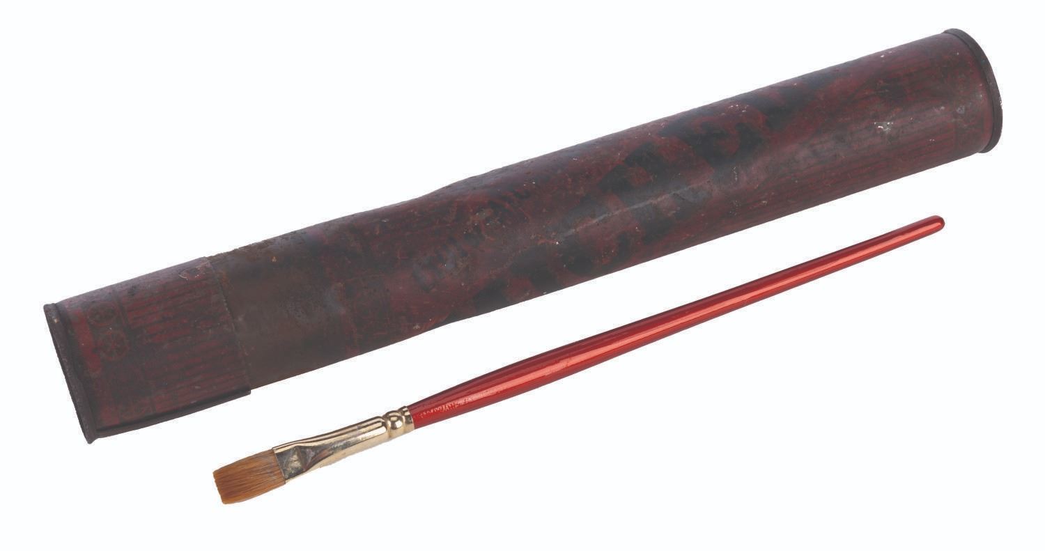 (McQuarrie, 1980s-2012) A Winsor & Newton sable paint brush used by Star Wars artist Ralph McQuarrie. The brush was a gift from McQuarrie to an acquaintance. While it cannot be confirmed this brush was used by McQuarrie while painting Star Wars art, it is his preferred brush, and he is pictured using the same type on production art for The Empire Strikes Back and others. Measuring 7.25" long, the brush is in fine condition, with slight paint residue in the bristles from use.