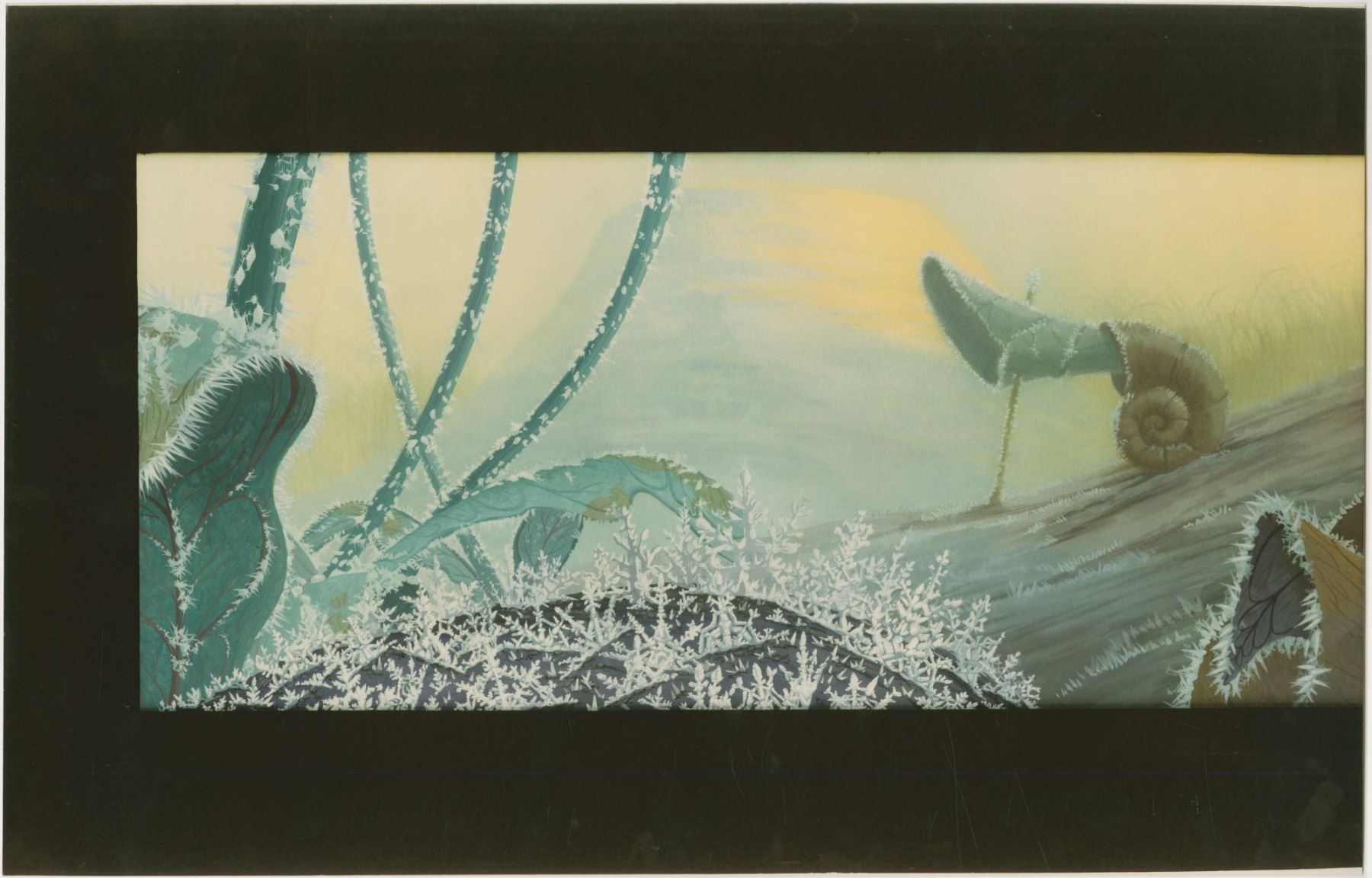 (Disney, 1990s) An original print of digital concept art from Pixar’s “A Bug's Life.” Featuring a frost-covered landscape, the concept artwork was created at the studio and printed in a limited quantity to be used during the development of the film and in pitch meetings. Measuring 11" x 17", the print is in fine condition with light wear from studio use.