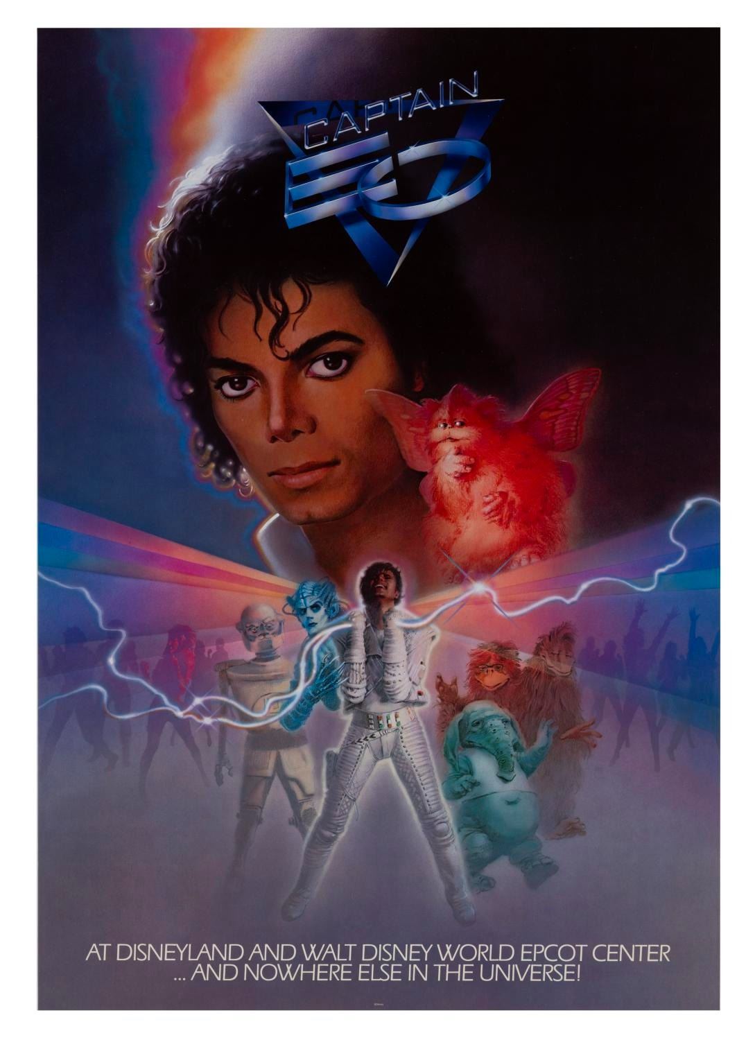 (Disneyland/ Epcot, 1986) A souvenir poster from the "Captain EO" attraction, a 3D science fiction and pop film starring Michael Jackson. Measuring 18" x 26", the poster is in fine condition.