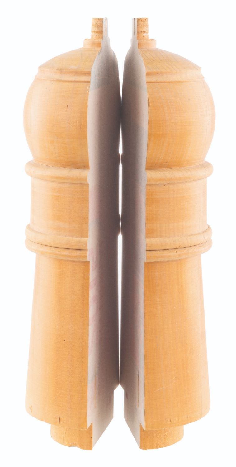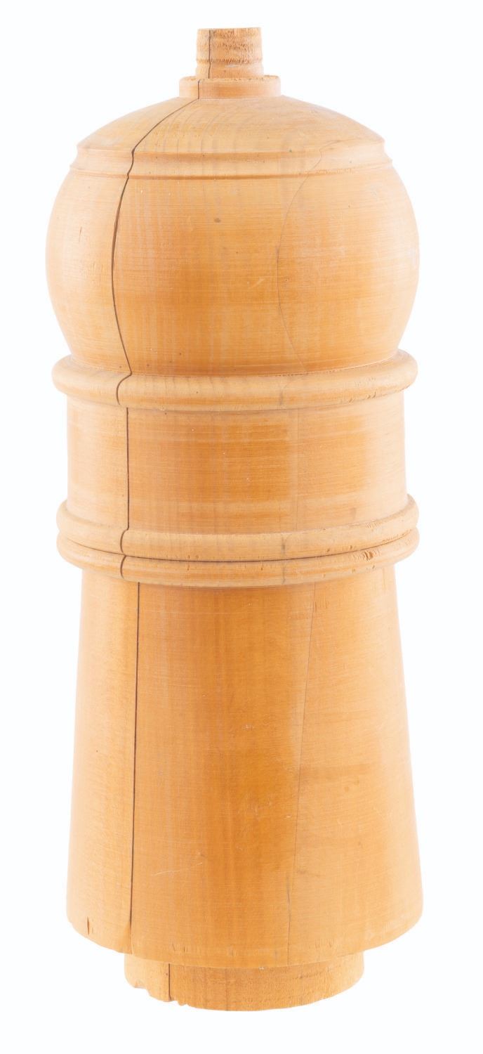 (Warner Bros., 2015) A wooden Captain Hook gauntlet prototype from the Peter Pan prequel film "Pan” starring Hugh Jackman as Blackbeard and Garrett Hedlund as Hook. Split into two parts measuring 5” x 3” x 13” each, the gauntlet prototype is in good condition with typical scuffs, stains, and wear from production use.