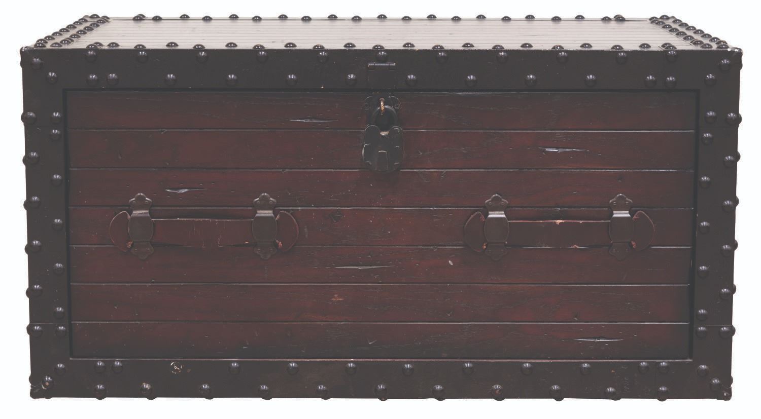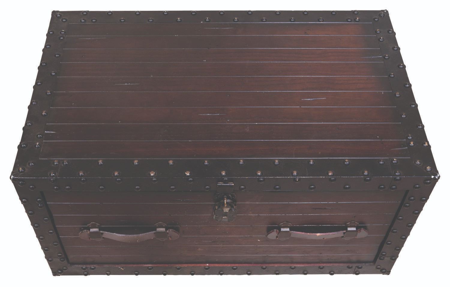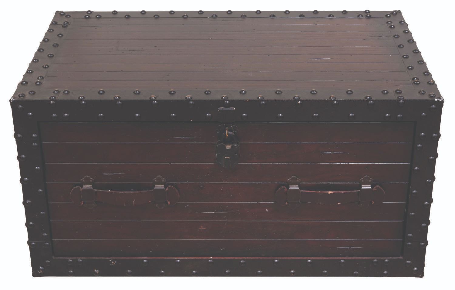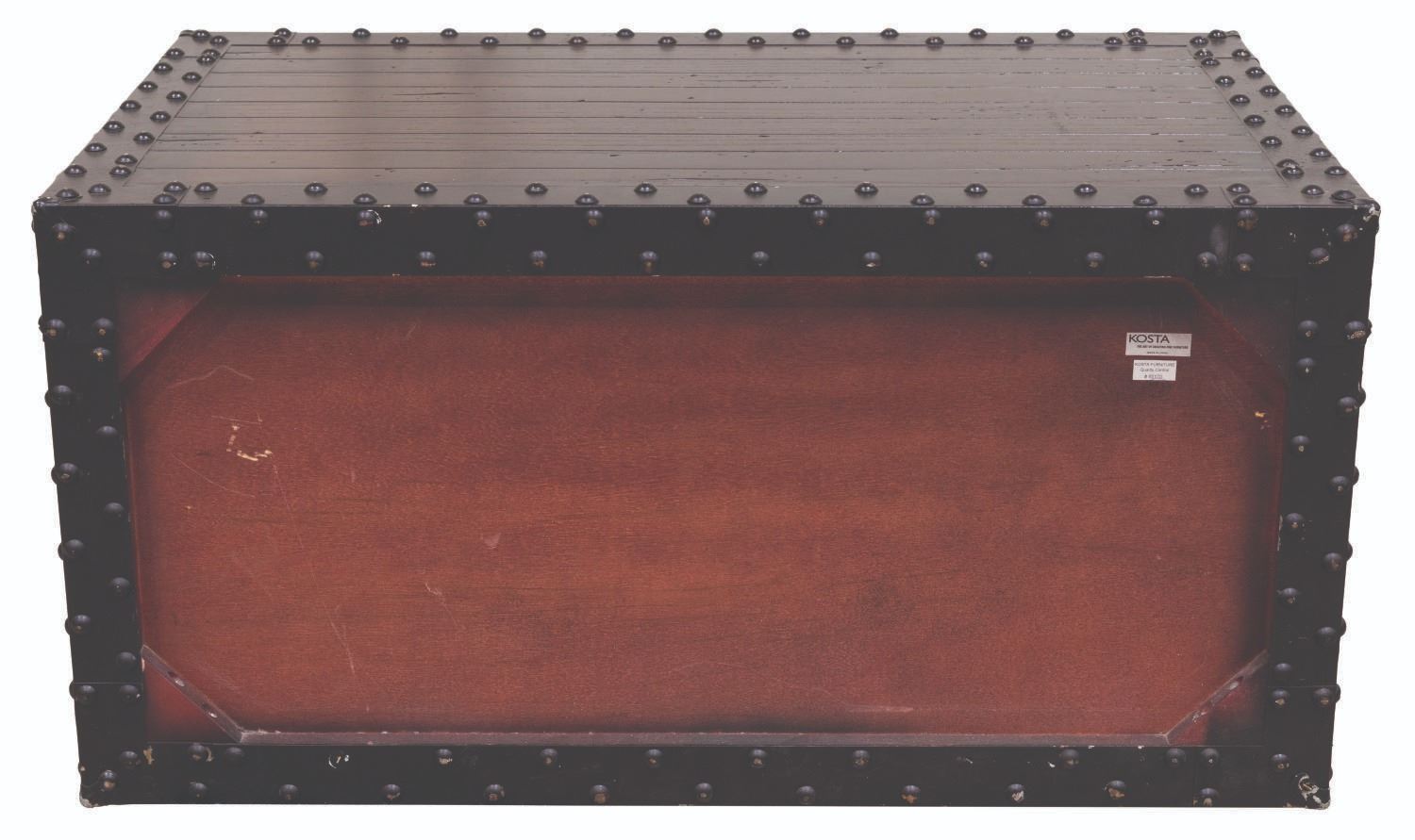 (Disney’s Caribbean Beach Resort, 2009-2022) A pirate treasure chest-themed dresser originally used in the Pirate Rooms at Disney’s Caribbean Beach Resort. Measuring 22” x 36” x 18” tall, the intentionally distressed chest dresser displays in very good condition with typical scratches, scuffs, and wear on the handles from Resort use. Due to size and weight, this item will require special shipping arrangements. Please inquire before bidding.
