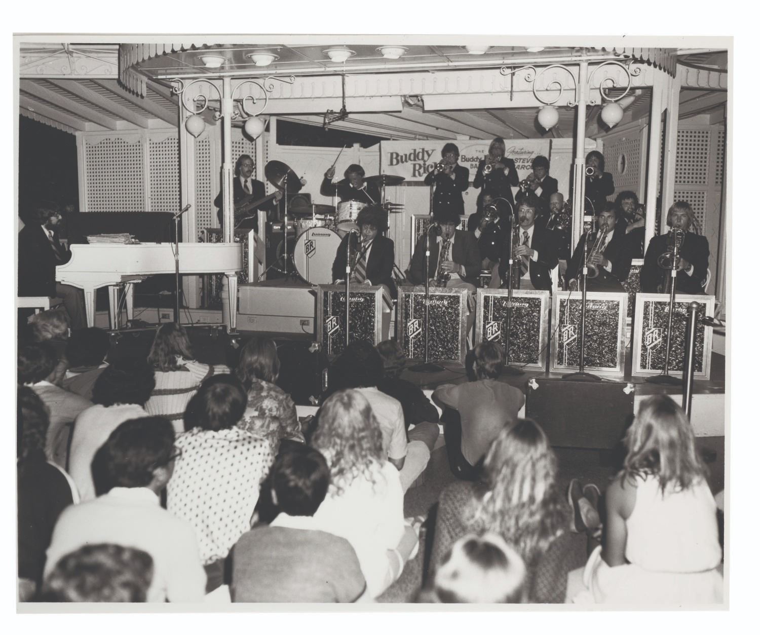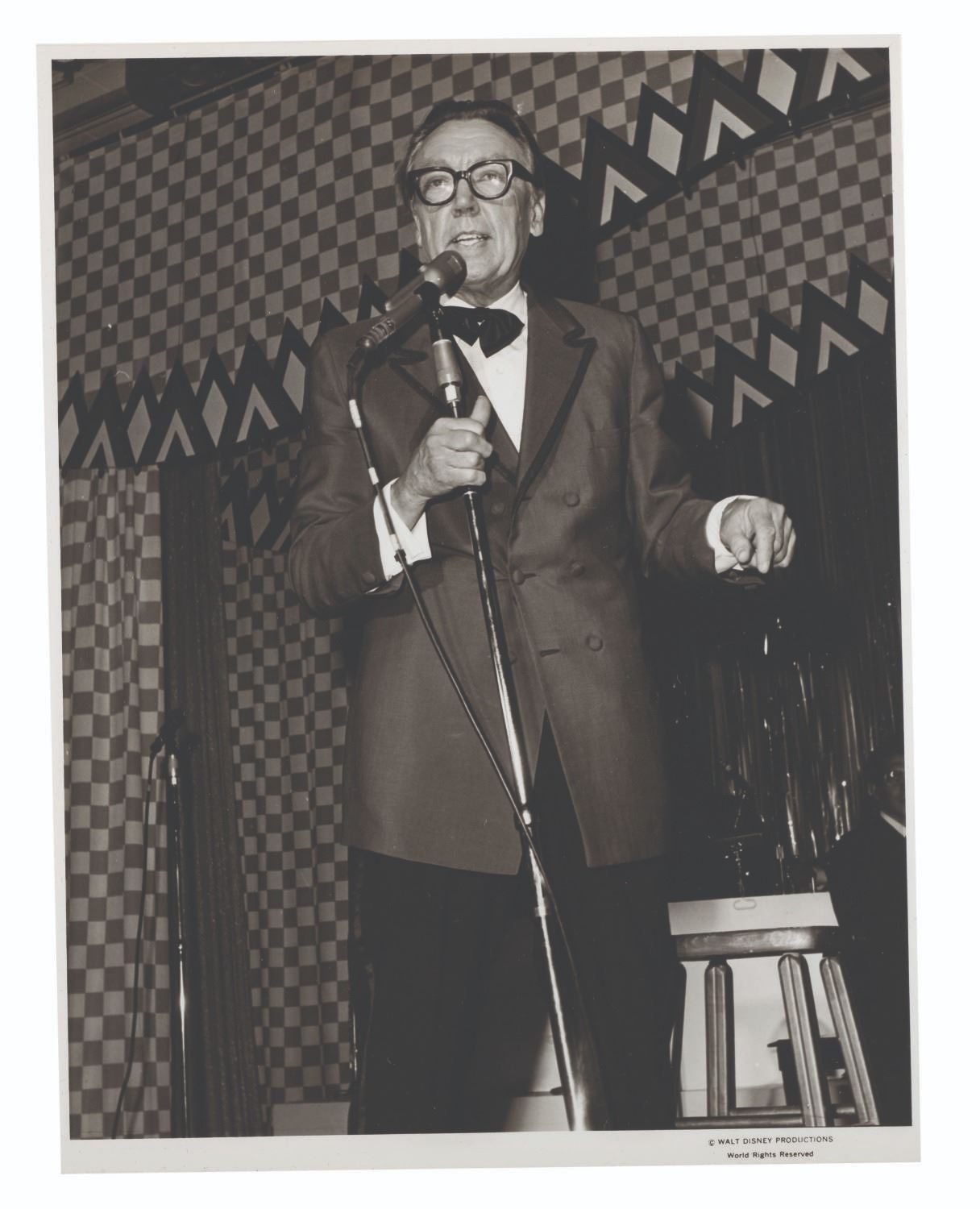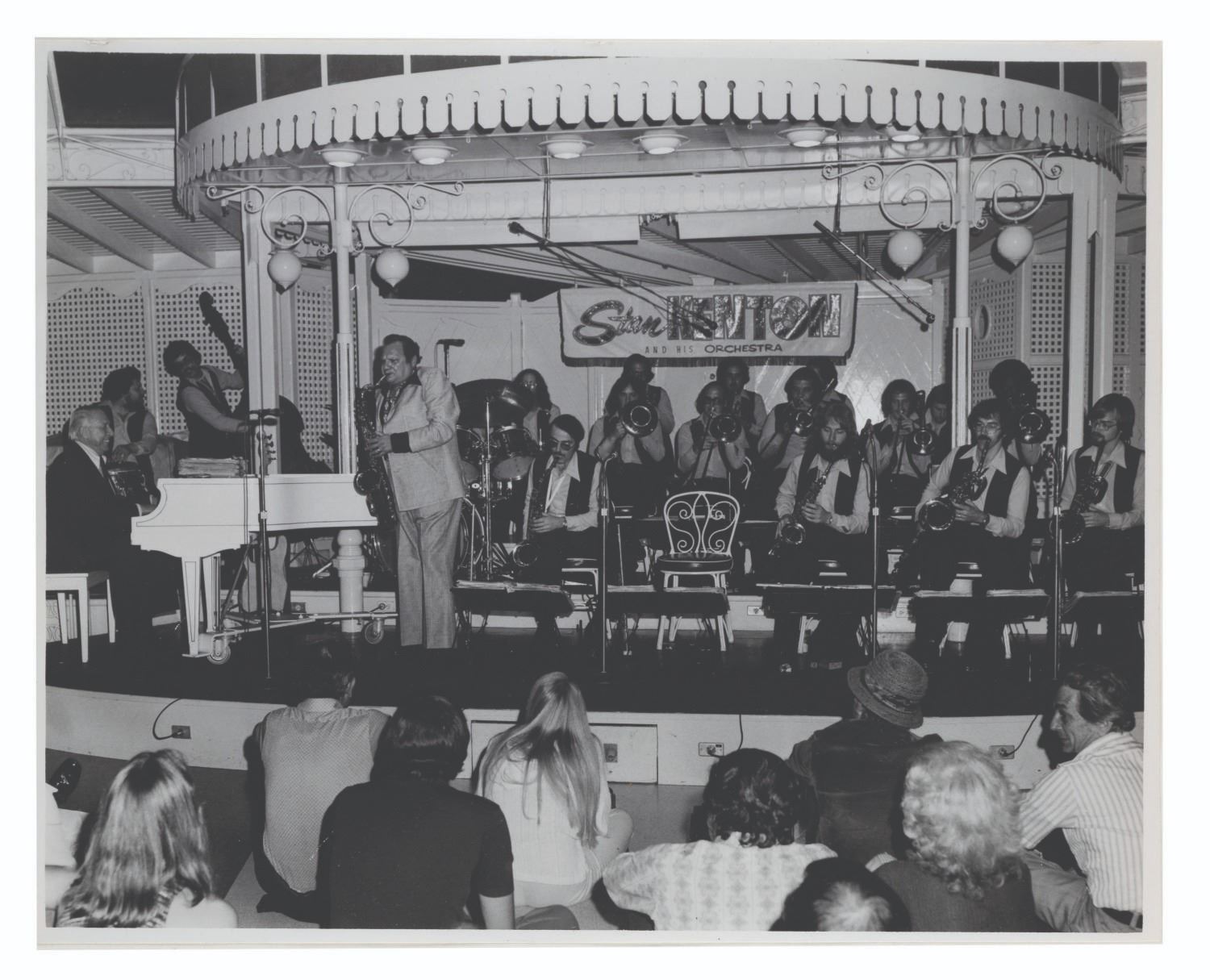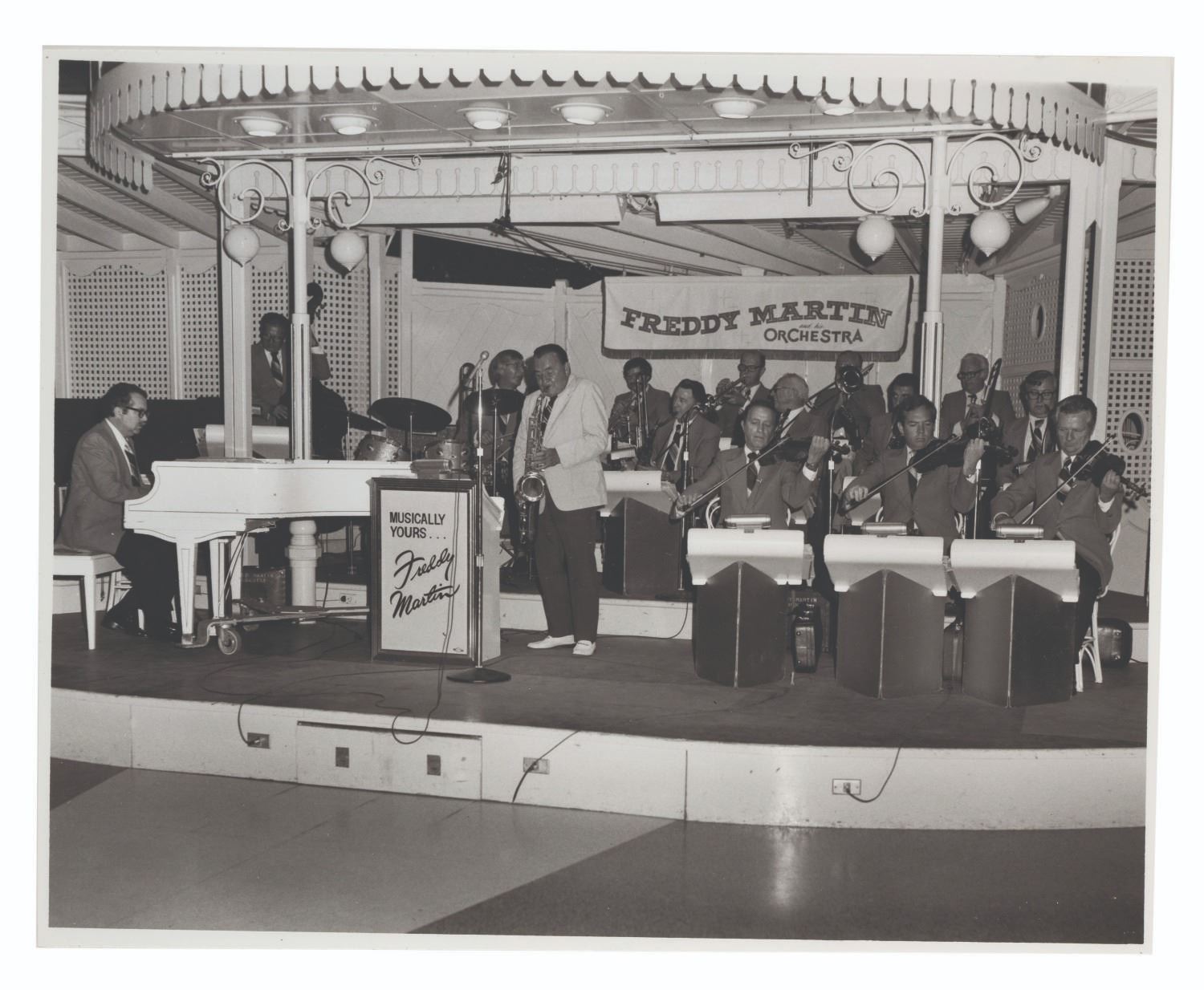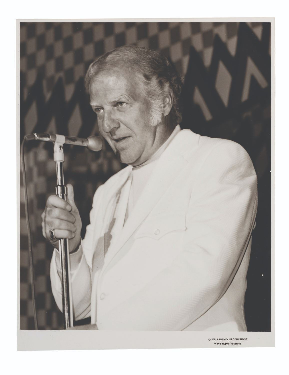(Disneyland, 1970s-80s) A large collection of 55 press photos promoting the entertainment at Carnation Plaza Gardens in Disneyland. Included are headshots and Disneyland images of jazz musicians and Big Band leaders Count Basie, Lionel Hampton, Tex Beneke, Bob Crosby, Les Brown, and more. The collection is presented within a 10.5"x11.75"x2" three-ring binder. Measuring 8"x9.75" to 7.75"x10", each photo print is in good-to-very good condition exhibiting light wear from handling and age.