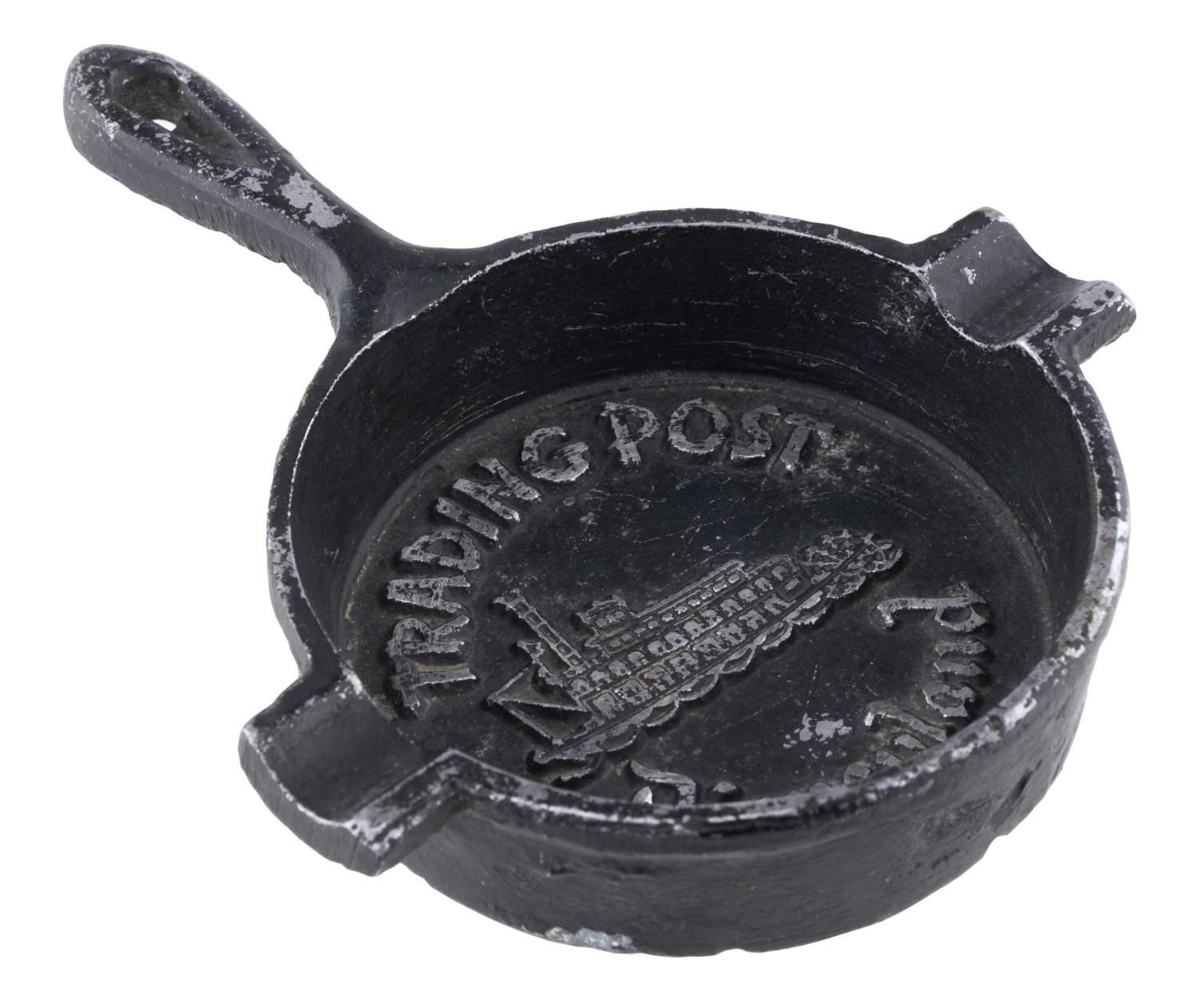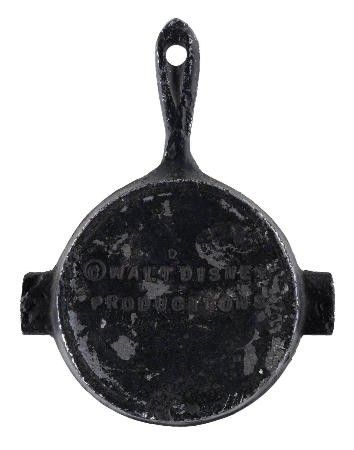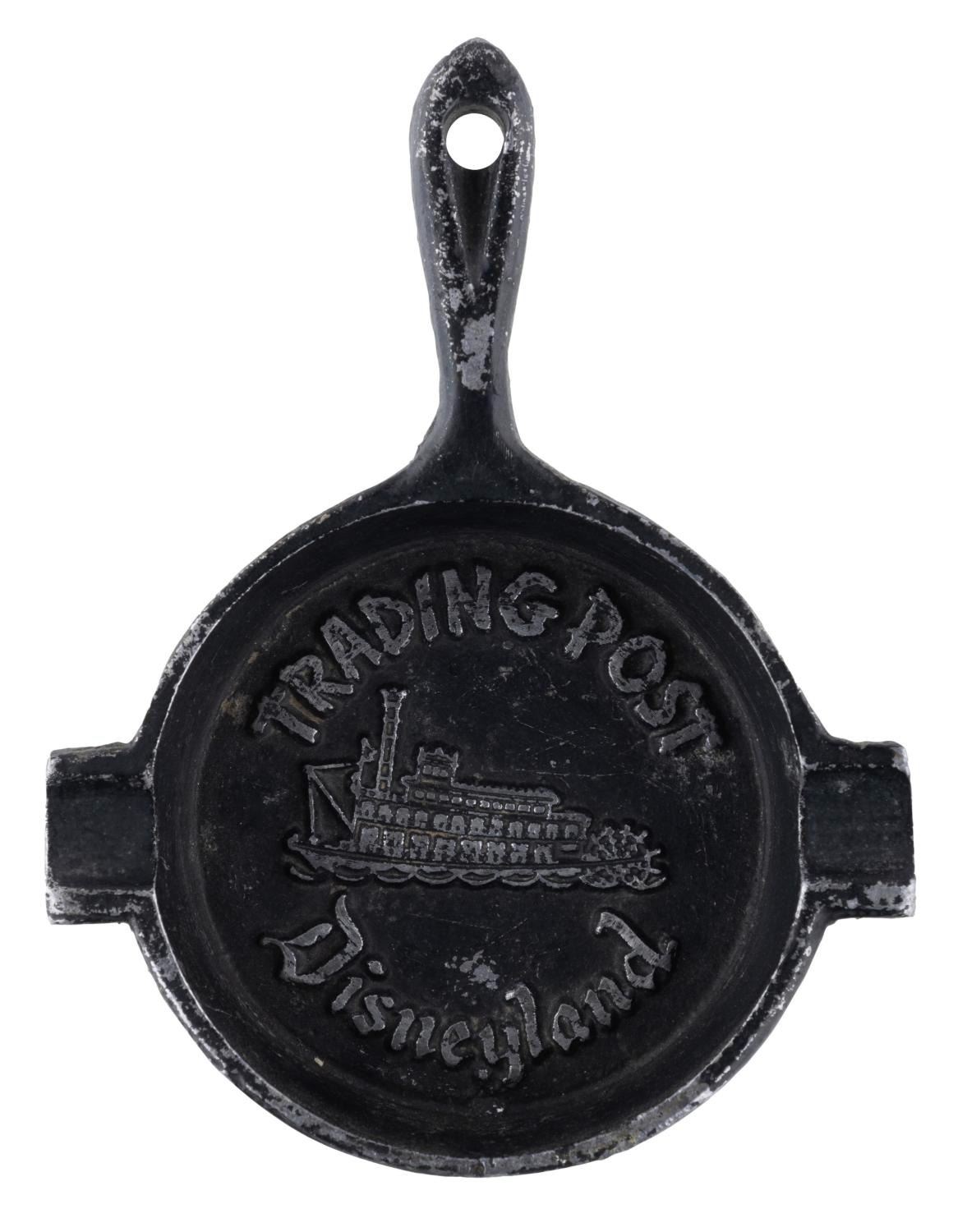 (Disneyland, 1960s) A Disneyland Trading Post souvenir cast iron pan ashtray featuring the Mark Twain. Measuring 4” x 5”, the ashtray is in fair condition with heavy scuffs, scratches, and wear.