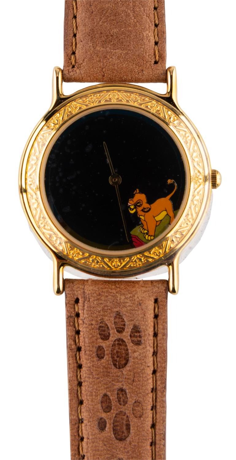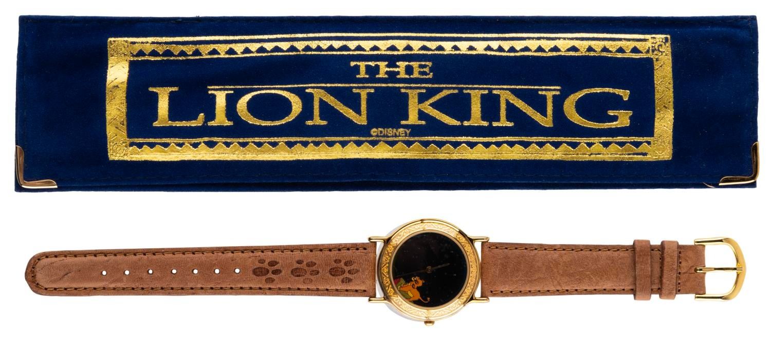 (Disneyland, 1994) A "The Lion King " wristwatch with the original velvet case, sold exclusively at the Disneyland Cast Member Store Company D. Numbered 1248/1750 and measuring 1.25 " in diameter on a 9.25 " band, the watch is in fine, as-new condition, requiring a battery and possibly service to function.
