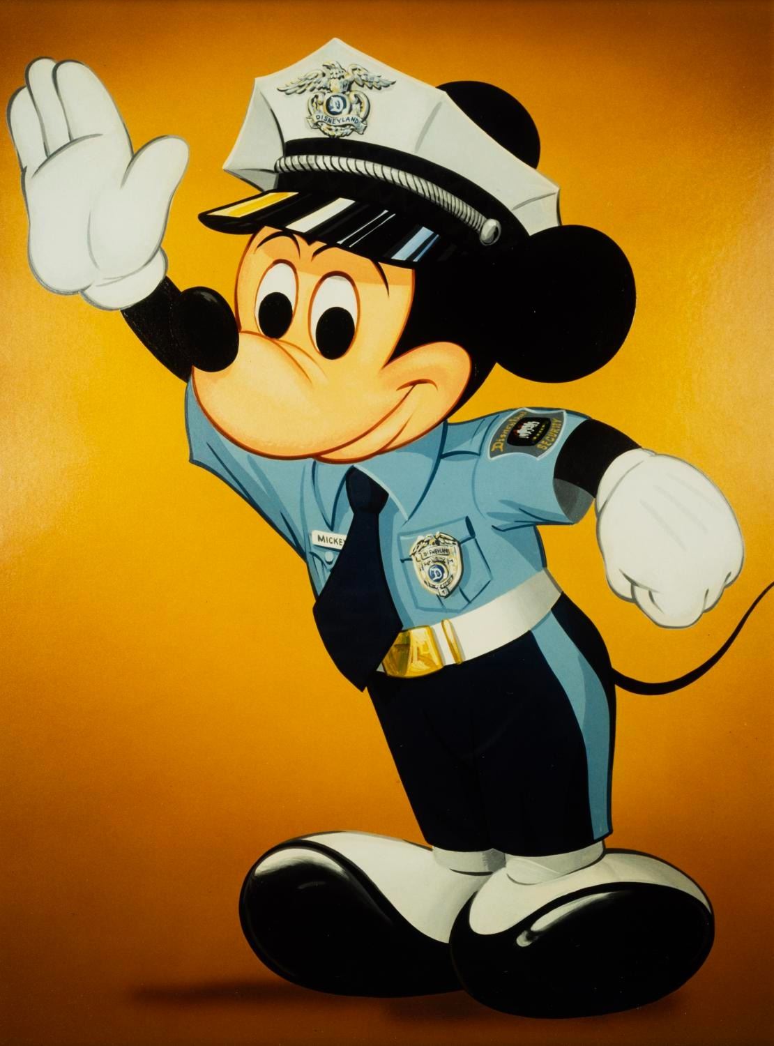 (Disney, 1980s-2000s) A Cast Member print of Security Mickey. Measuring 12” x 16” in a 16” x 20” matte, the print is in very good condition with light scratches and wear.