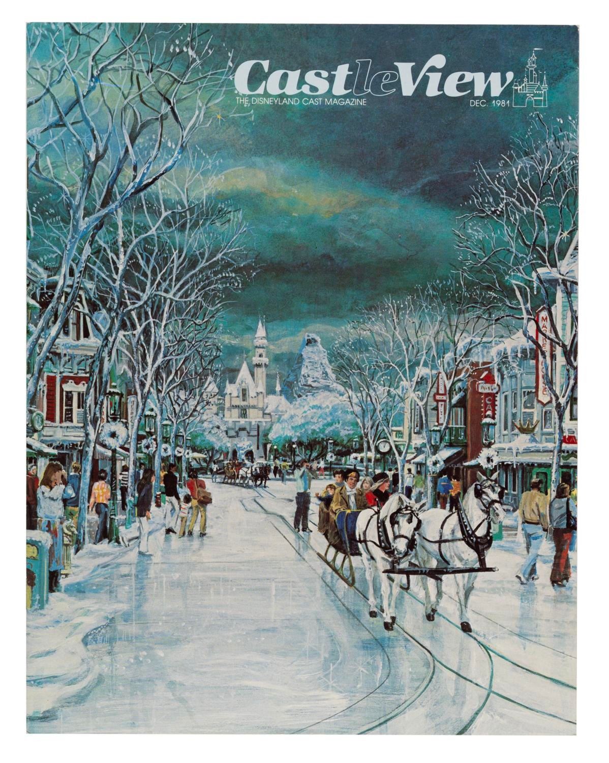(Disneyland, 1981) A copy of "CastleView: The Disneyland Cast Magazine" published by Disney University. This 24-page premier issue features information on the upcoming opening of EPCOT, construction developments of Tokyo Disneyland, preparation for the Holiday season at Disneyland, and a history of Fantasyland. Measuring 8.5" x 11", the magazine is in very good condition with expected wear from use.