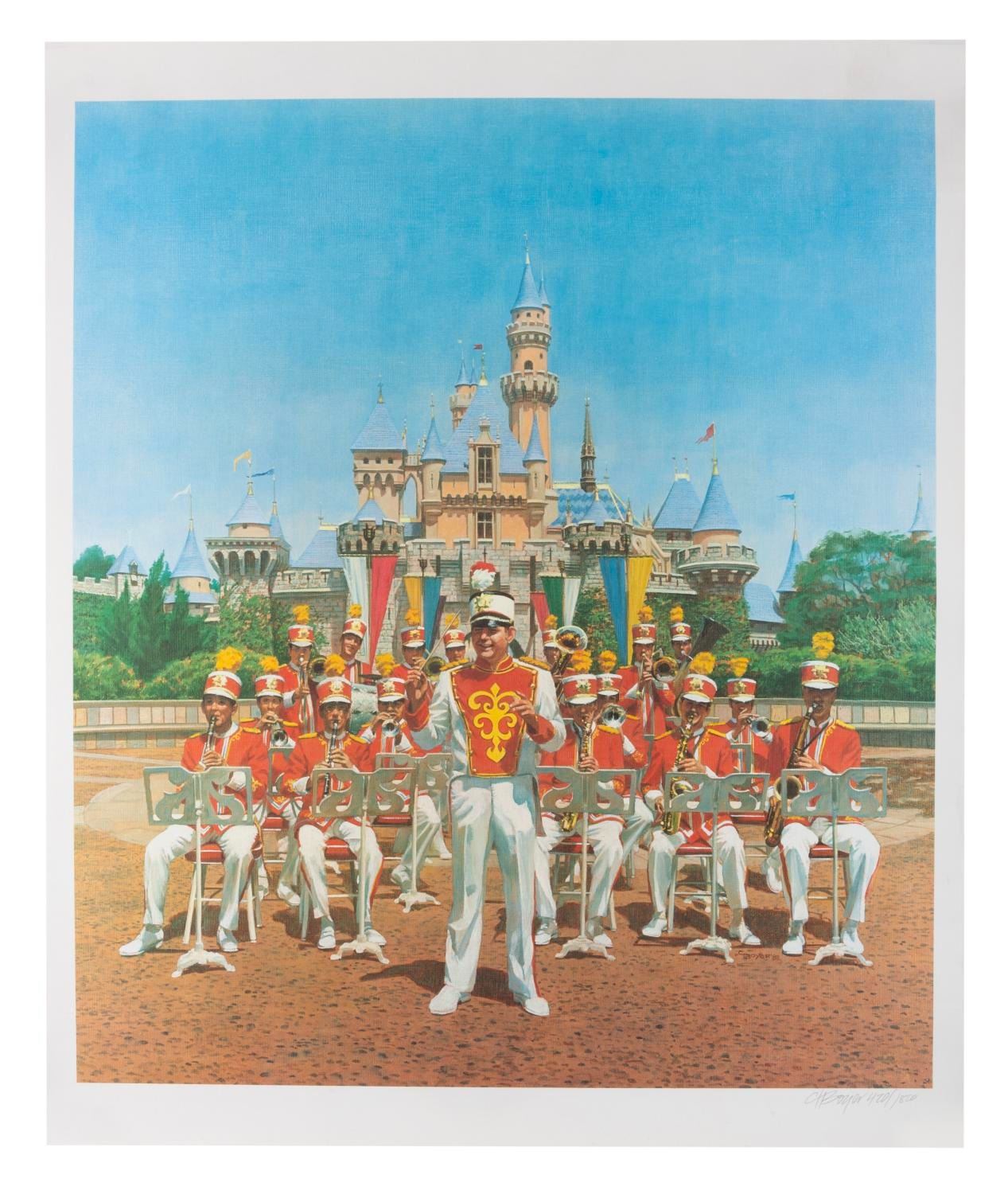 (Disneyland, 1982) A Charles Boyer lithograph titled "Walt's Music Makers" commemorating the 50,000th performance of the Disneyland Band. Hand-signed in graphite by Boyer and numbered 420 out of 1800, the poster measures 21.5” x 25.25” and is in very good condition with light edge wear.