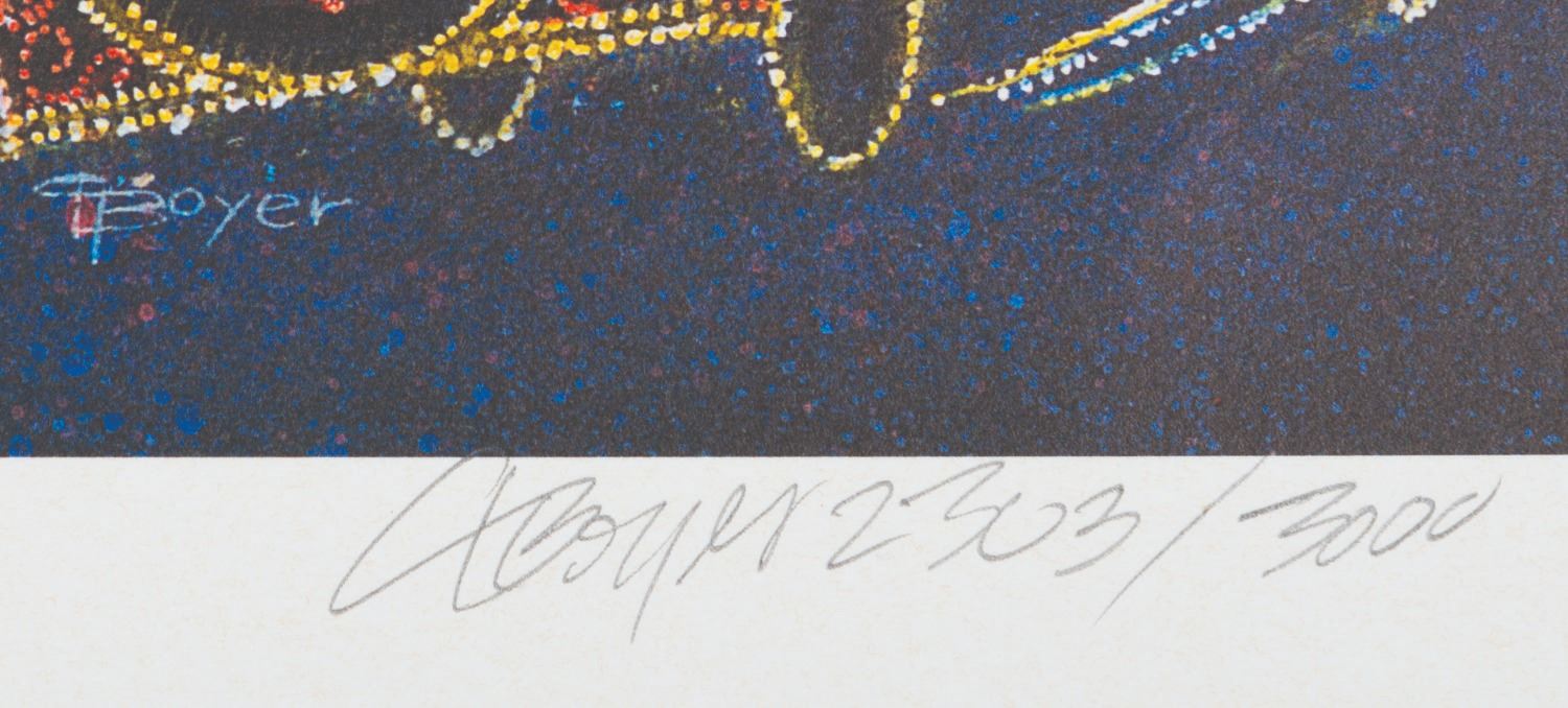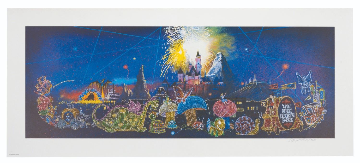 (Disneyland, 1996) A poster print depicting the final procession of the Main Street Electrical Parade, signed by Disneyland Master Artist Charles Boyer and numbered 2303 out of 3000. Measuring 16" x 37", the print is in very good condition with light edge wear.