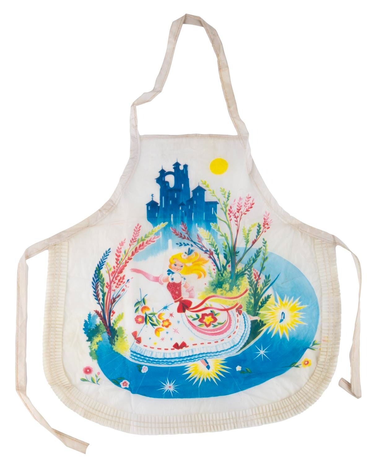 (1960s-70s) A (non-Disney) Cinderella play apron. Measuring 15" x 16", the apron is in very good condition with light wear from use and age.