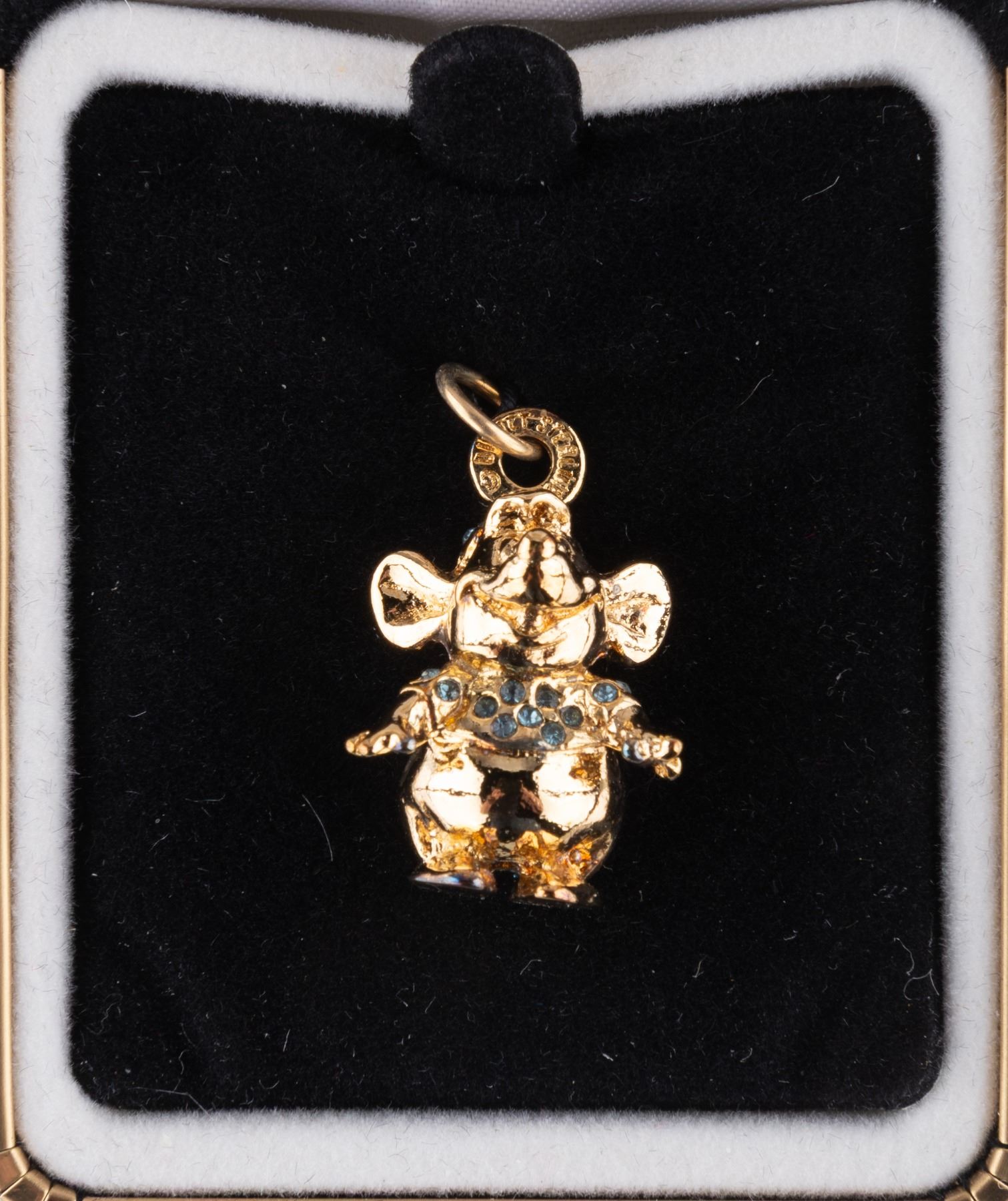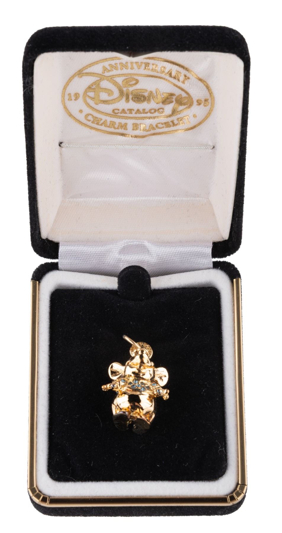 (Disney Catalog, 1995) A "Cinderella" Gus charm commemorating the 45th Anniversary of of the film. The charm is 14 karat gold vermeil over sterling silver and is hand-set with genuine Austrian crystals. Released in a limited edition of 5000, the charm is in fine condition in the original box.