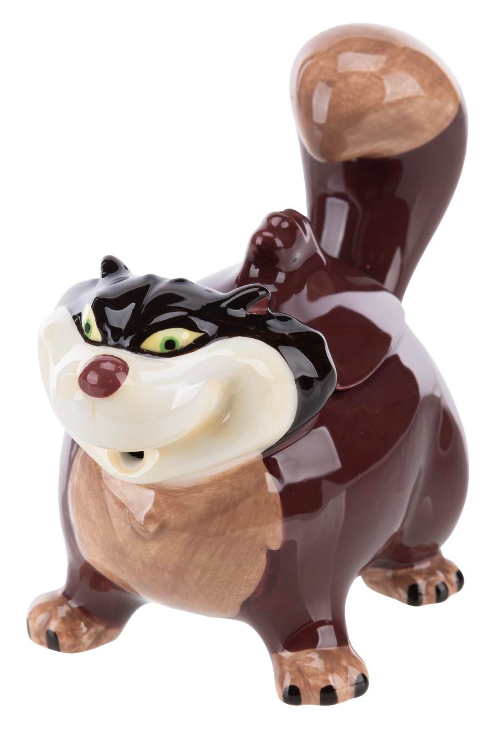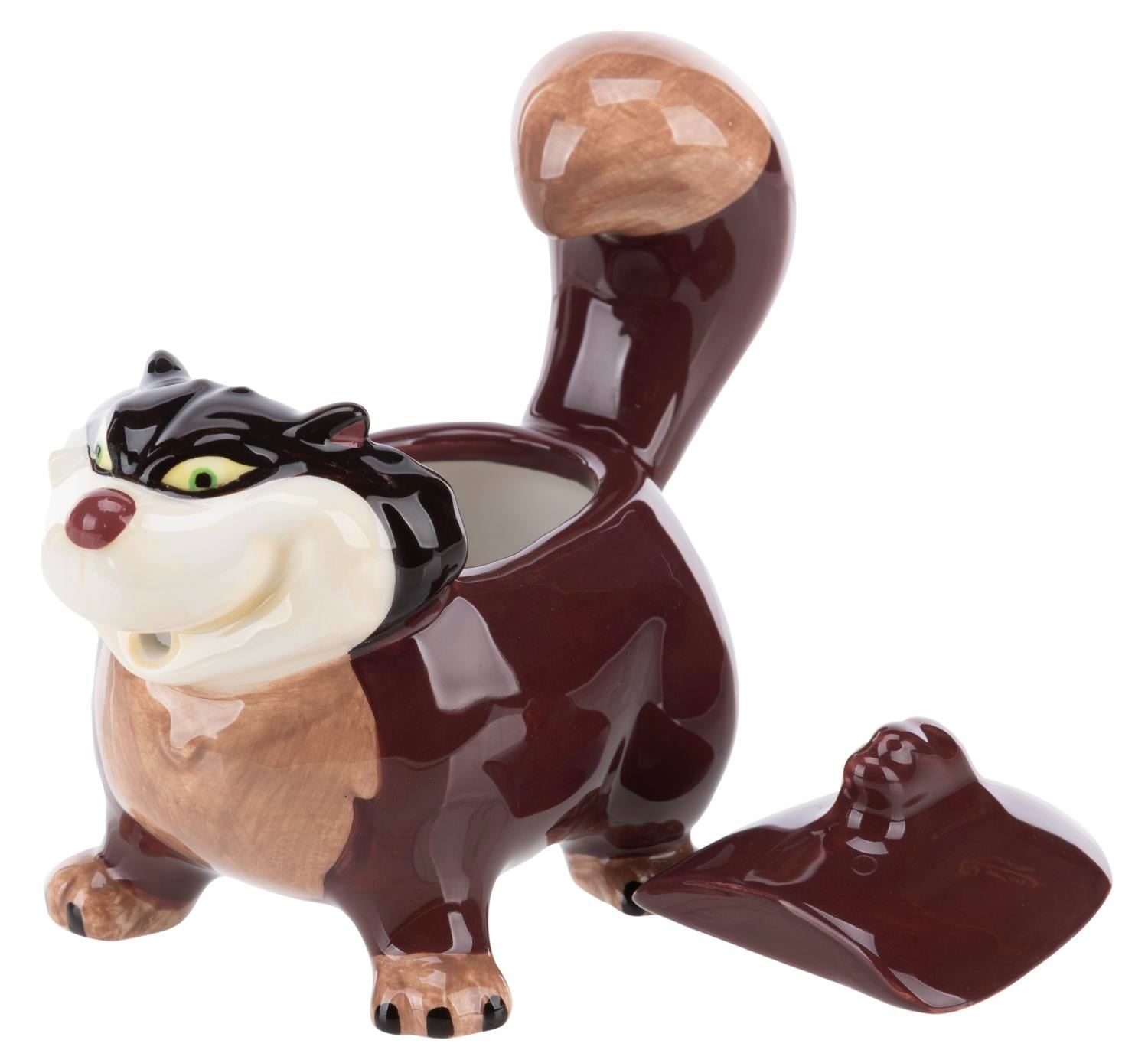 (Disney Store, 1990s-2000s) A figural ceramic coffee creamer of Lucifer the cat from "Cinderella." Measuring 2.5" x 4.5" x 3.75" tall, the creamer is in fine condition.