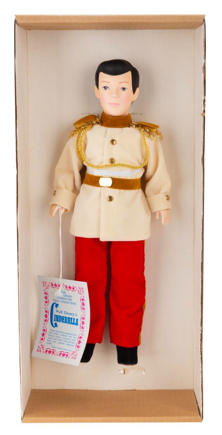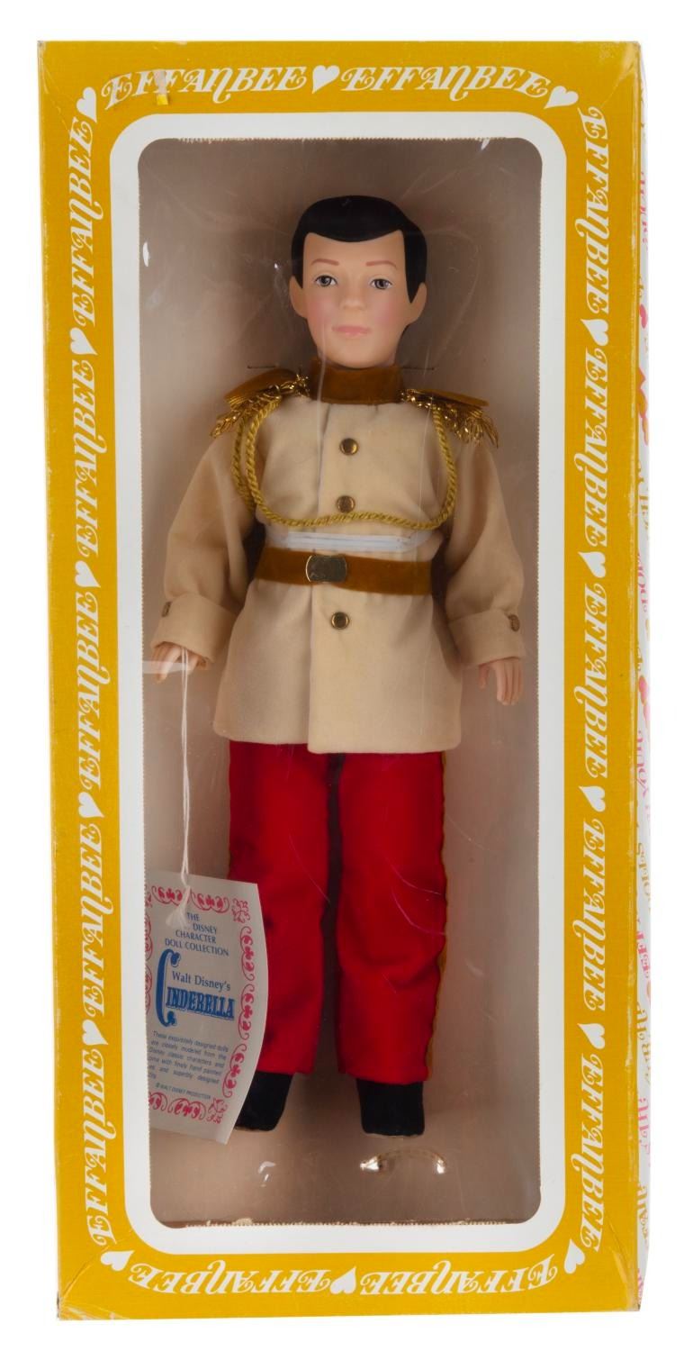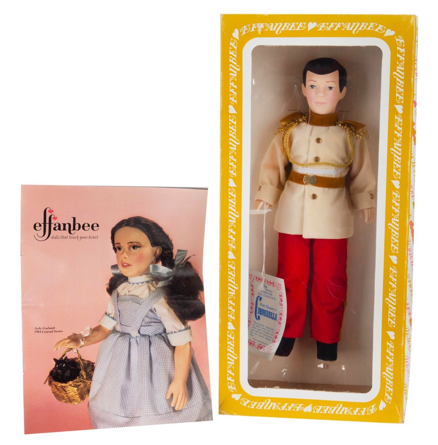 (Effanbee Doll Corp., 1985) A "Cinderella" Prince Charming Doll from The Walt Disney Character Doll Collection. Measuring 13.5" tall, the doll is in fine condition, still in the original box. The Effenbee box is mislabeled for a Judy Garland doll.
