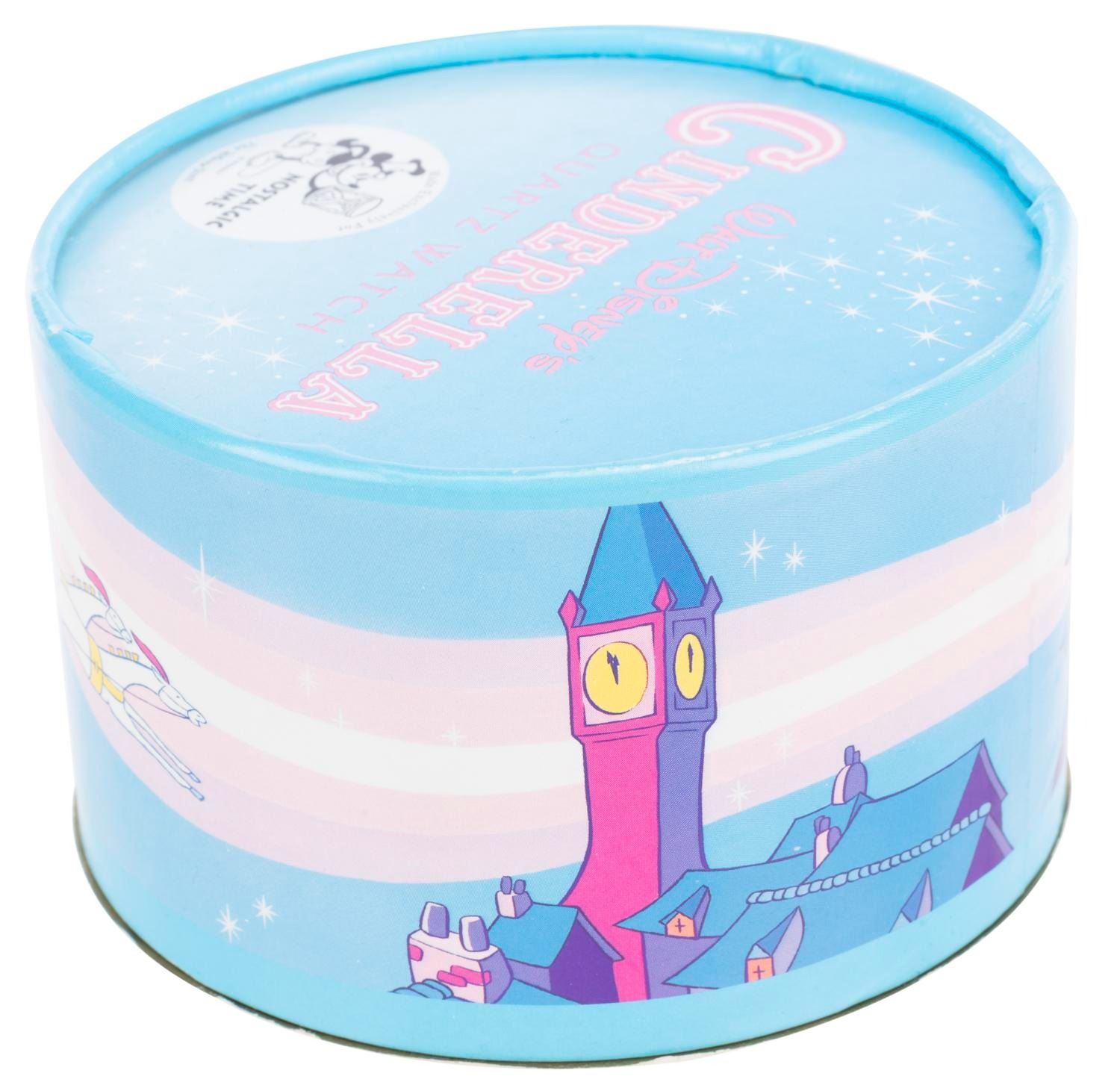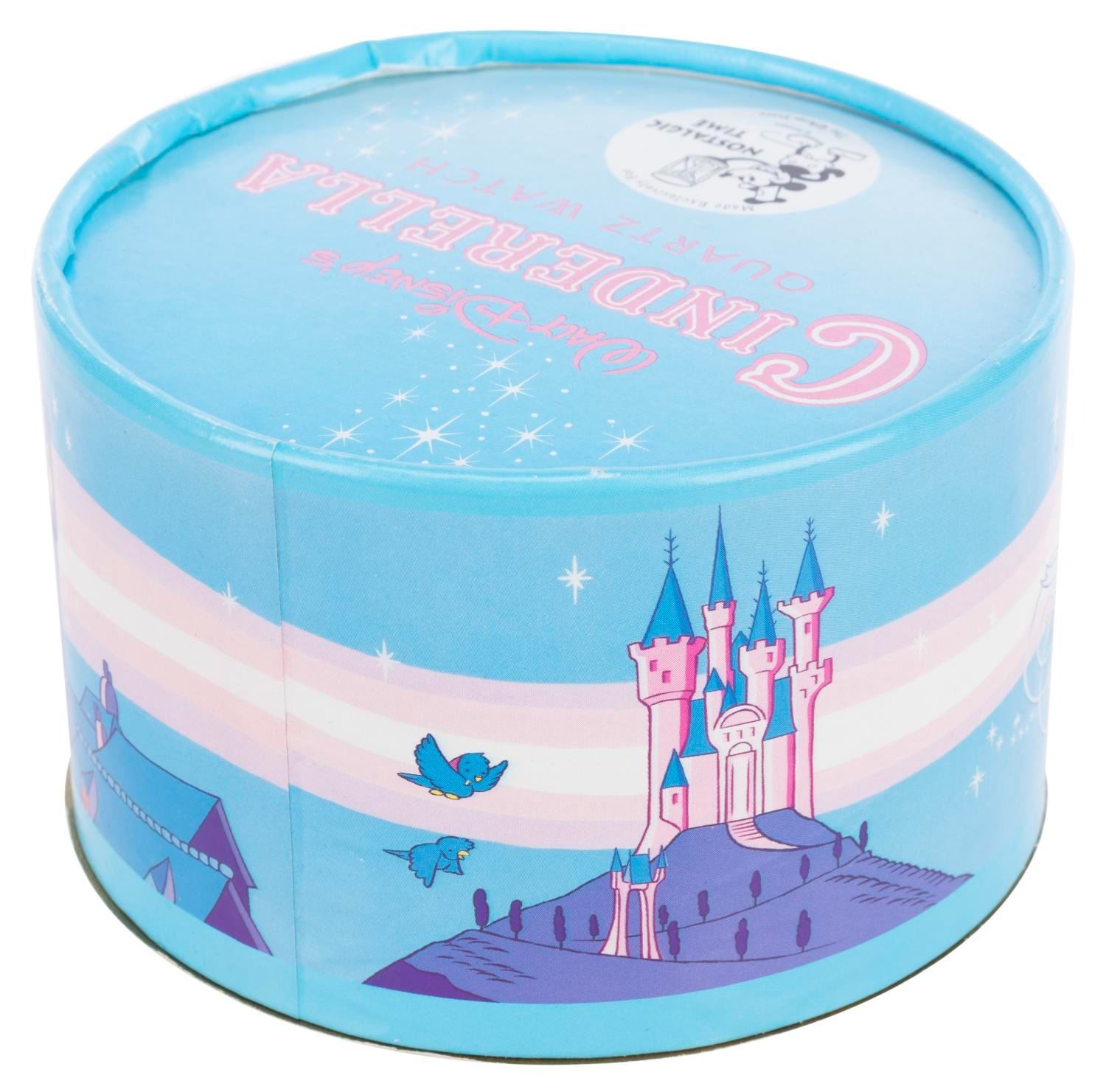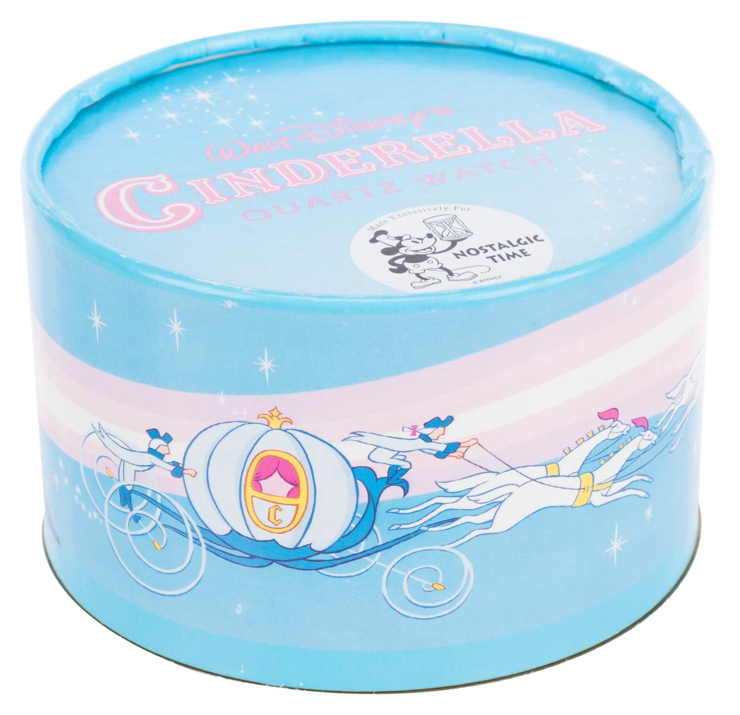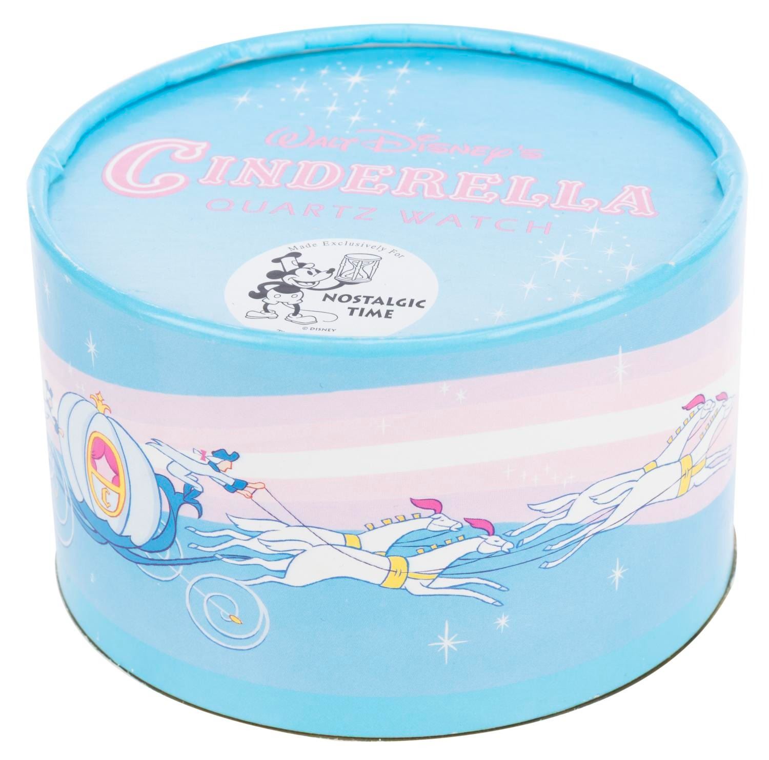 (Disney, 1990s) A "Cinderella" quartz watch, part of The Disney Store's Nostalgic Time collection, displayed on a plastic glass slipper. The watch did not work when tested, likely requiring repair or a new battery. The watch comes with its original case and is in very good condition with creases on the band.