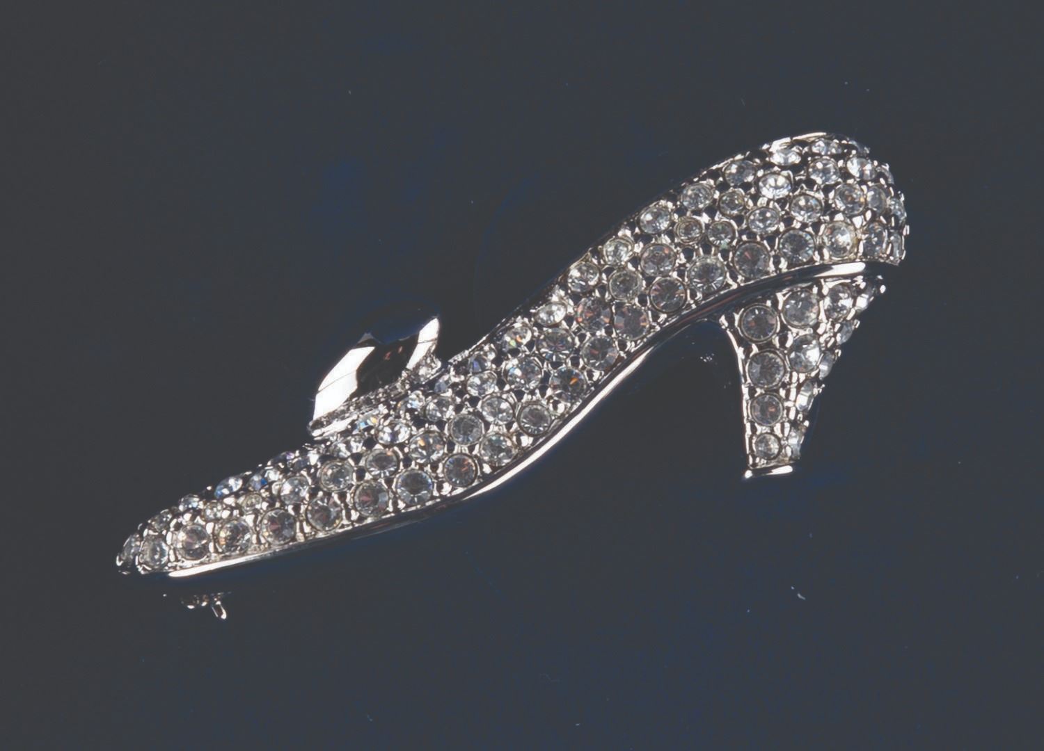 (The Walt Disney Gallery, 2000) A "Cinderella " brooch set with Swarovski crystal, originally sold at The Walt Disney Gallery for the film's 50th anniversary. Numbered 0897/1000, the limited edition brooch measures 1.75 " x 1 " and is in fine condition with the original box.