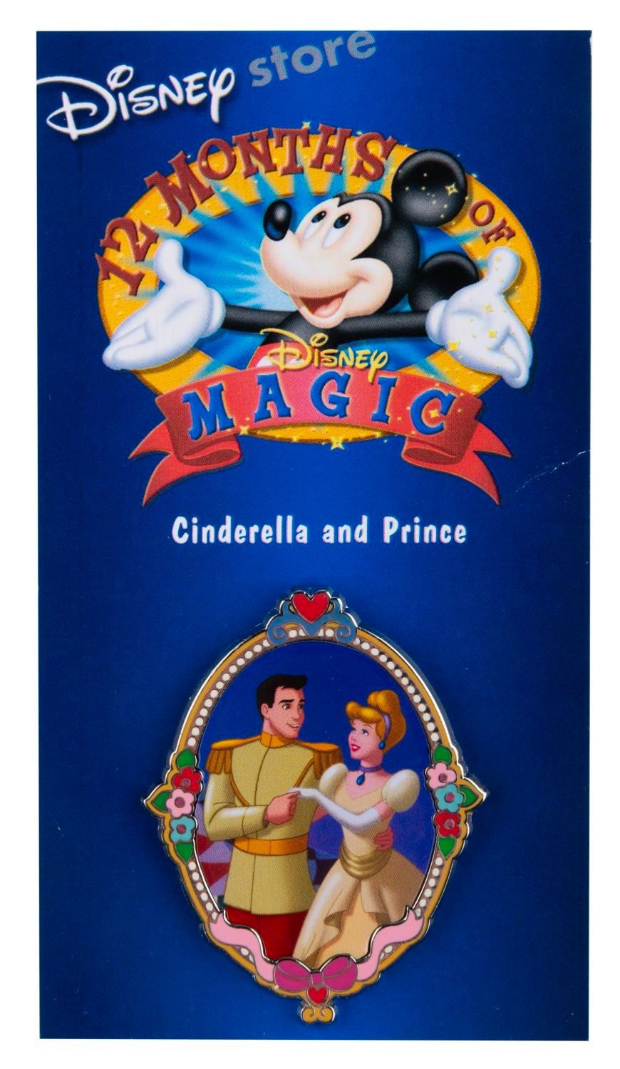 (Disney Store, 2002) A "Cinderella and Prince " pin from the 12 Months of Magic collection. The pin is in fine condition on the original card.