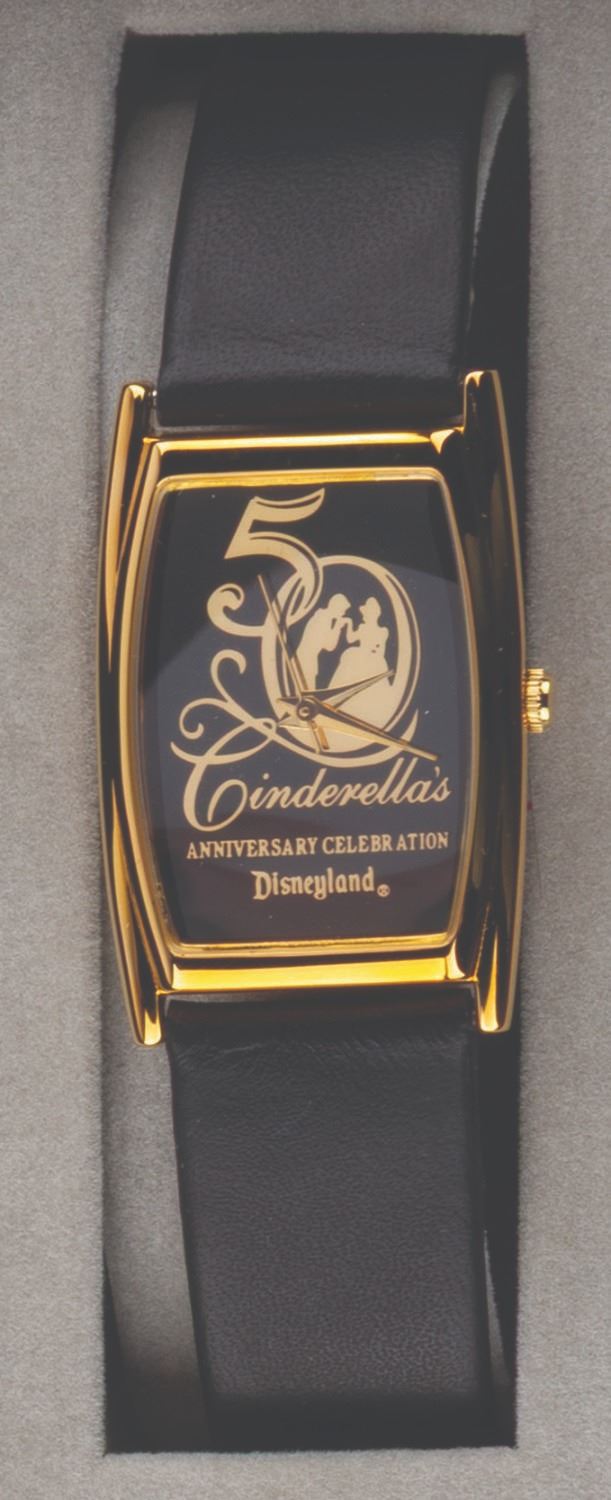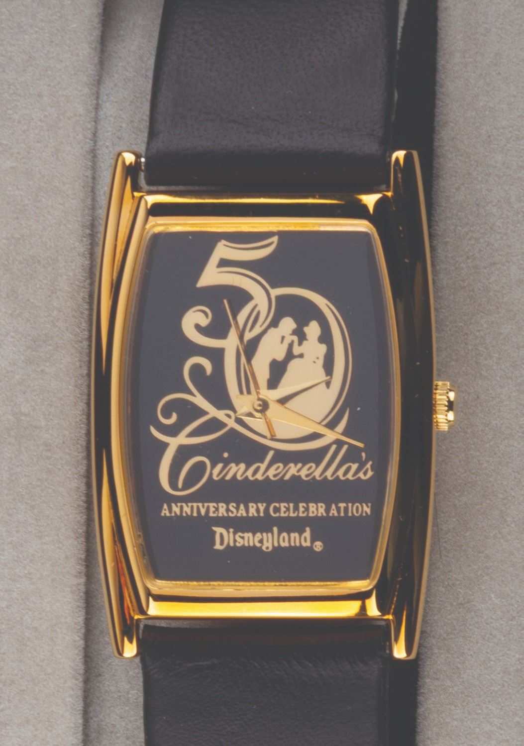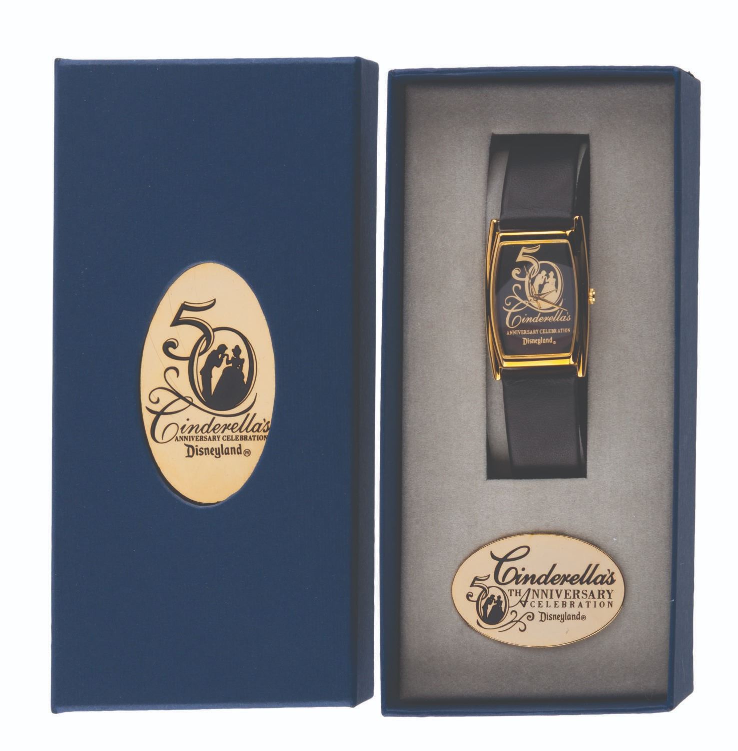 (Disneyland, 2000) A beautiful watch commemorating Cinderella's 50th Anniversary Celebration at Disneyland, released in an unnumbered limited edition. The presentation box and watch are in fine condition, requiring a battery and possibly service to function.