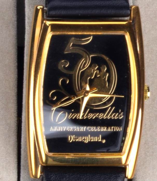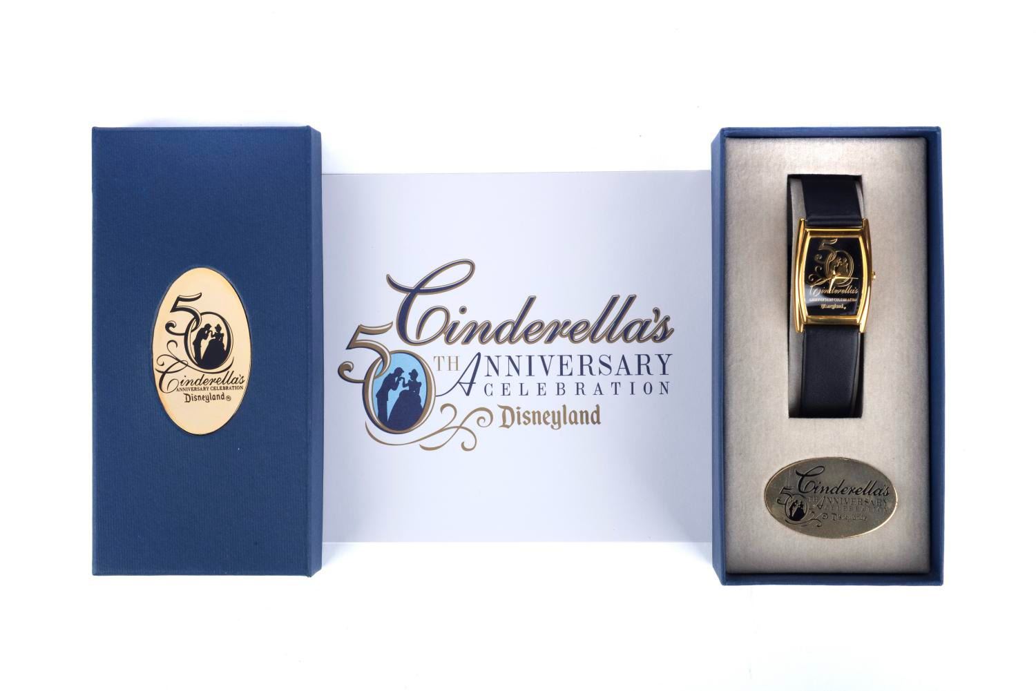 (Disneyland, 2000) A limited-edition watch commemorating Cinderella's Anniversary Celebration at Disneyland & "Cinderella's Royal 50th Anniversary Celebration" invitation. The pieces come from the collection of Disney Parks Cast Member Kevin Doherty and are in fine unused condition.