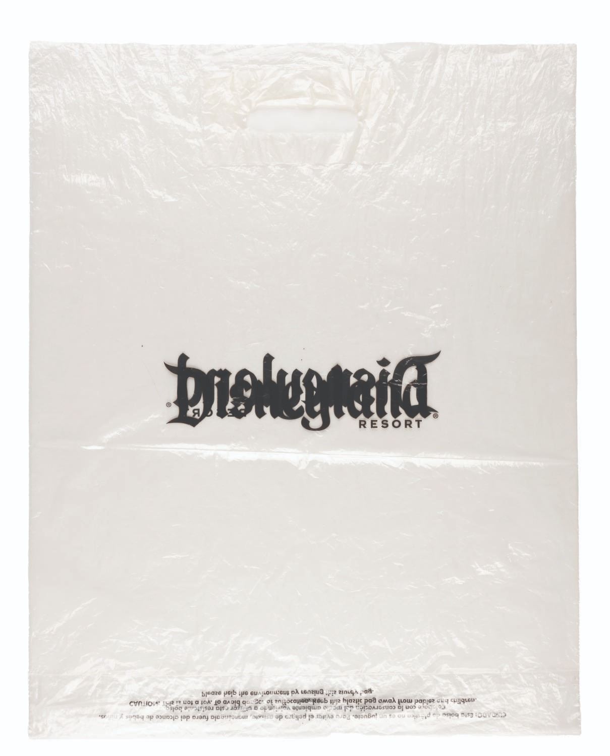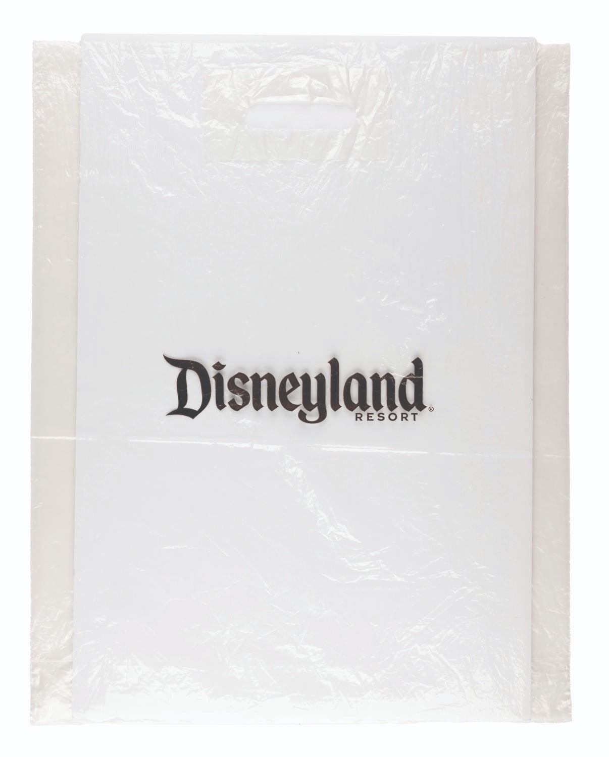 (Disneyland, 2000s) A clear plastic merchandise bag from the Disneyland Resort. Measuring 17.5” x 21.25”, the bag is in fair condition with creases throughout.
