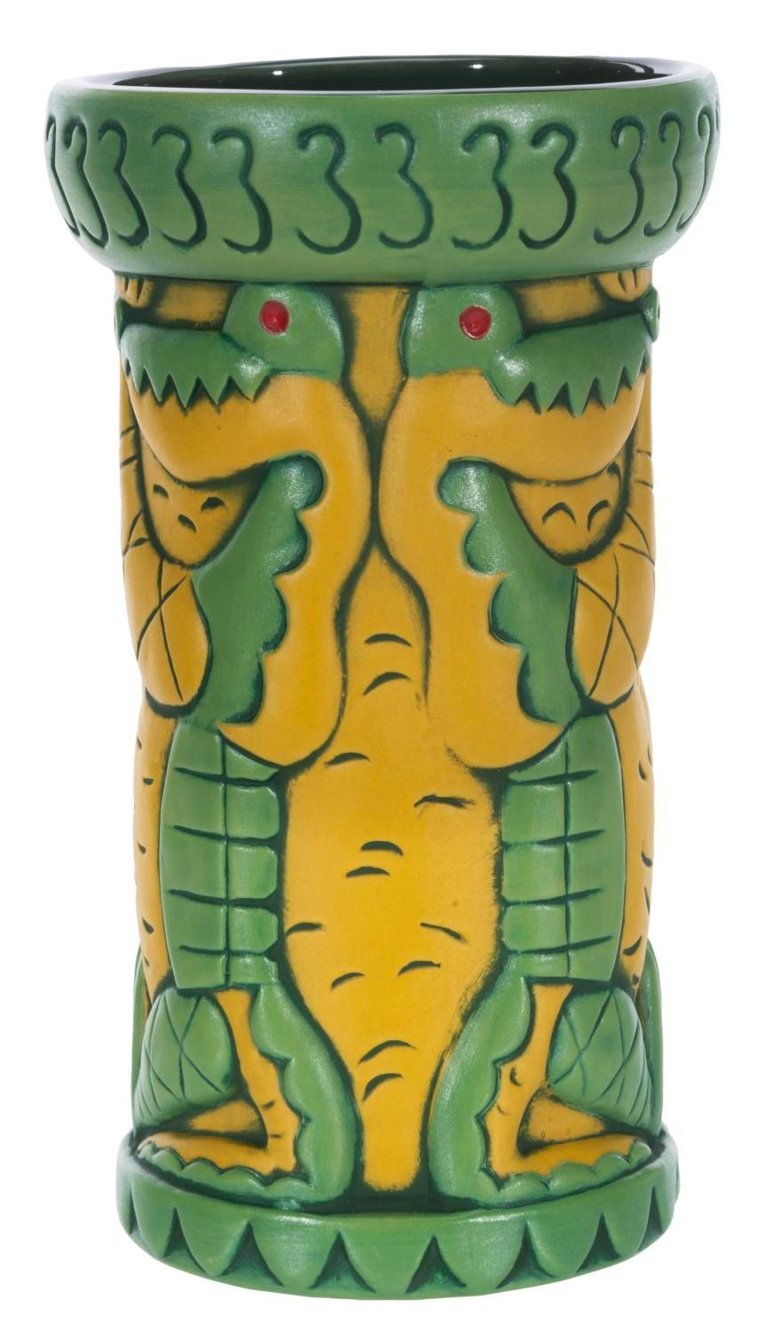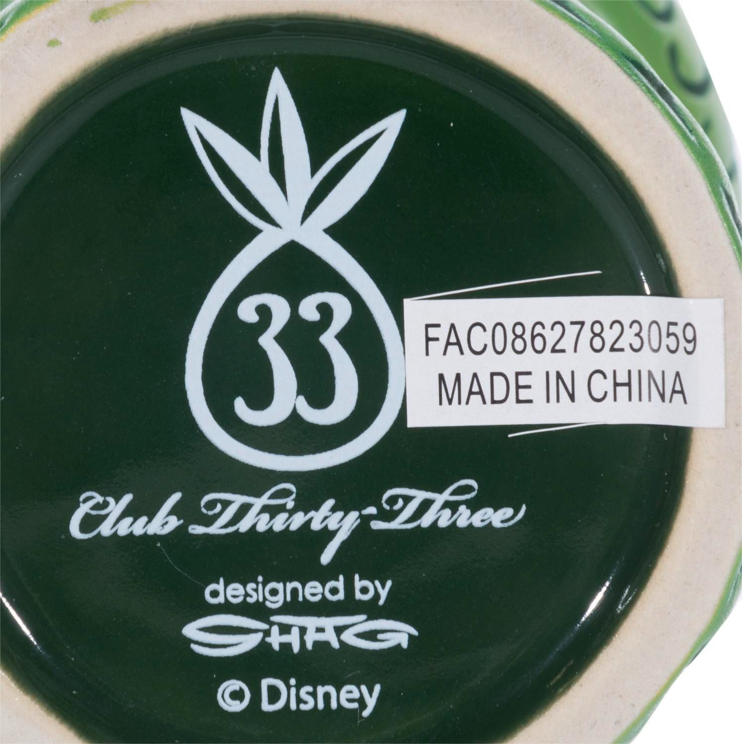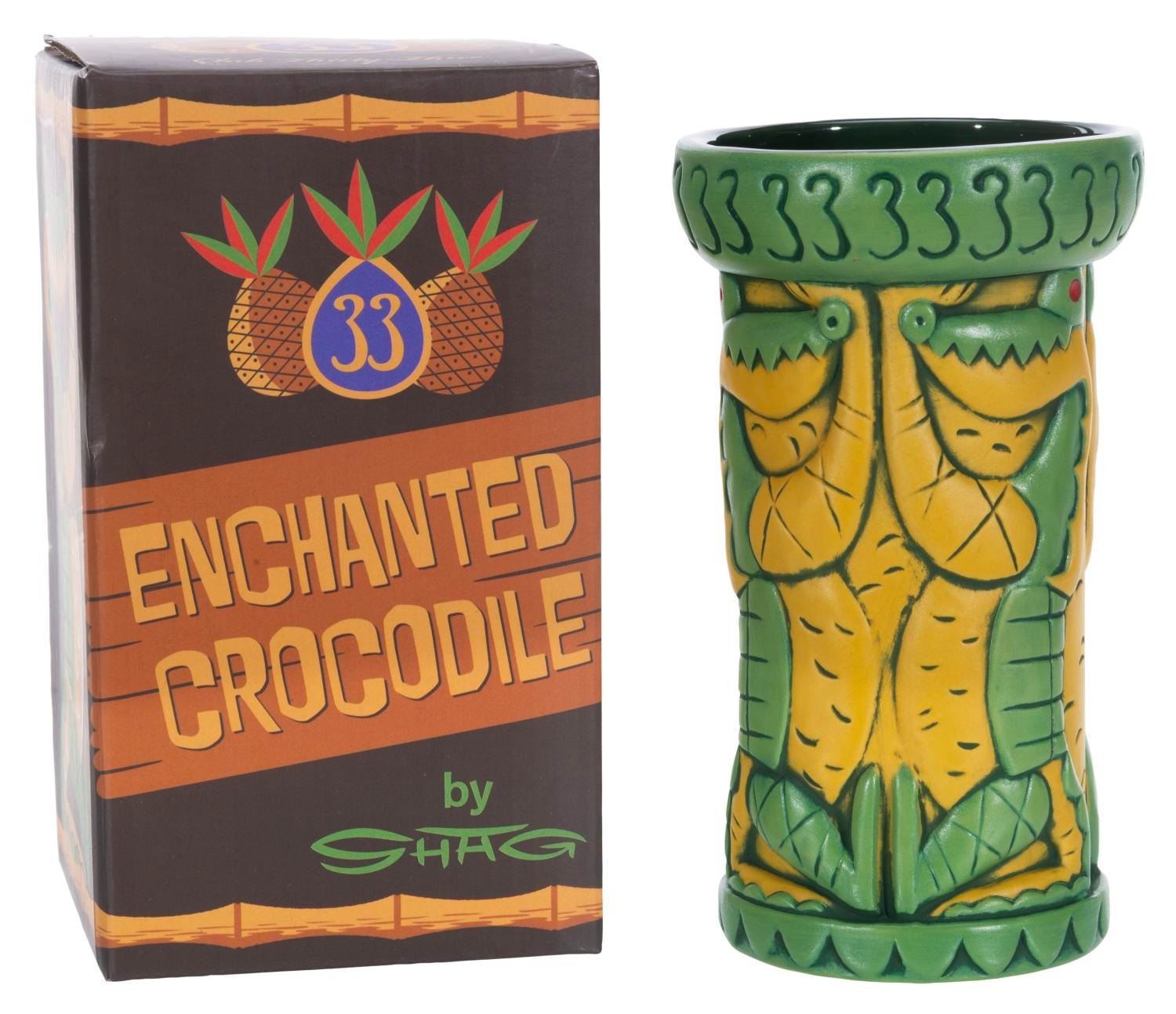 (Disneyland, 2023) A Club 33 exclusive Enchanted Crocodile tiki mug by SHAG. Measuring 6” tall and 3.5” in diameter with its 3.75” x 3.75” x 6.75” tall original box, the mug is in fine condition.