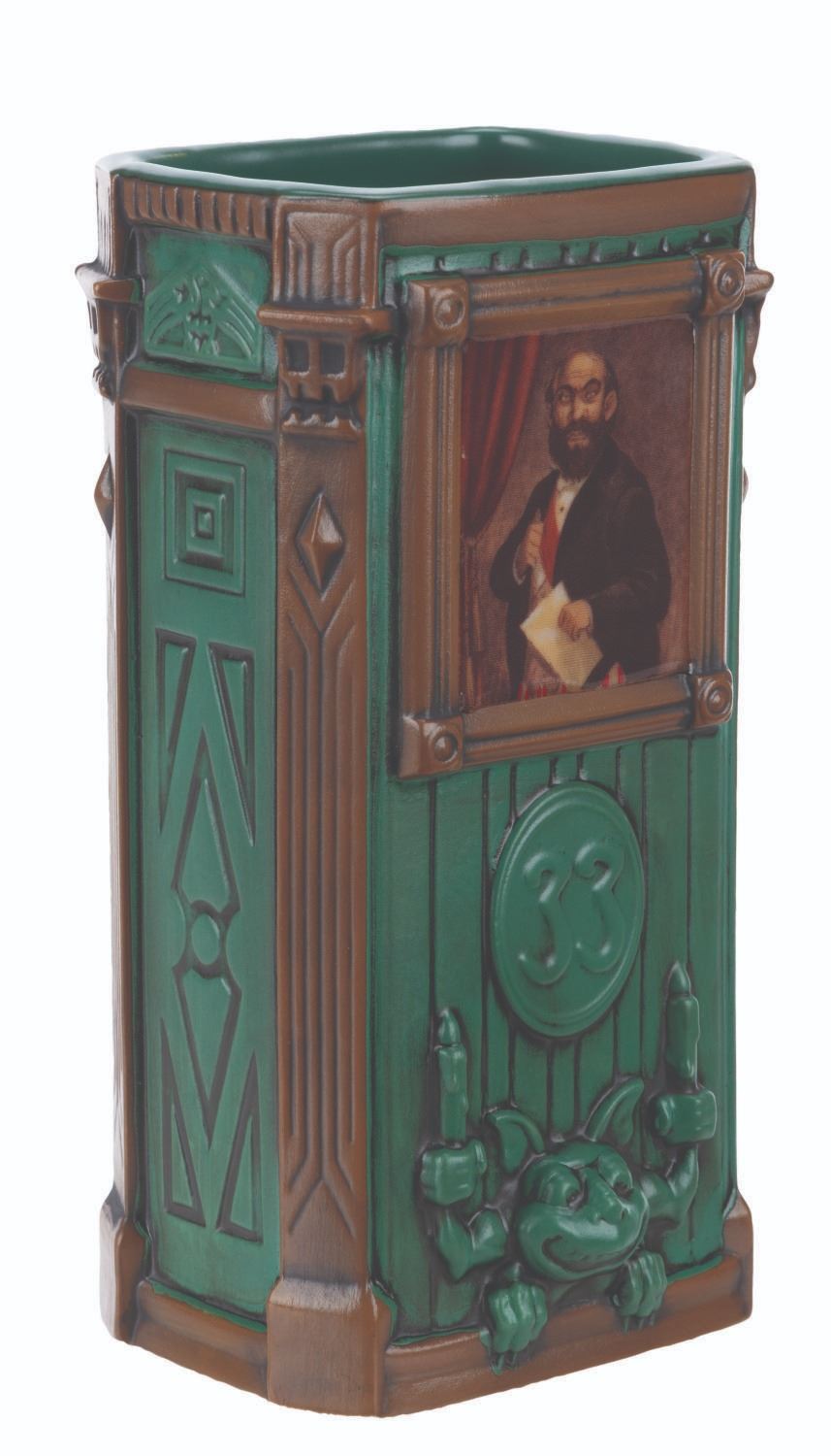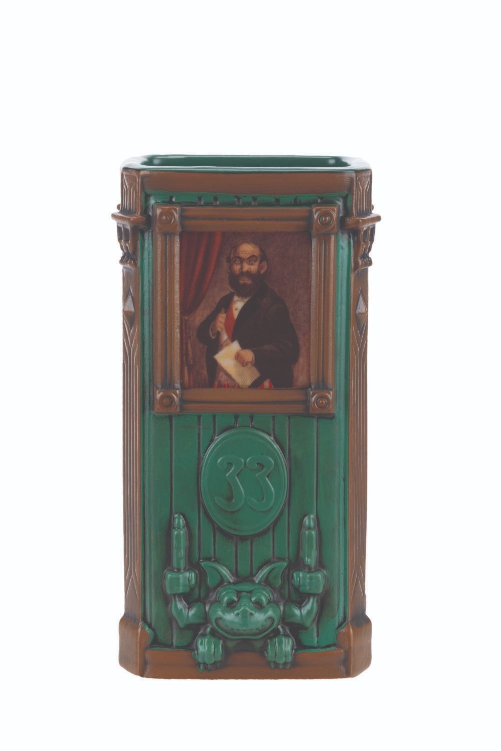 (Disneyland, 2024) A tiki mug and souvenir bag from the Club 33 Haunted Mansion 55th anniversary event. Based on Marc Davis’ original stretching portrait art, this mug features the Dynamite Man. The mug measures 3.5 " x 2.75 " x 6.75 " with the original 4 " x 3.5 " x 7.25 " tall box and 4 " x 8 " x 10 " bag, all in fine condition with a slight scuff to the top of the box.
