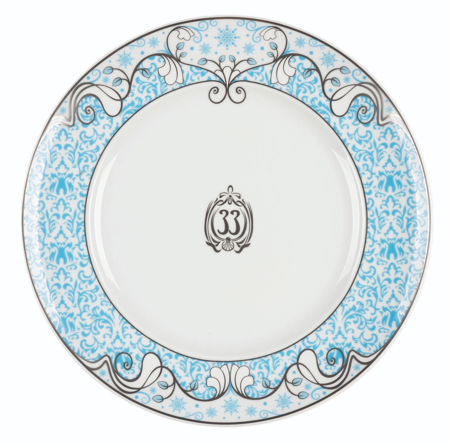 (Disneyland, 2021) A charger plate and bread plate from Disneyland’s exclusive Club 33, featuring their holiday pattern from 2021. Measuring 11.5" and 6.5" in diameter, the plates are in fine condition.