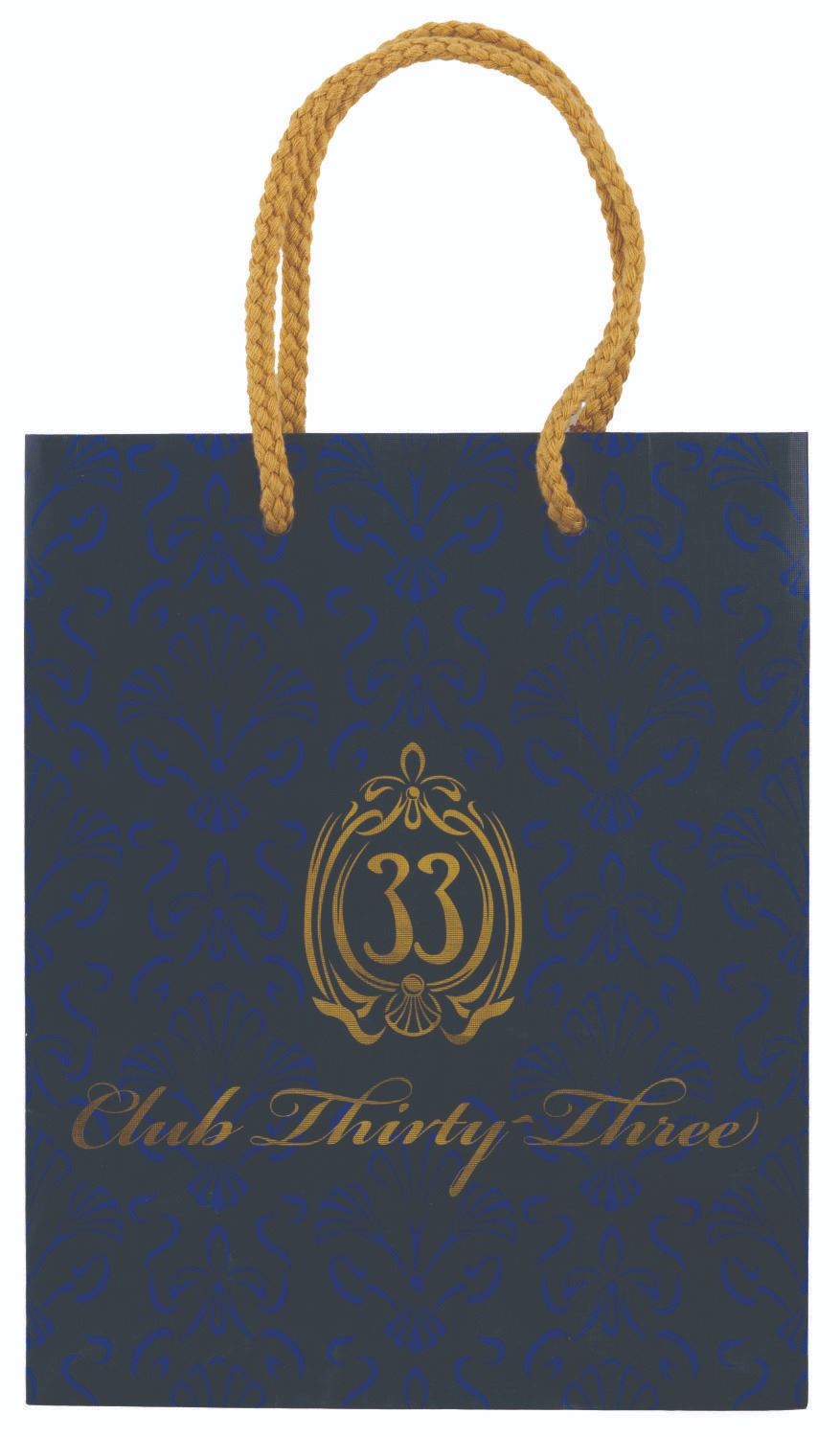 (Disneyland, 2010s-20s) A Club 33 shopping bag featuring the Club's logo printed in a reflective gold. Measuring 8" x 4" x 10", the bag displays in very good condition with light wear.