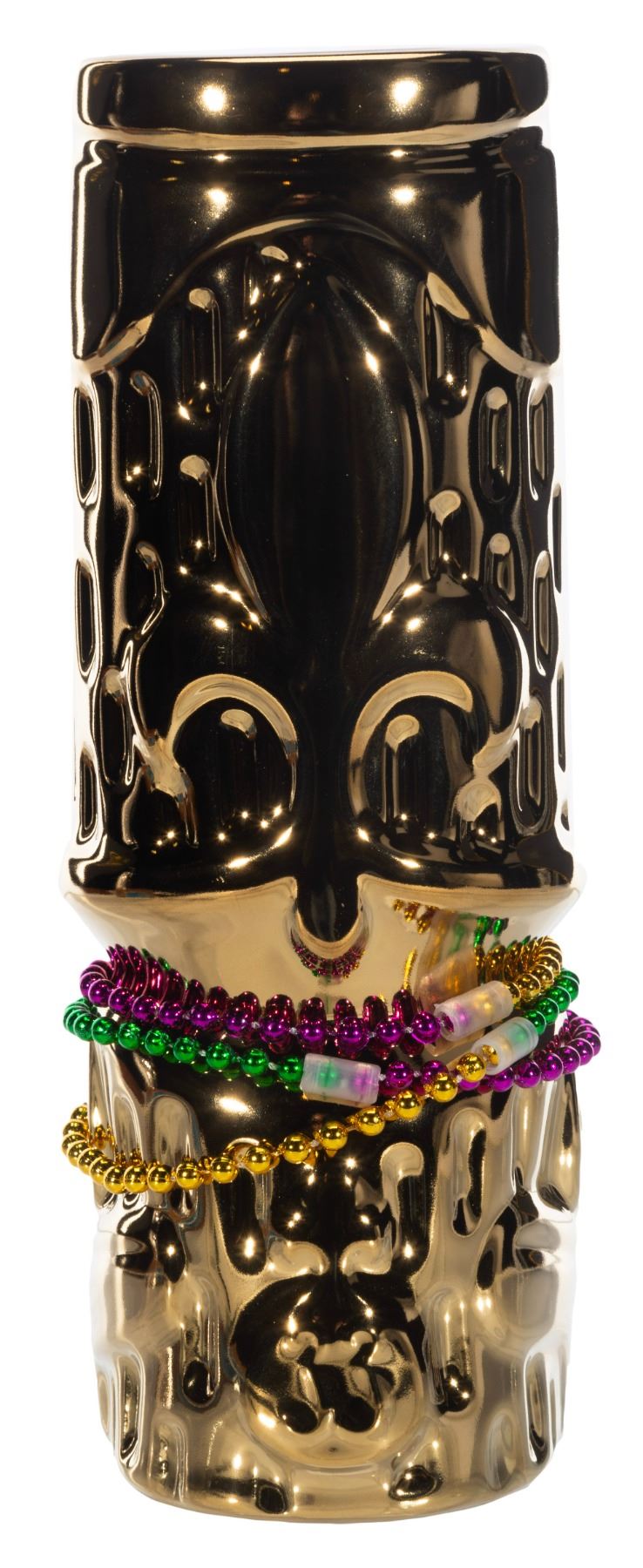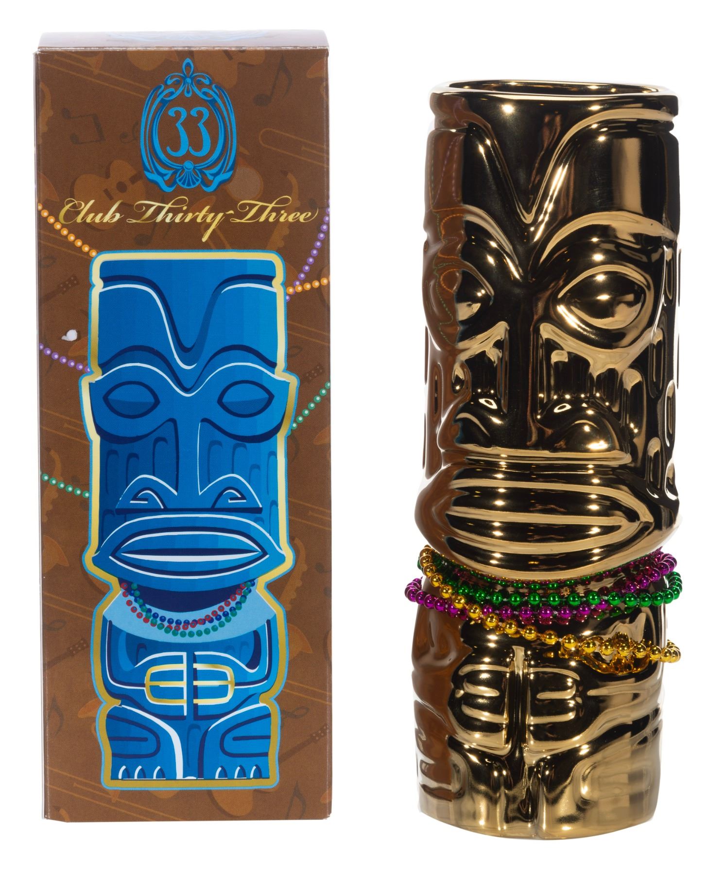 (Disneyland, 2022) A Gold Edition Club 33 exclusive Mardi Gras Mug (Laissez Les Bon Temps Rouler) designed by SHAG and limited to an edition of 500. Measuring 8” tall and 3” in diameter with its 3” x 3” x 8.5” tall original box, the mug is in fine condition.