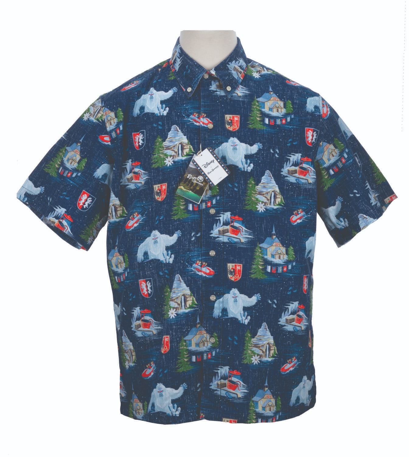 (Disneyland, 2024) A Club 33 exclusive button-down shirt by Reyn Spooner released for the Matterhorn’s 65th anniversary. The shirt features designs inspired by the attraction, including its famous Yeti. Labeled a size L, the cotton and polyester shirt is in fine condition with its original tags intact.