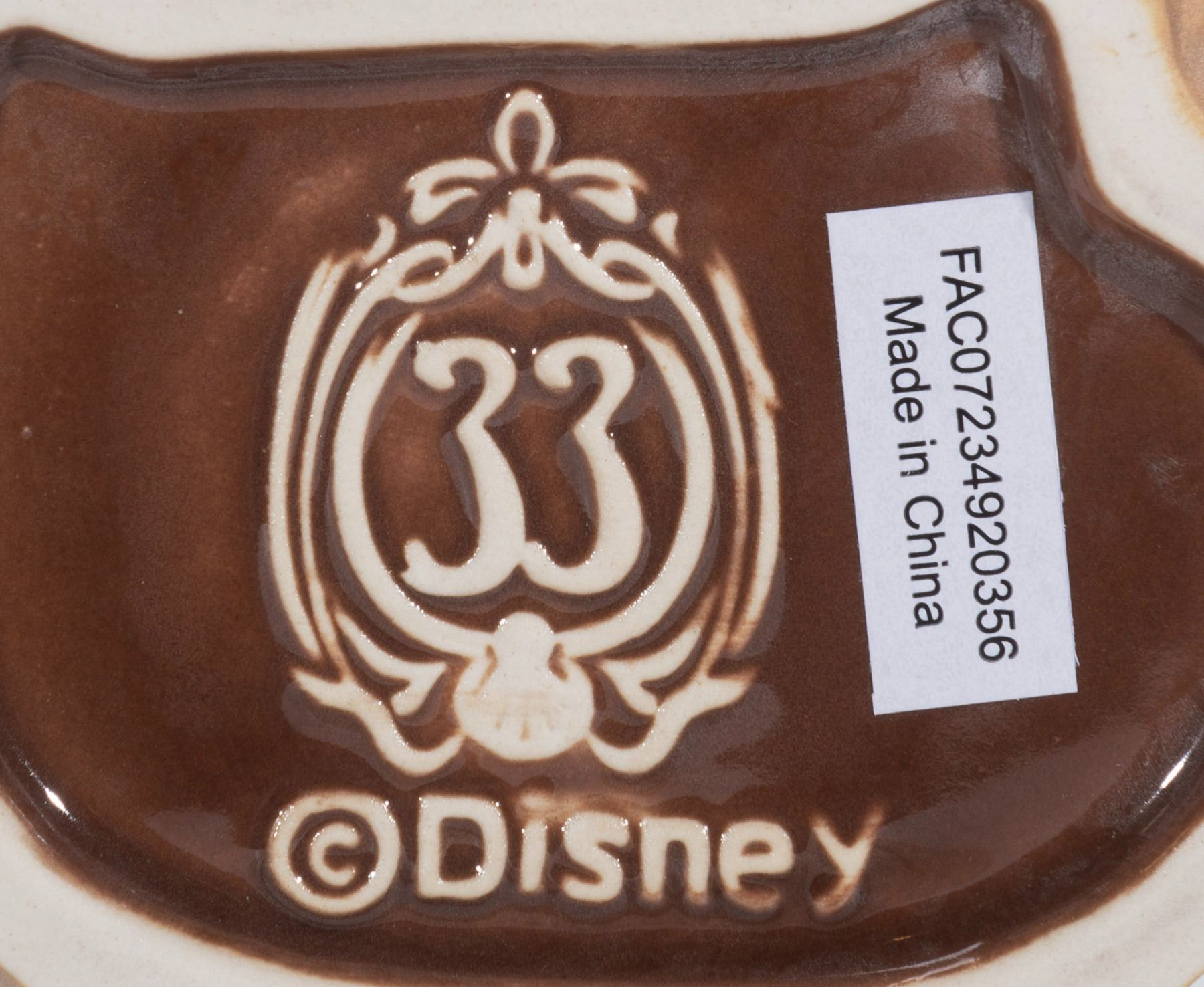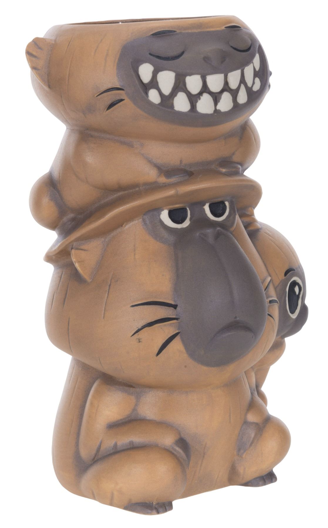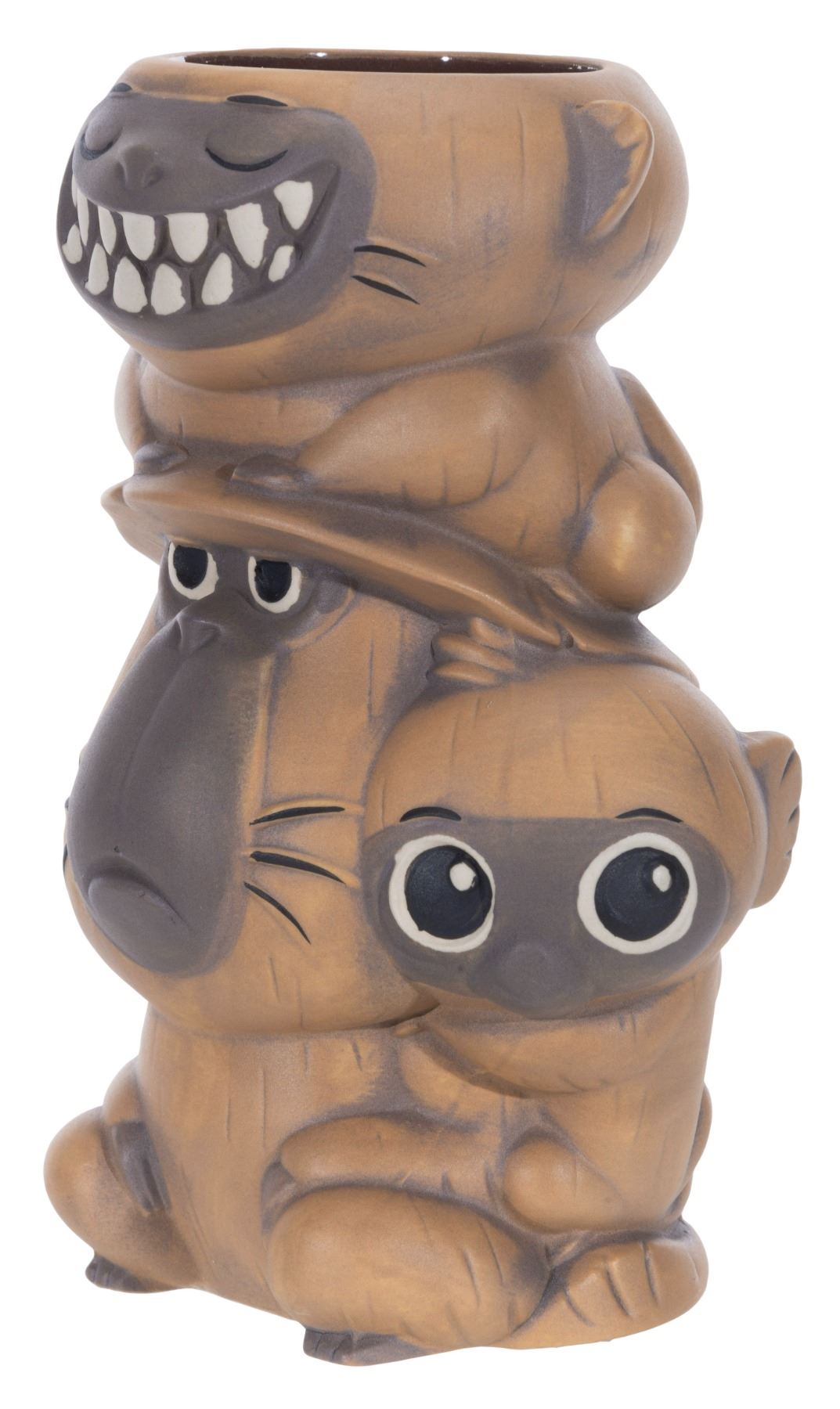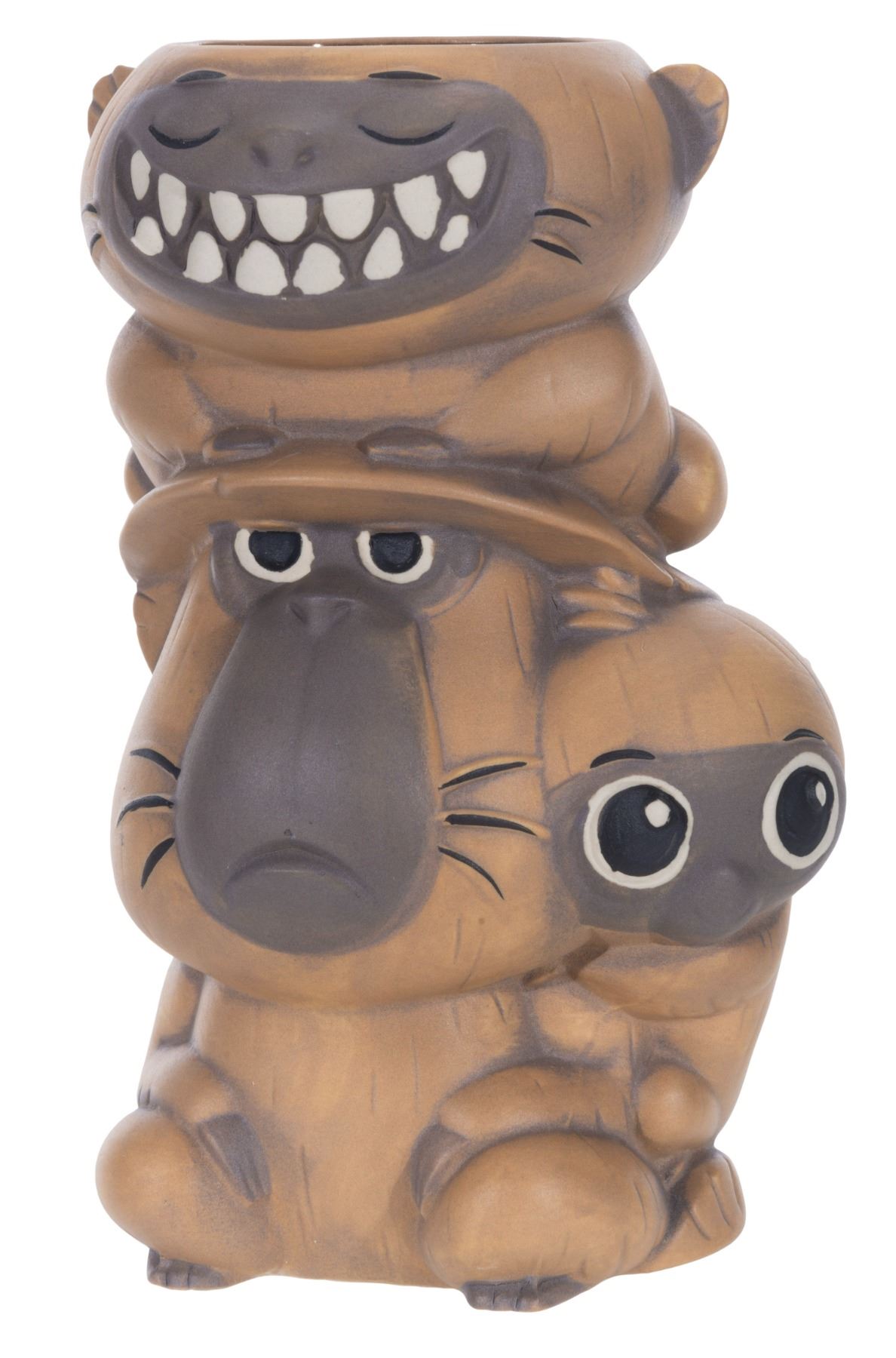 (Disneyland, 2021) A Club 33 exclusive Ongi Mug inspired by "Raya and the Last Dragon,” featuring Dyan, Pan, and Uka. This mug was designed by Tiki Tum, also known as Paul Briggs, who was Co-Director on the film. Measuring 4" in diameter x 6.75" high, the mug is in fine condition, with the original box.