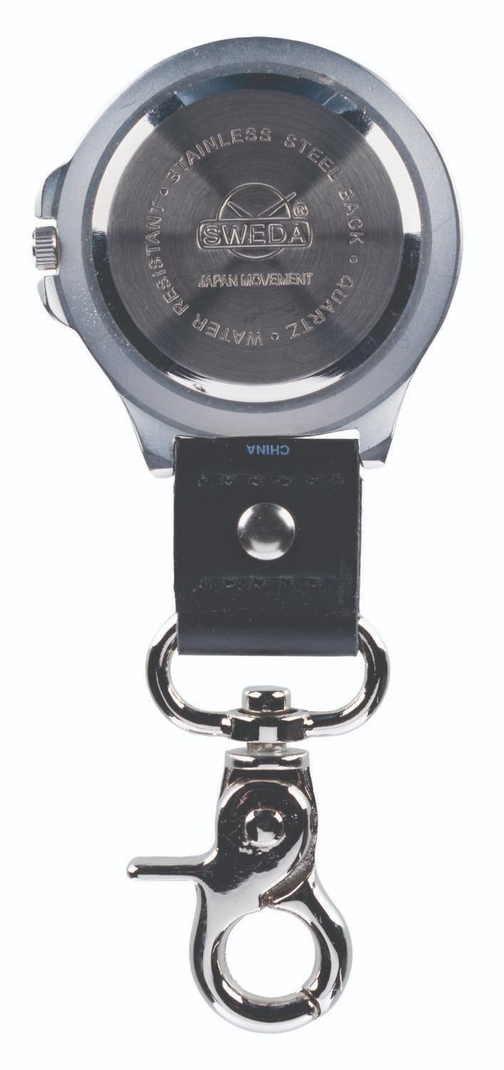 (Disneyland, 2000s) A Club 33 fob watch. This limited-release Quartz timepiece features a stylized spin on the classic logo, with a leather band, and swivel clip. Measuring 4” long, this watch and the strap are in very good condition with minor wear. The watch requires a new battery to function.