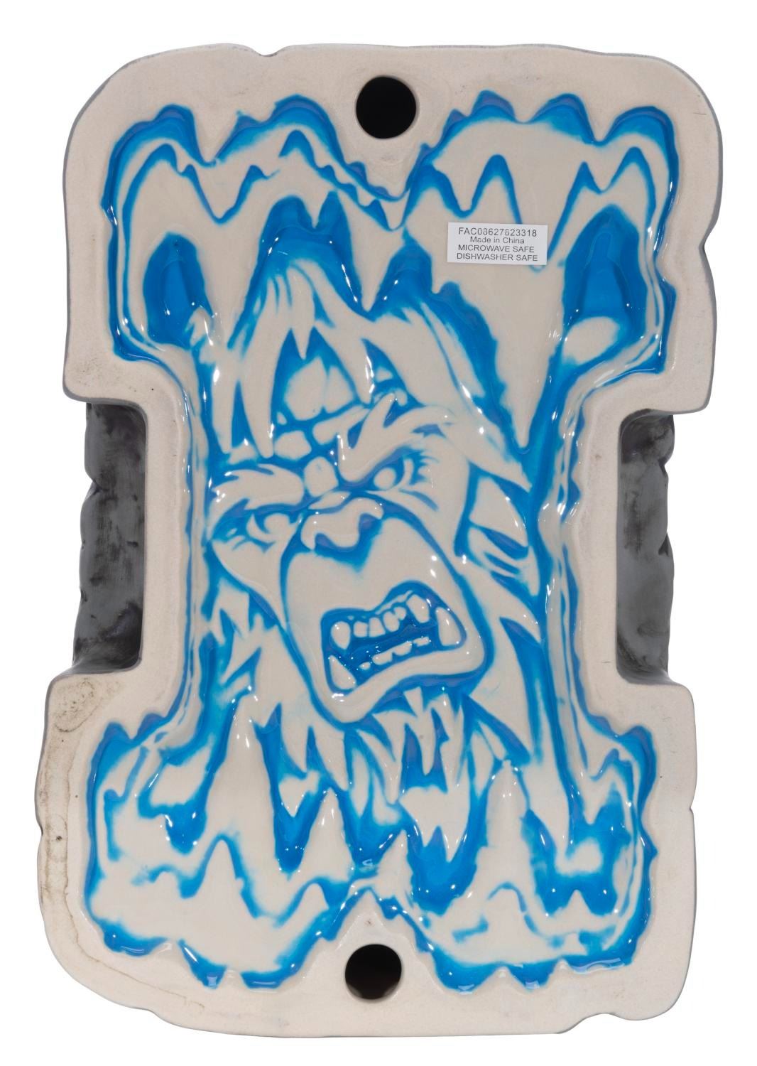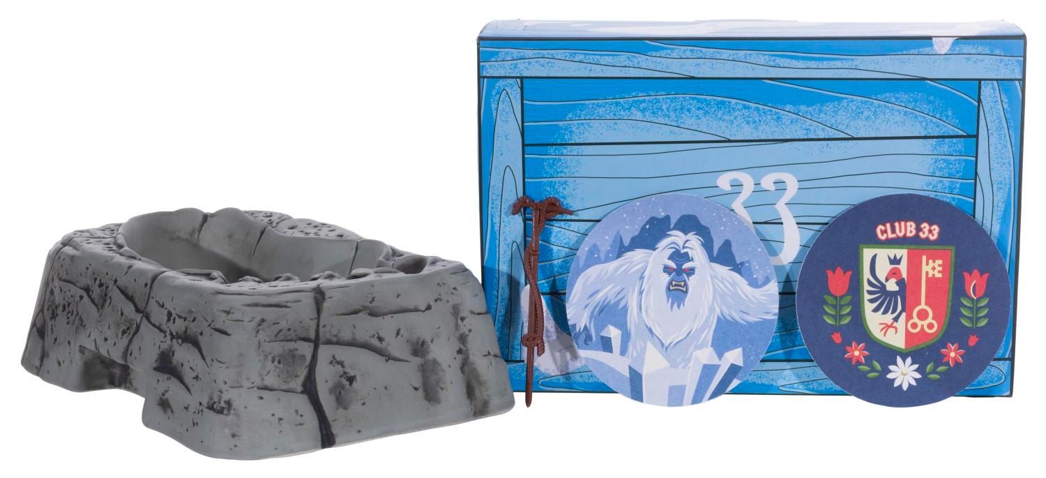 (Disneyland, 2024) A Club 33 Matterhorn 65th anniversary souvenir Yeti footprint bowl by VanTiki, with an event swizzle stick and two coasters. The 9.5” x 6.5” x 3” bowl, 4” swizzle stick and coasters are all in fine condition, with the original box.