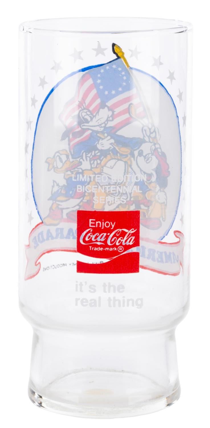 (Coca-Cola 1976) An America on Parade glass produced by Coca-Cola. Measuring 2.75" in diameter x 6.25" tall, the glass is in fine condition.