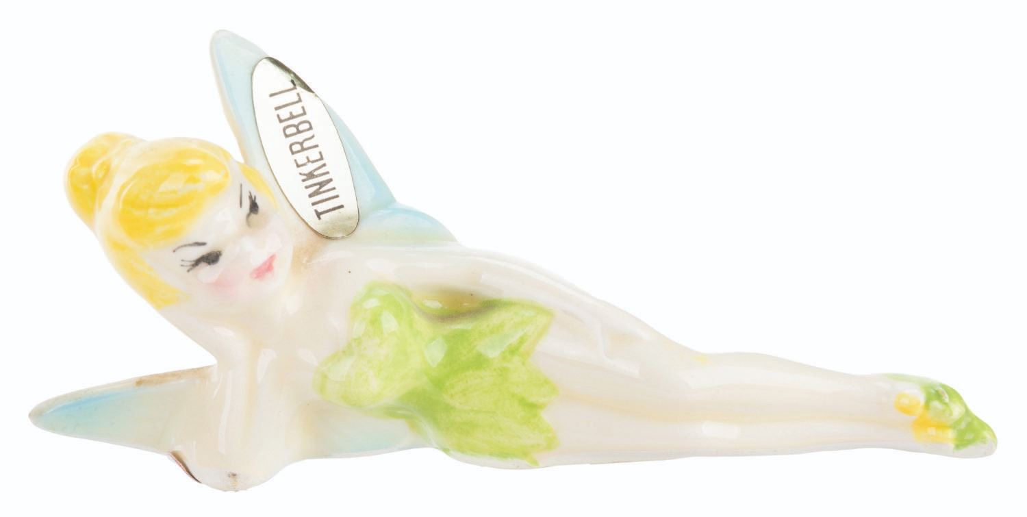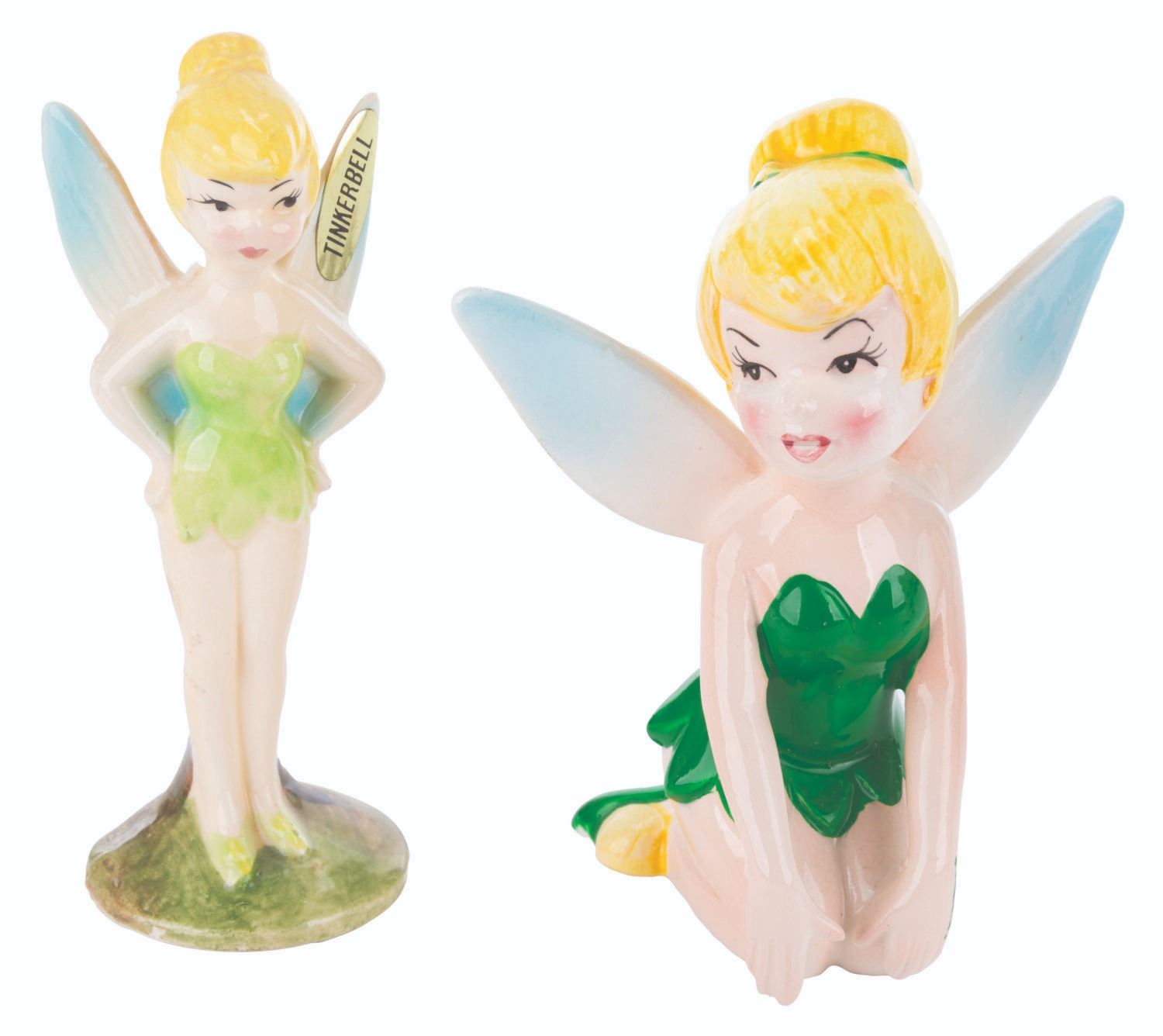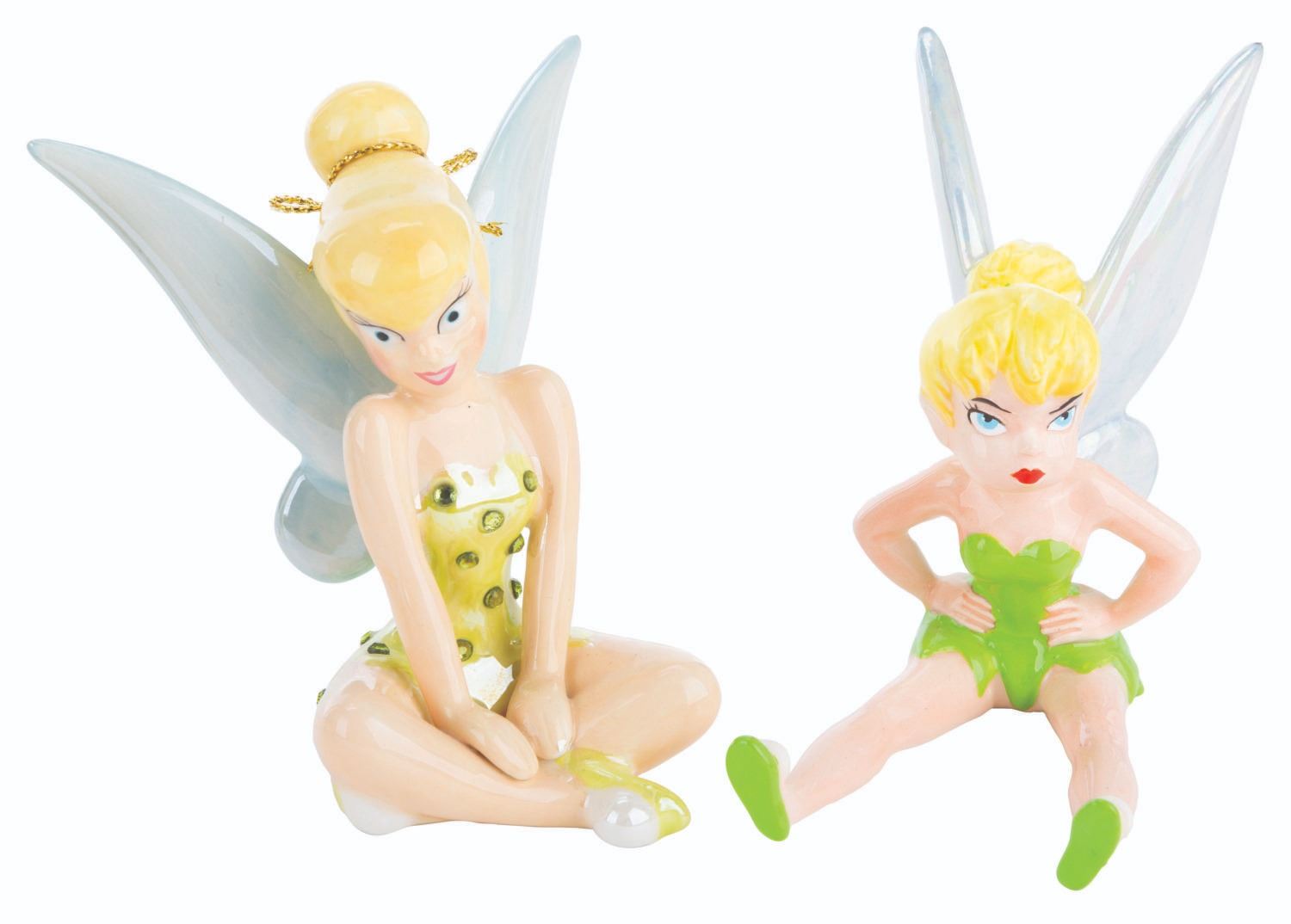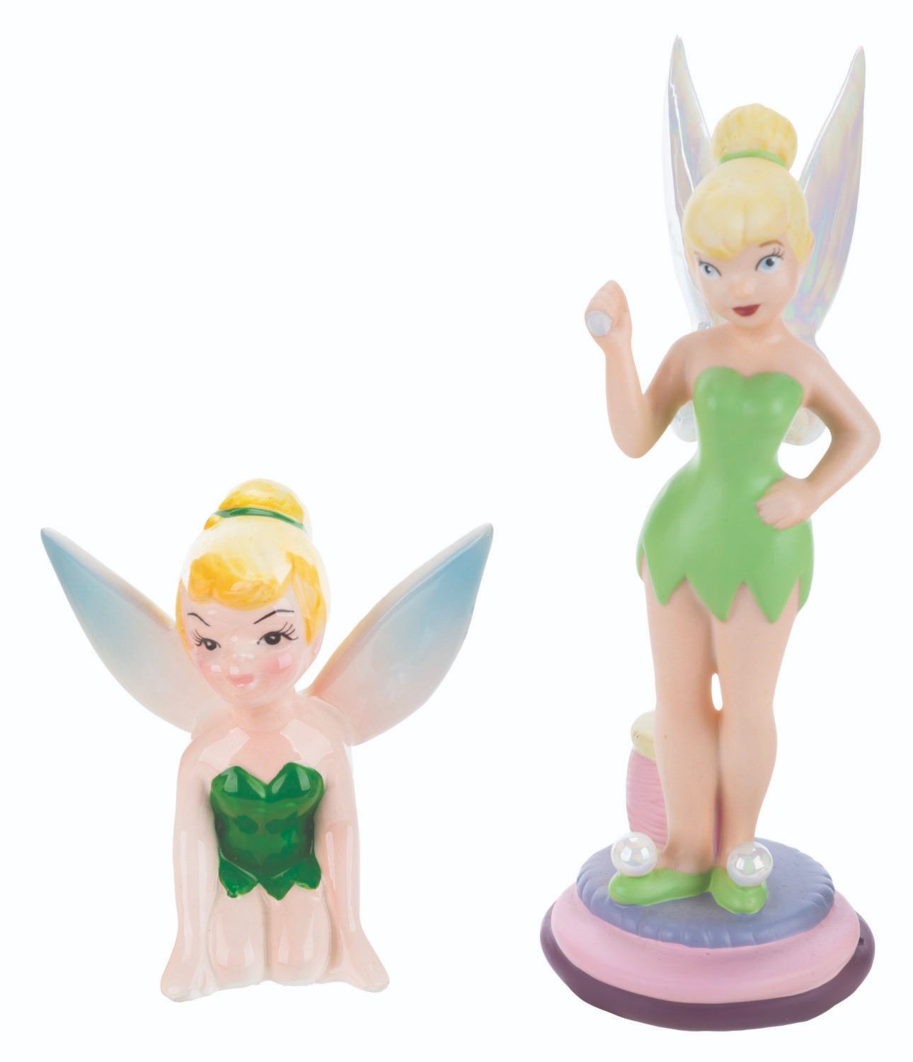 (Disney/Enesco, 1950-2000s) A delightful collection of 14 ceramic Tinker Bell figurines produced throughout the years. Measuring between 1.75" to 6", the figures are in fine condition, with one in very good condition showing a repair to a broken arm.