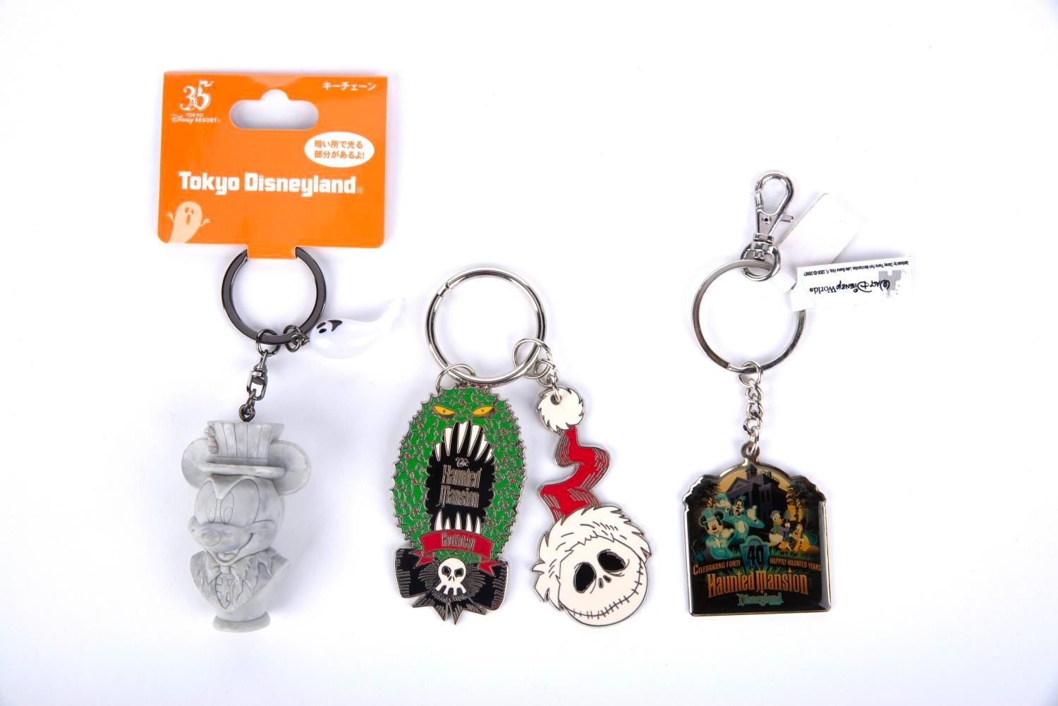 (Disneyland, Tokyo Disneyland) A Collection of (3) Haunted Mansion Keychains. Among this lot are (3) keychains with (4) fobs inspired by characters of Mickey and Jack as seen in The Haunted Mansion 40th anniversary and Haunted Mansion Holiday at Disneyland and Tokyo Disneyland. Each piece is in fine condition.