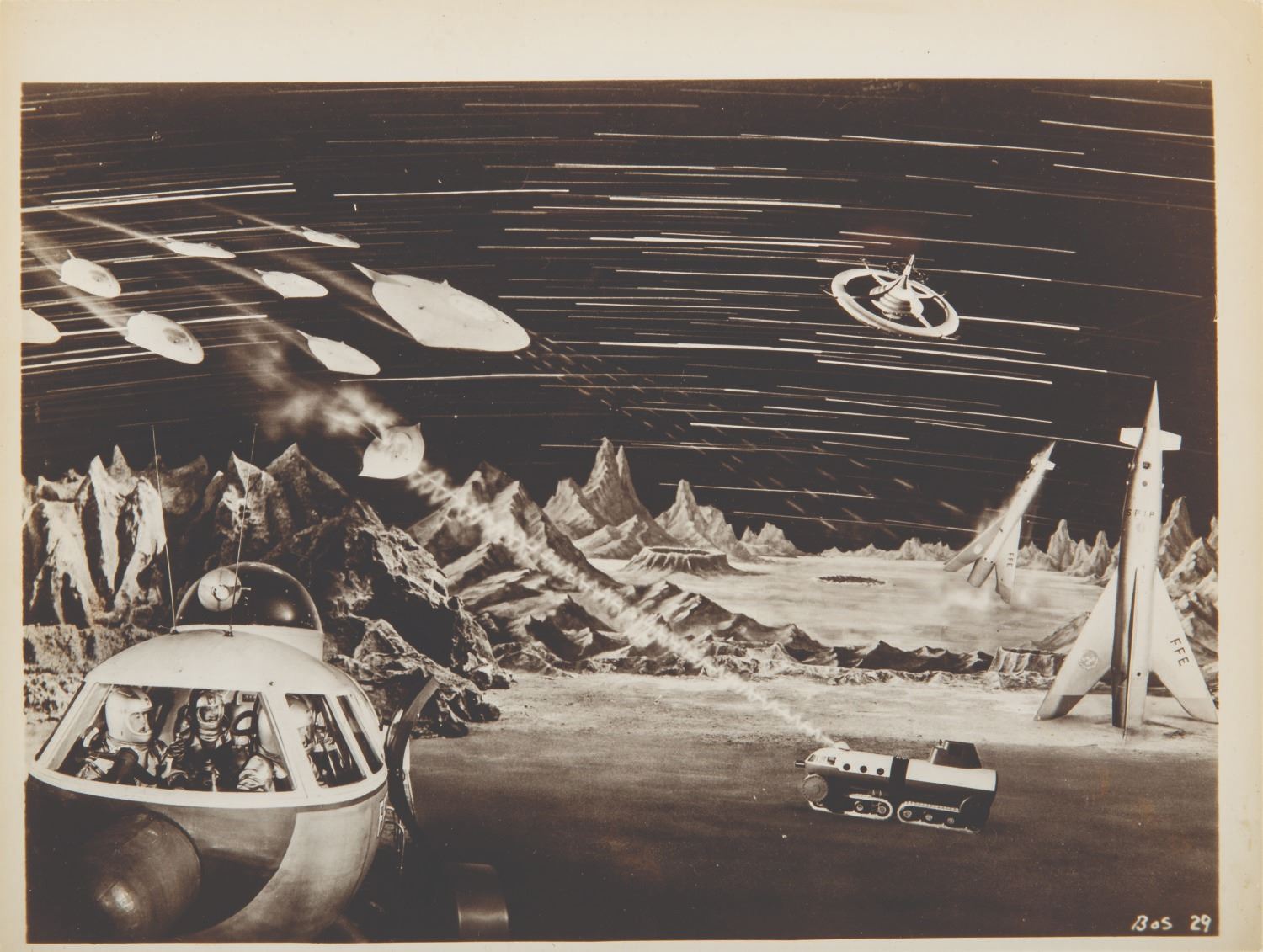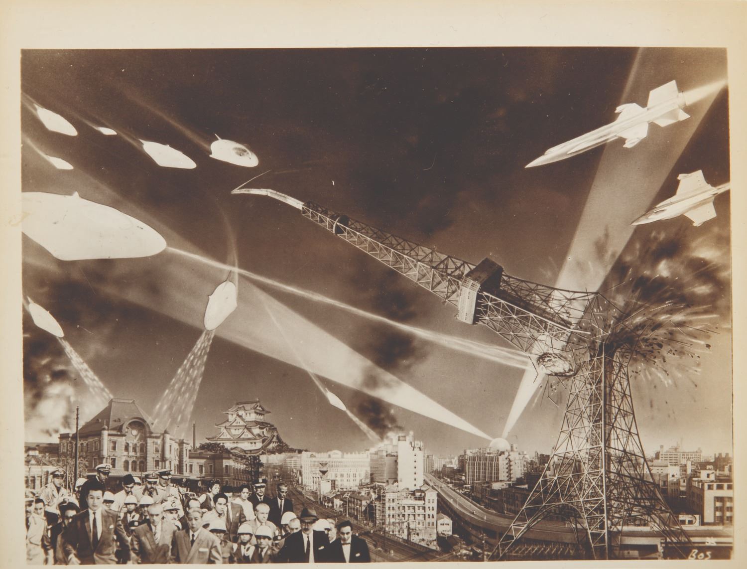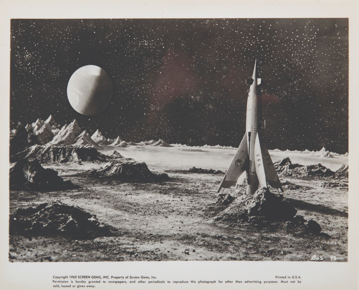 (Toho, 1959-65) A collection of seven promotional photos for the theatrical release of "Battle in Outer Space." Measuring up to 8.25" x 10" each, the photos are in very good condition with light stains and light handling wear, and toning from age to three.