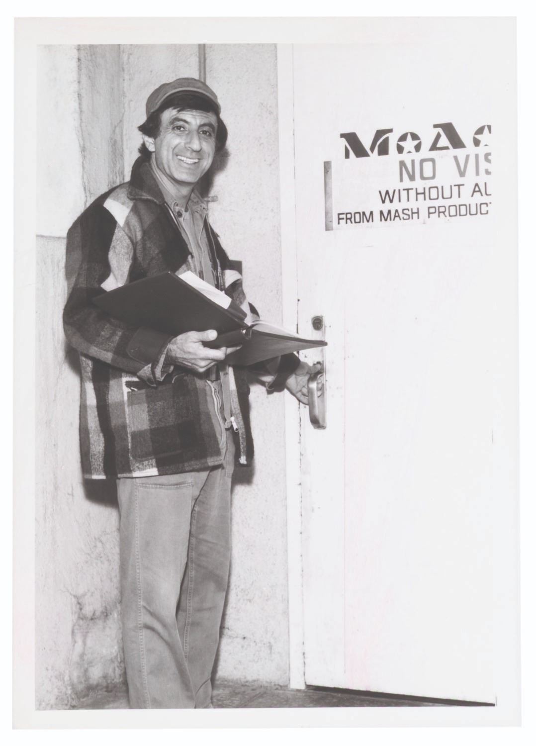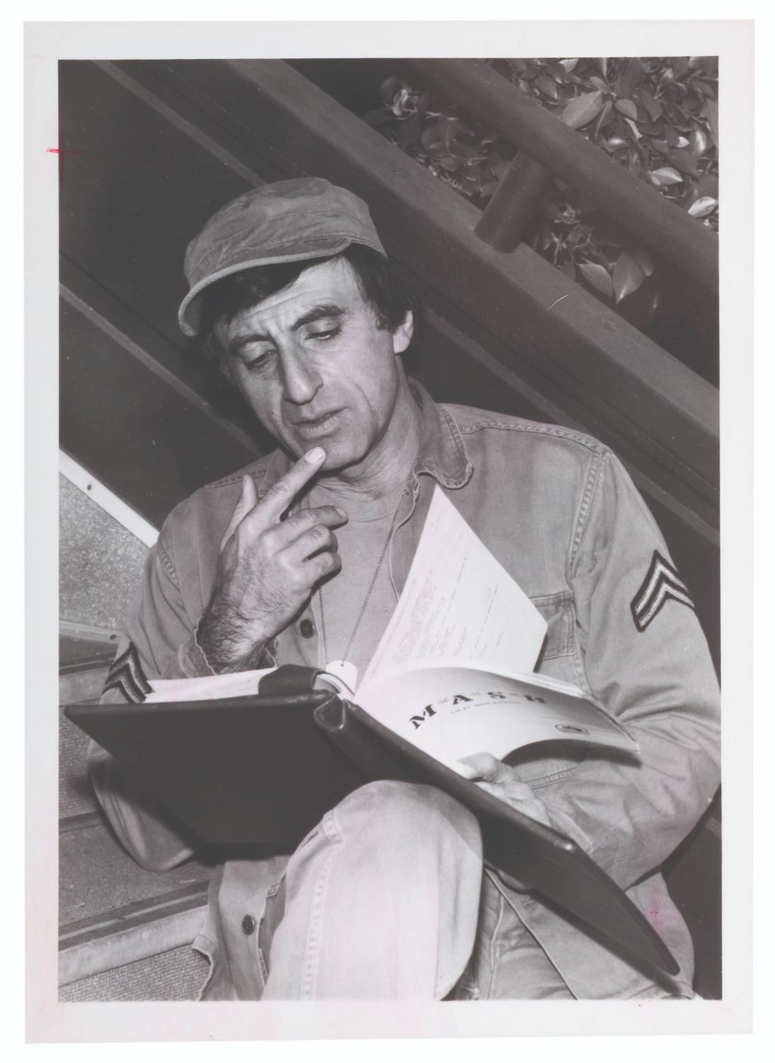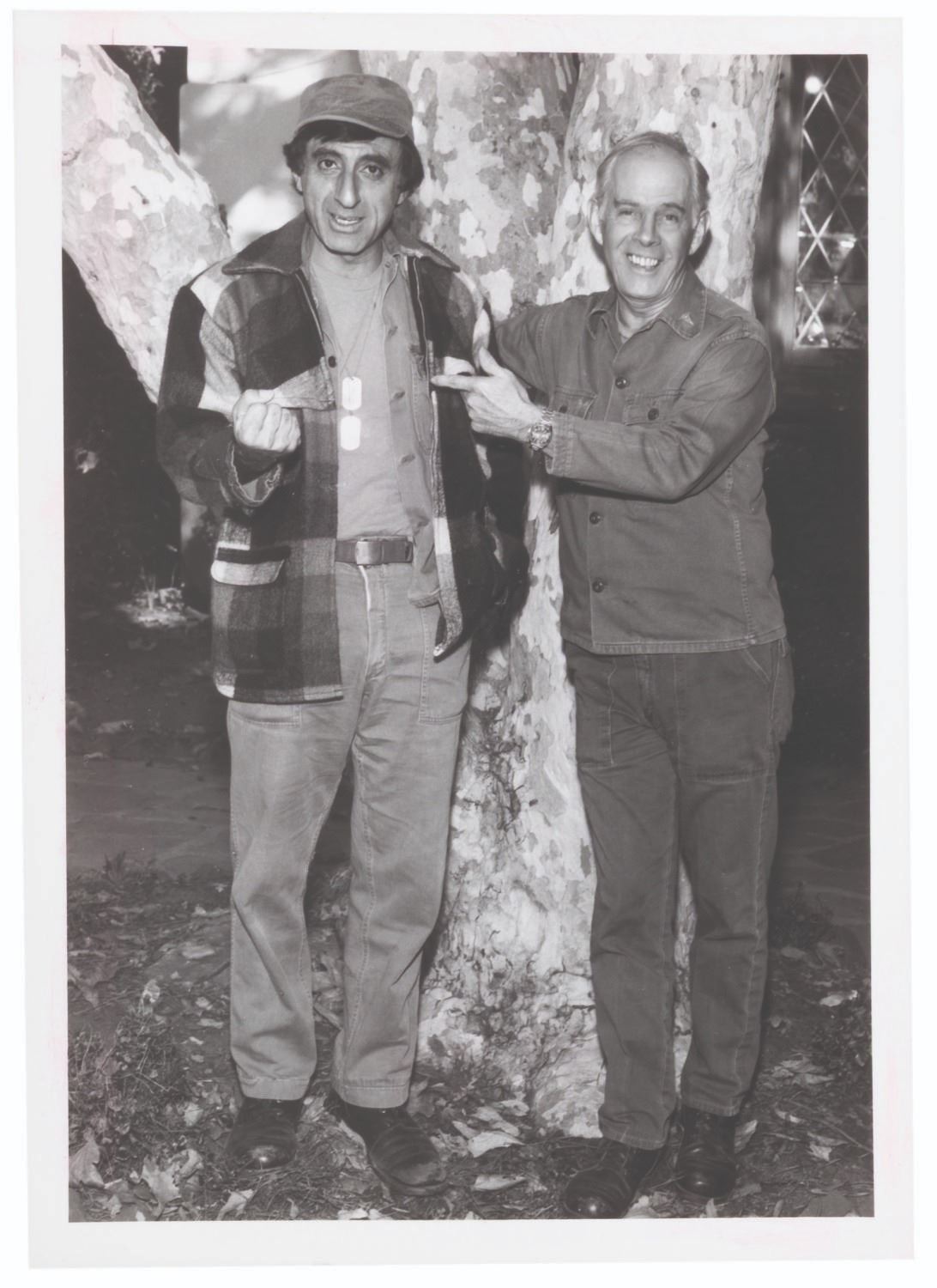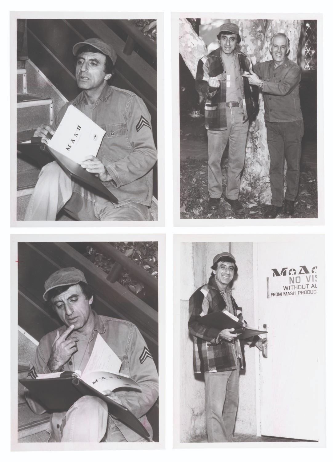 (CBS, 1972) A collection of four candid photos of Jamie Farr and Harry Morgan during the production of the M*A*S*H television show. Measuring 5" x 7", the photos are in very good condition with light discoloration, edge wear, and identification notes and stickers on the reverse.