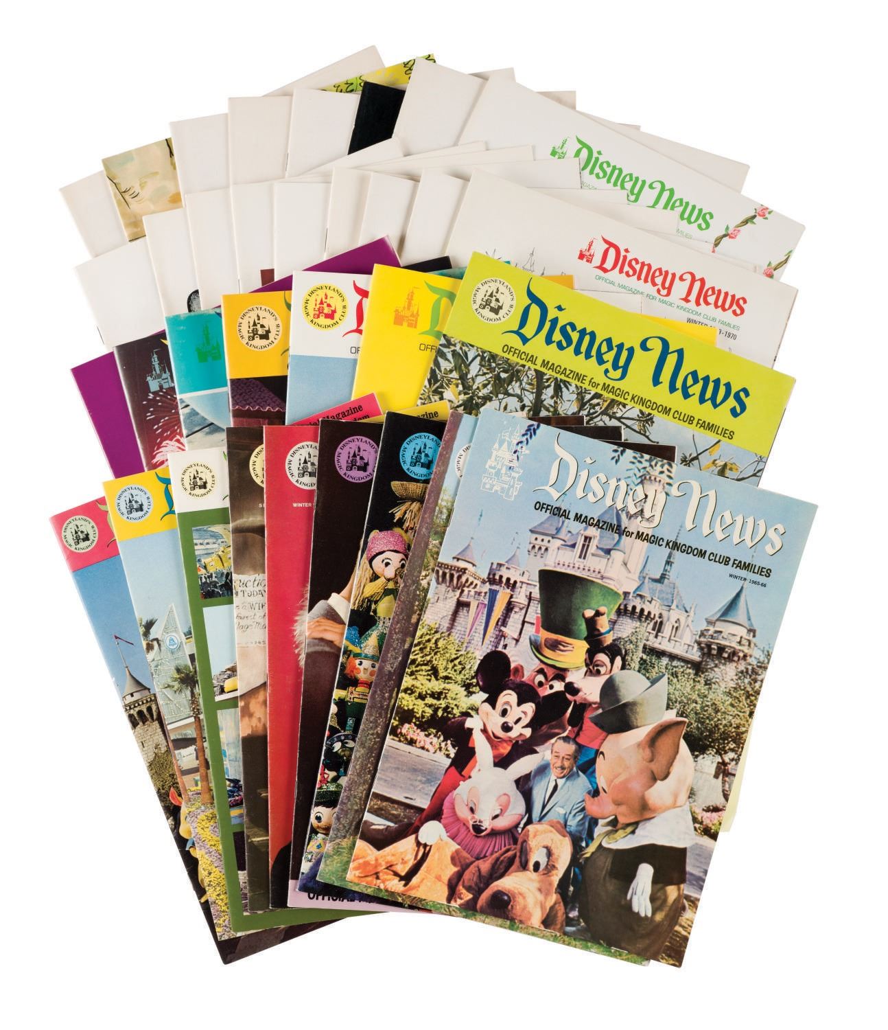 (Disney, 1962-74) An incredible archive of (33) Disney News Magazines from the estate of Milt Albright. The official magazines were created under Albright as part of his Magic Kingdom Club program and distributed to members every quarter. These publications span a ten-year period with all issues from that period included. Each magazine measures 8.5"x11.75" and all are in fine condition.