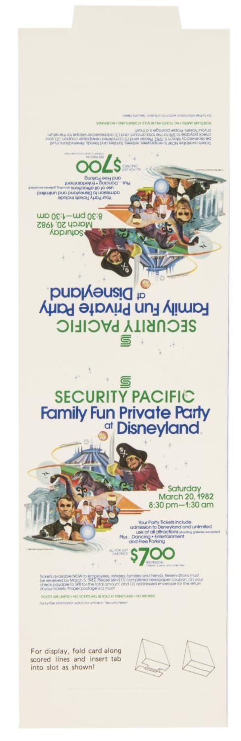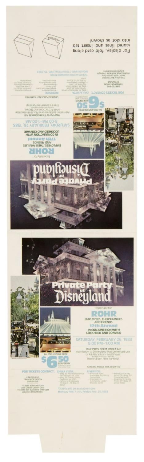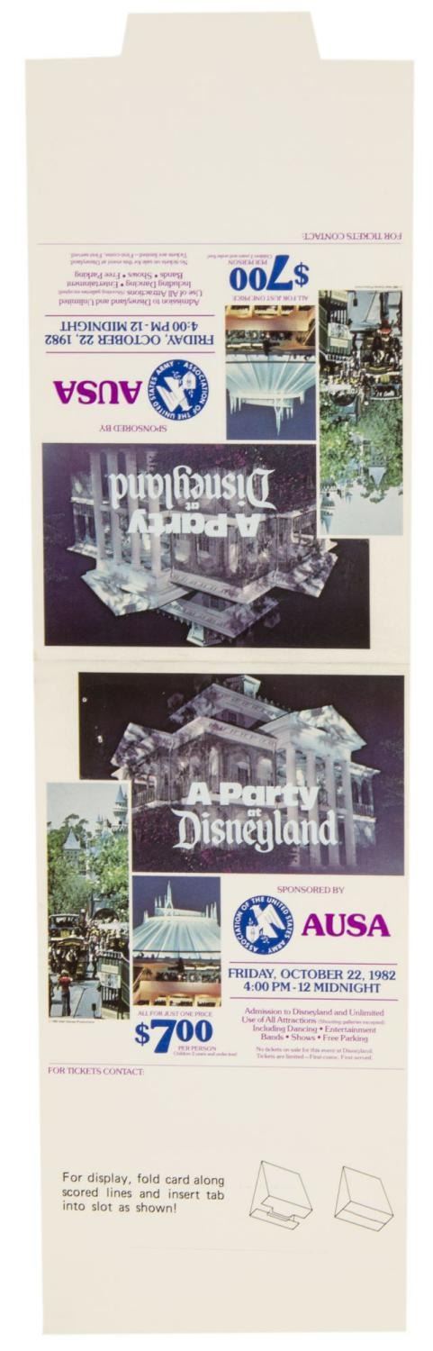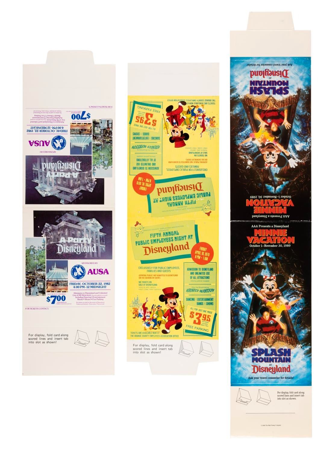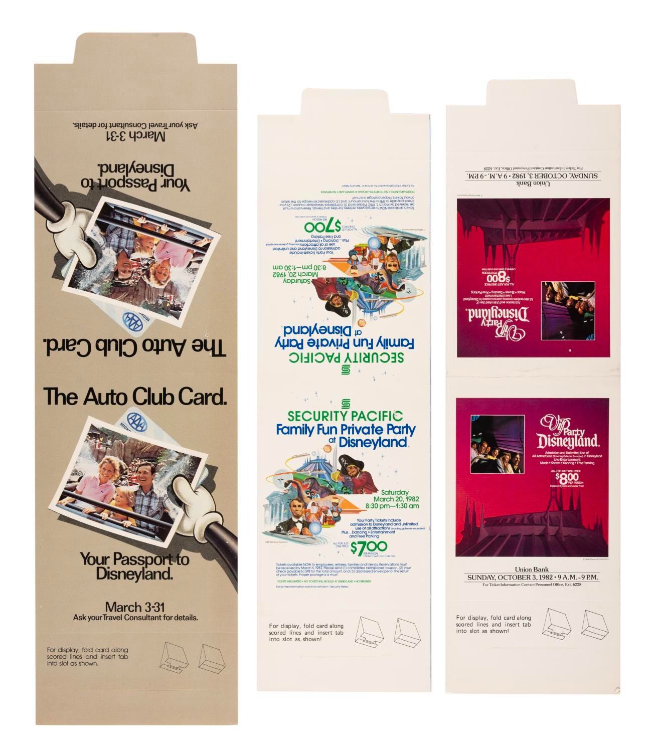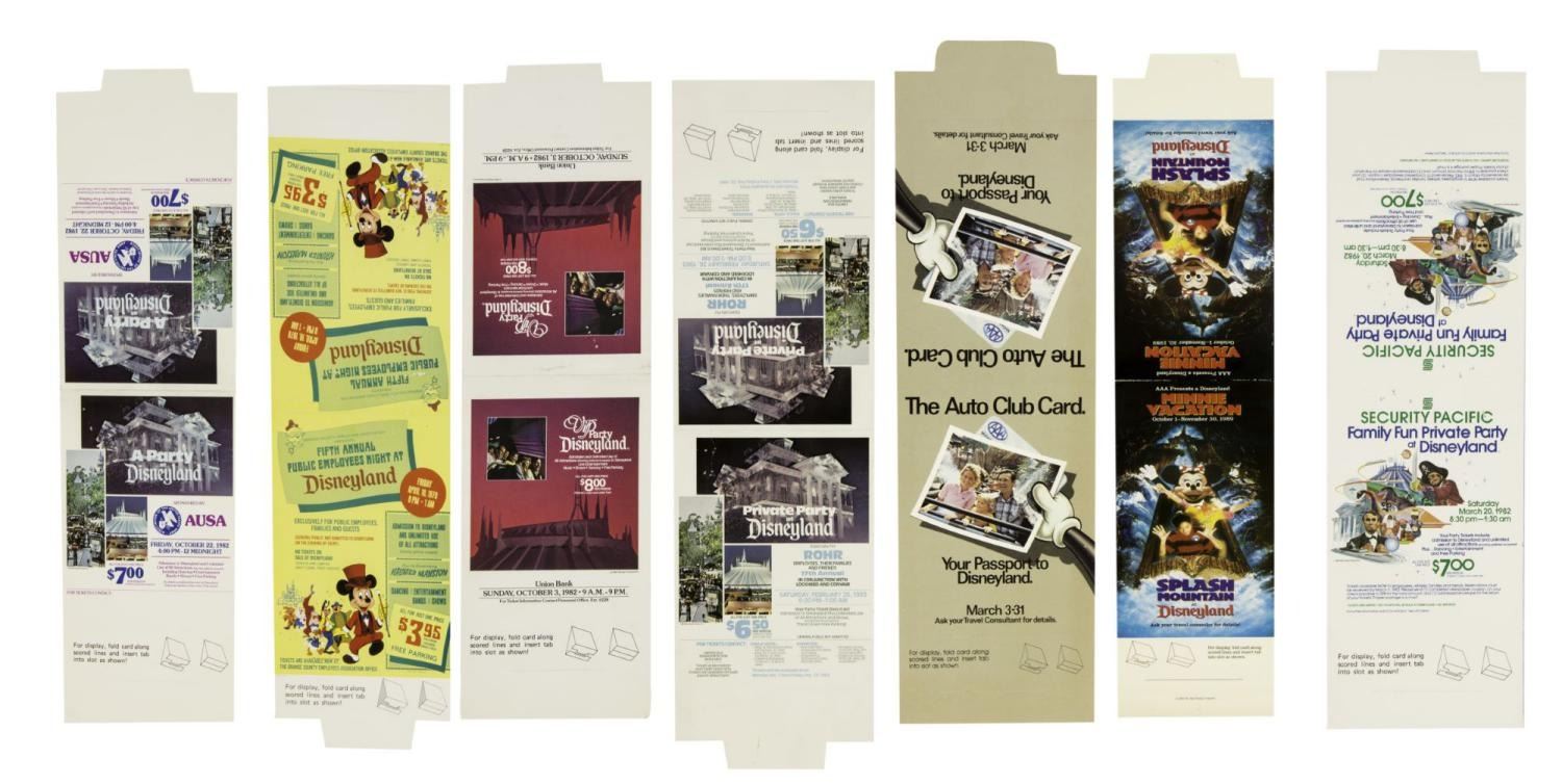 (Disneyland, 1970s-80s) A collection of seven countertop A-frame displays promoting special events at Disneyland. Measuring between 5.5" and 7" tall when opened and assembled, these display pieces are in very good condition with minor wear.