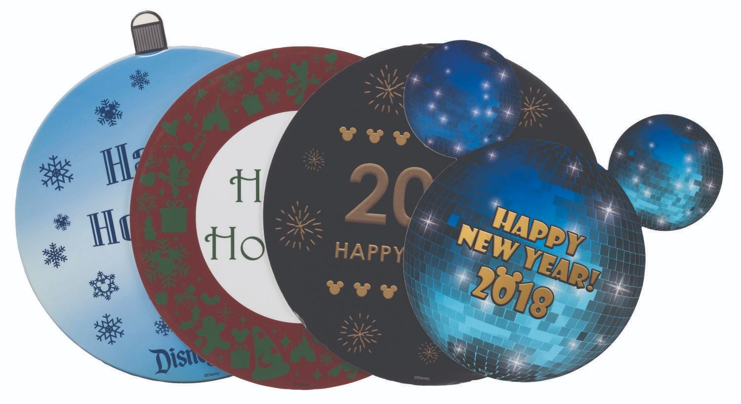 (Disneyland, 2010s) A collection of four signs from Disneyland’s holiday celebrations, including the years 2016, 2017, and 2018. Measuring from 23” to 24” in diameter, the signs are in good condition with large creases, scuffs, scratches, and wear from Park use.