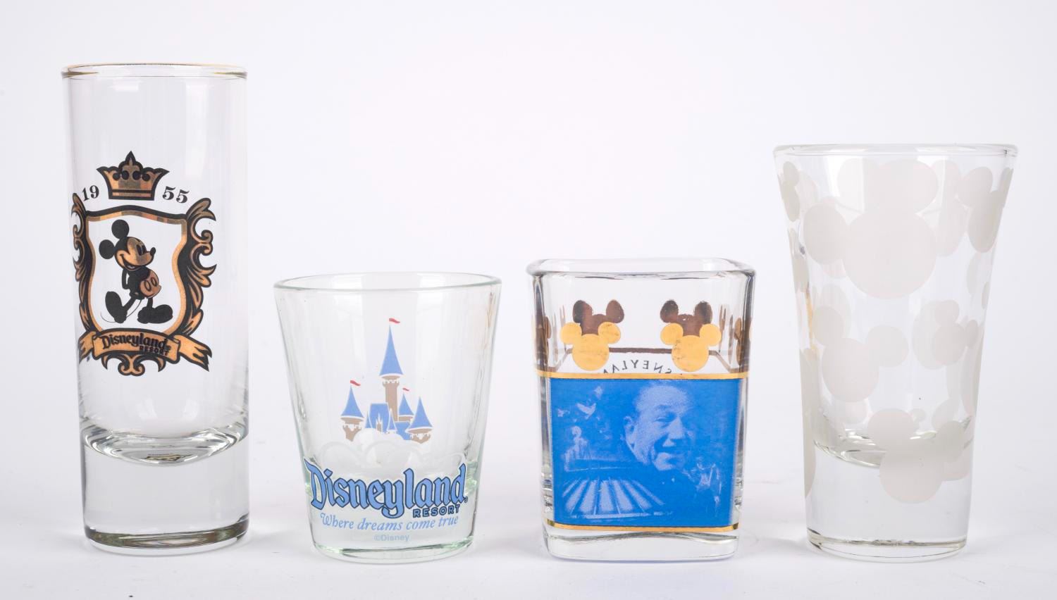(Disneyland, 1990s/2000s) A collection of four assorted Disneyland souvenir shot glasses. Each piece is in fine unused condition.