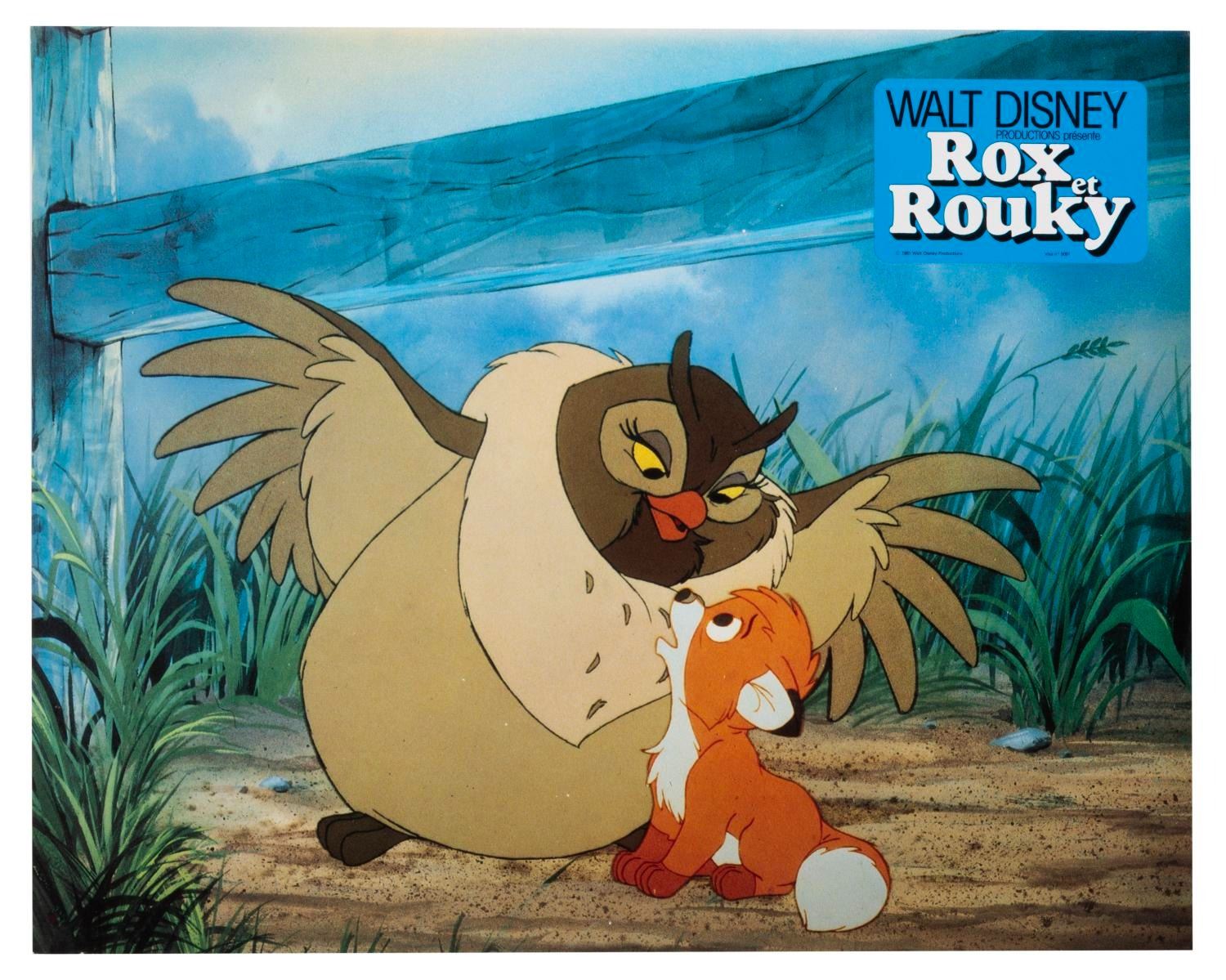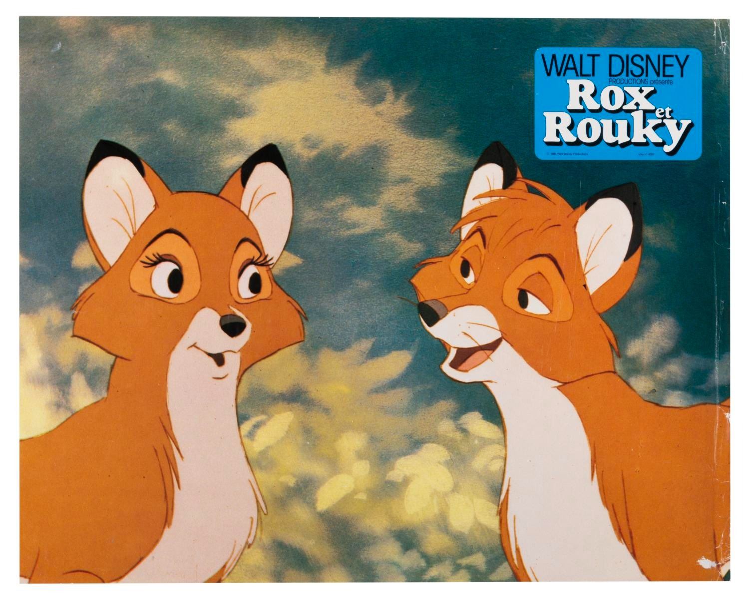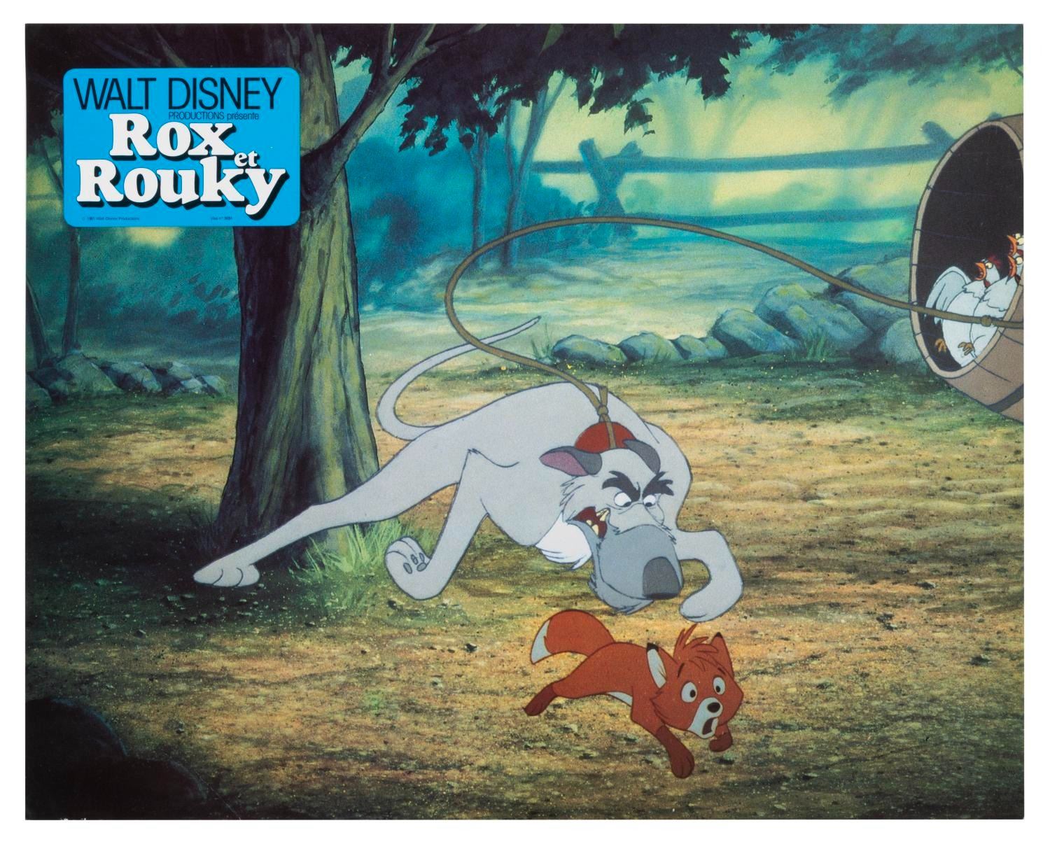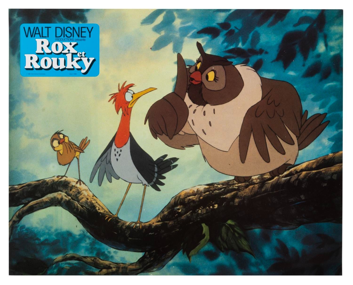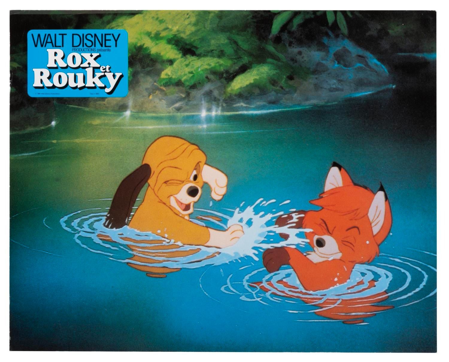 (Disney, 1981) A collection of 18 French "The Fox and the Hound" publicity photos featuring Copper, Tod, Vixey, Big Mama, and Boomer. Measuring 9" x 11.5", the photos are in good condition with light creasing, edge wear, and discoloration.