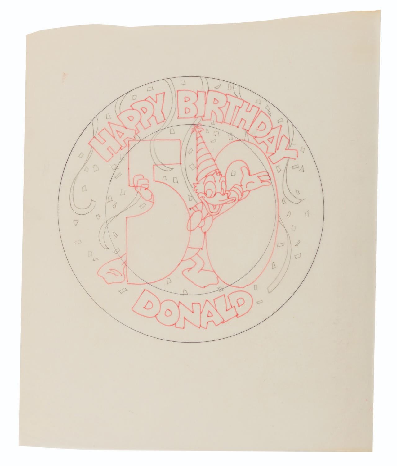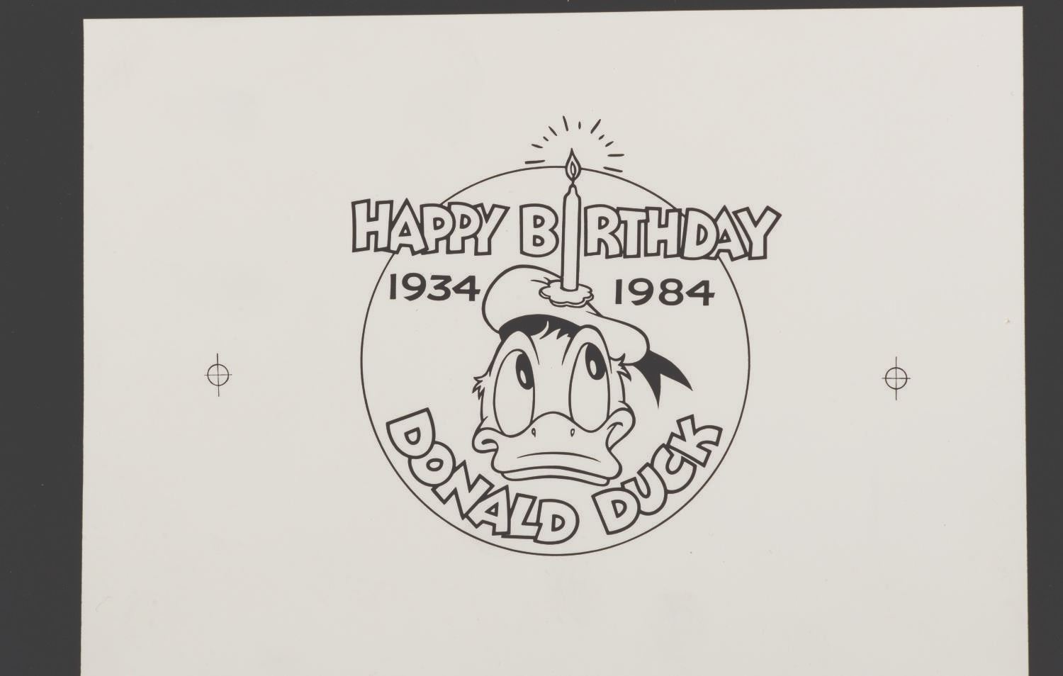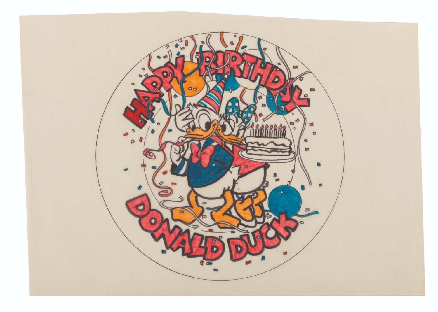 (Disneyland/Walt Disney World, 1984) A collection of six concept renderings created for Donald Duck’s 50th birthday celebration at Disneyland and Walt Disney World. The artwork featuring Donald and Daisy Duck was created for use by the Marketing Department. Ranging in size from 5” x 8” to 9.75” x 10.5”, the pieces display in very good condition with creases, light stains, and wear.