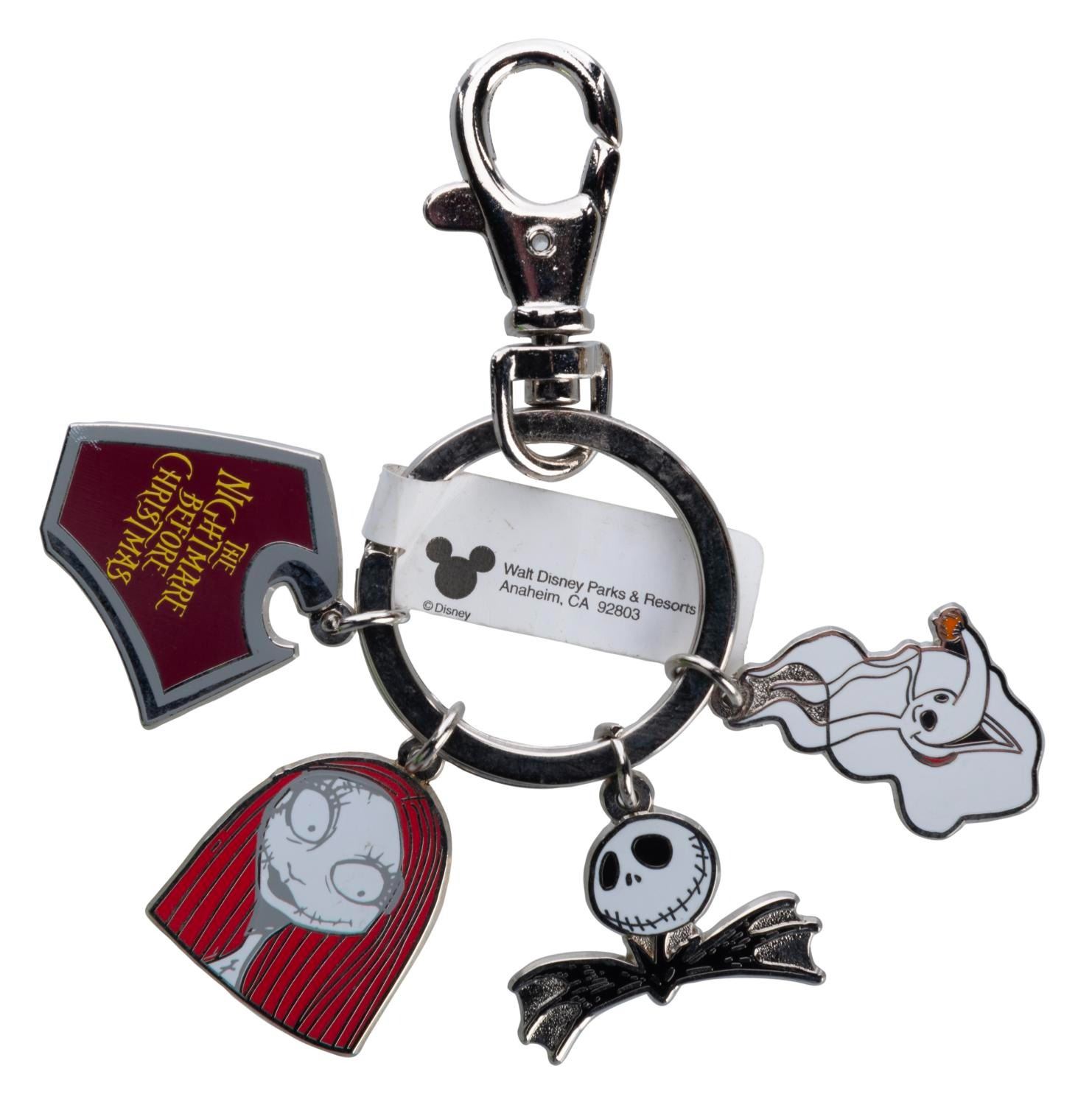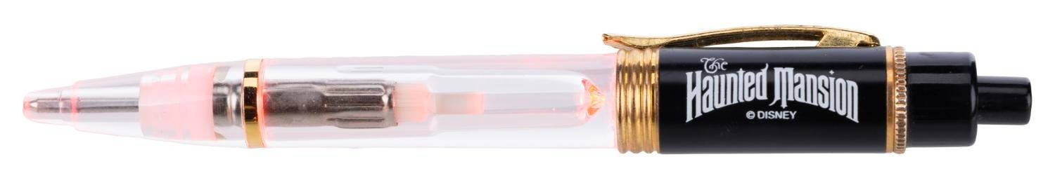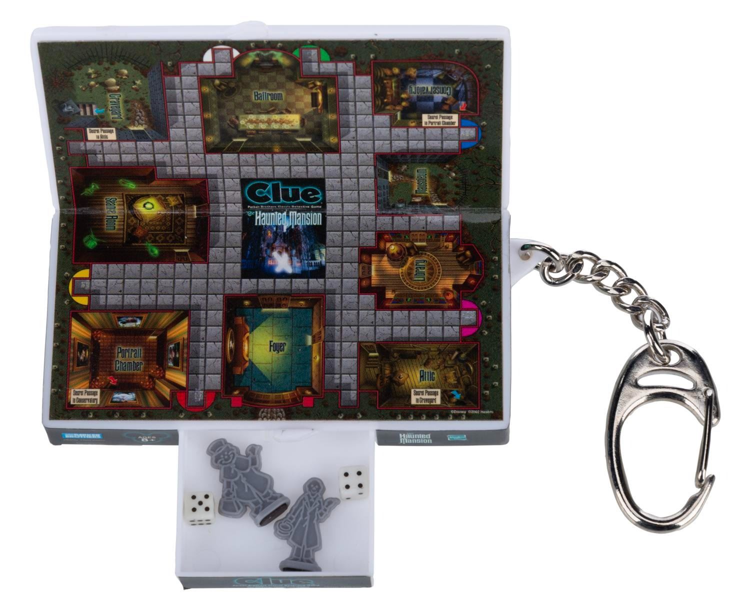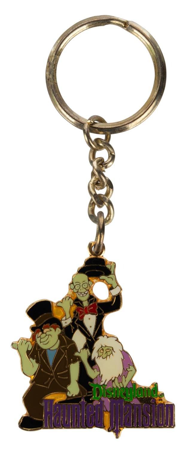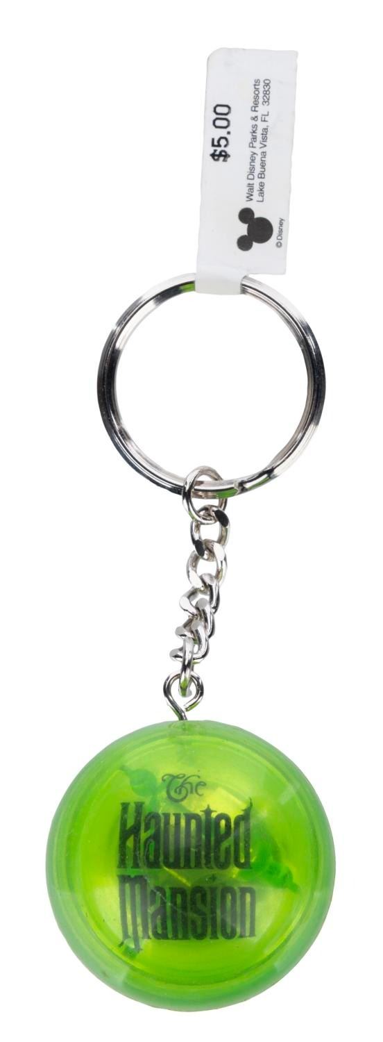 (Disney, 2000s) A pen and four keychain souvenirs of the Haunted Mansion. Included are keychains of the Hitchhiking Ghosts, Nightmare Before Christmas charms, and a Haunted Mansion Clue miniature game fob complete with magnetic pieces and a pair of dice. Also included is a functional illuminating Haunted Mansion logo pen. Measuring various sizes, each piece is in good condition, with the ball's electronics non-functioning.