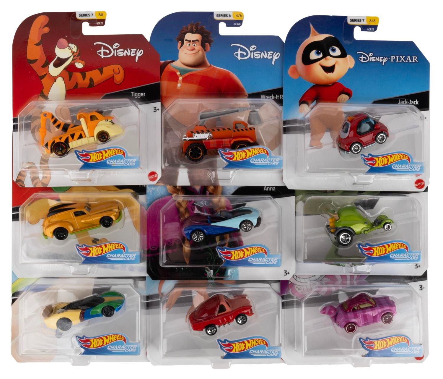 (Hot Wheels, 2010s) A complete set of the Disney Character Cars series manufactured by Hot Wheels. Included are series 1-7, each consisting of 6 cars, for a total of 42 cars, featuring classic and new characters. Measuring 5.5" x 6.5" and 1.5" tall each, the cars are in fine unopened condition with very light wear to the packaging.